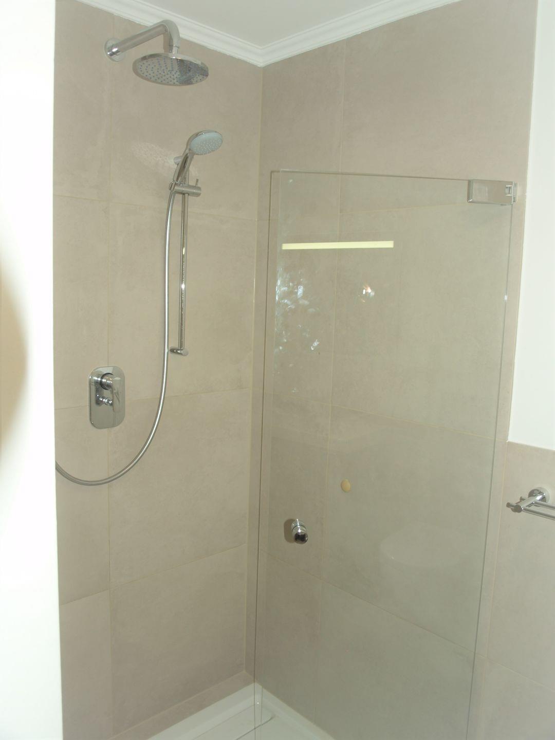 Ein Schlafzimmer mit komfortablem Laminatboden sorgt für erholsamen Schlaf. Das Badezimmer ist mit einer großen, bodengleichen Dusche, einem Waschbecken und einem WC ausgestattet. Ein Haartrockner und moderne Sanitäranlagen runden den Komfort ab.