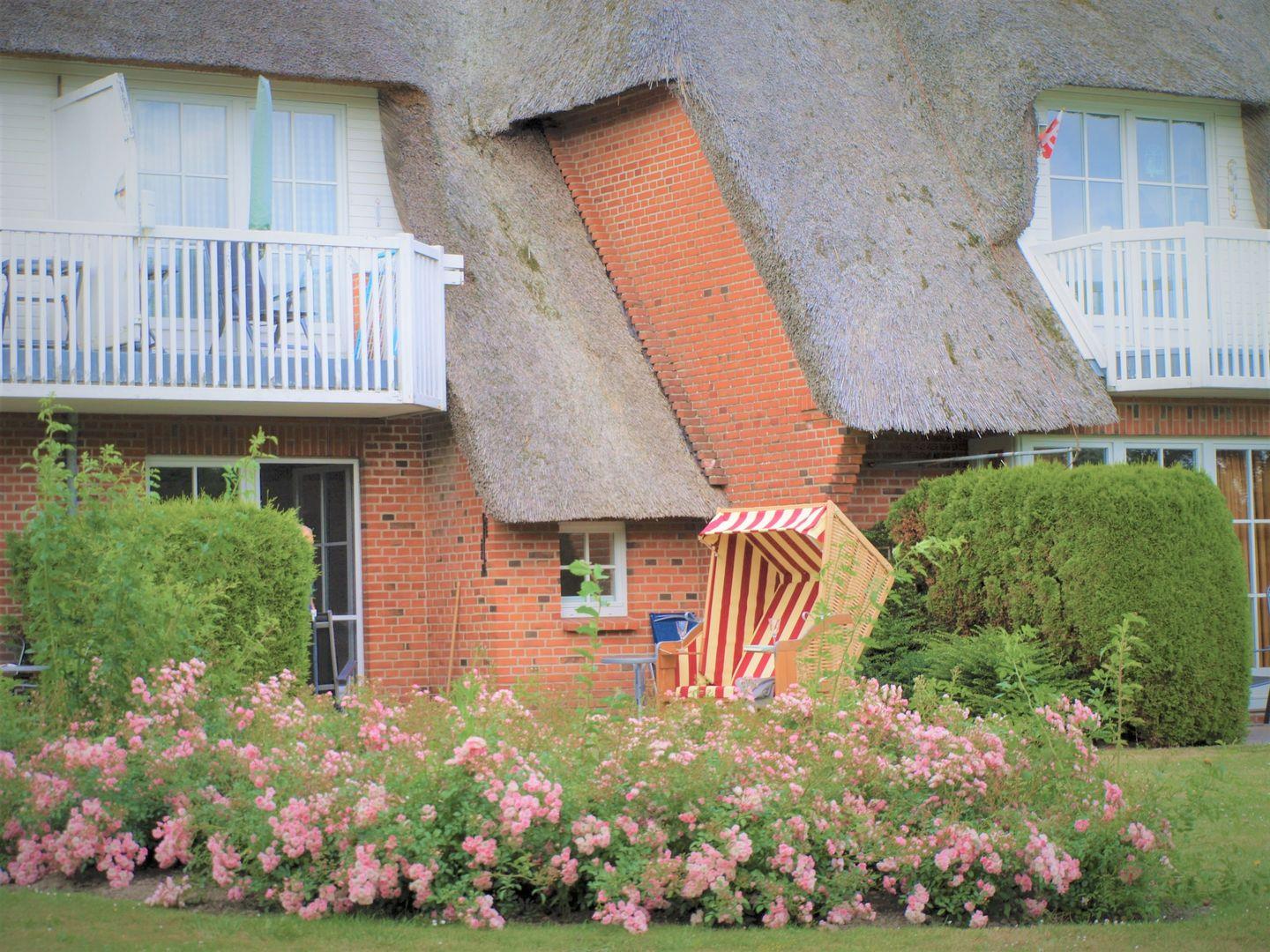 Wenn die Sonne scheint, laden die überdachte Terrasse und die Gartenmöbel dazu ein, die frische Nordseeluft zu genießen. Machen Sie es sich im Strandkorb gemütlich und erleben Sie unvergessliche Momente im Freien. Genießen Sie den Blick auf die umliegende Landschaft von der Terrasse aus, wo Sie den Alltag hinter sich lassen können.