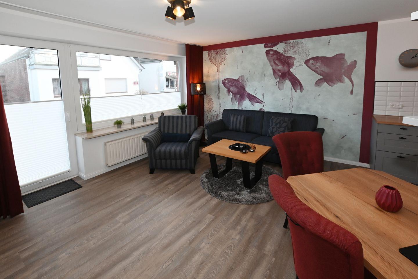 Die helle, im Erdgeschoss gelegene Wohnung 1 zeichnet sich durch ihre liebevolle und behagliche Einrichtung aus.