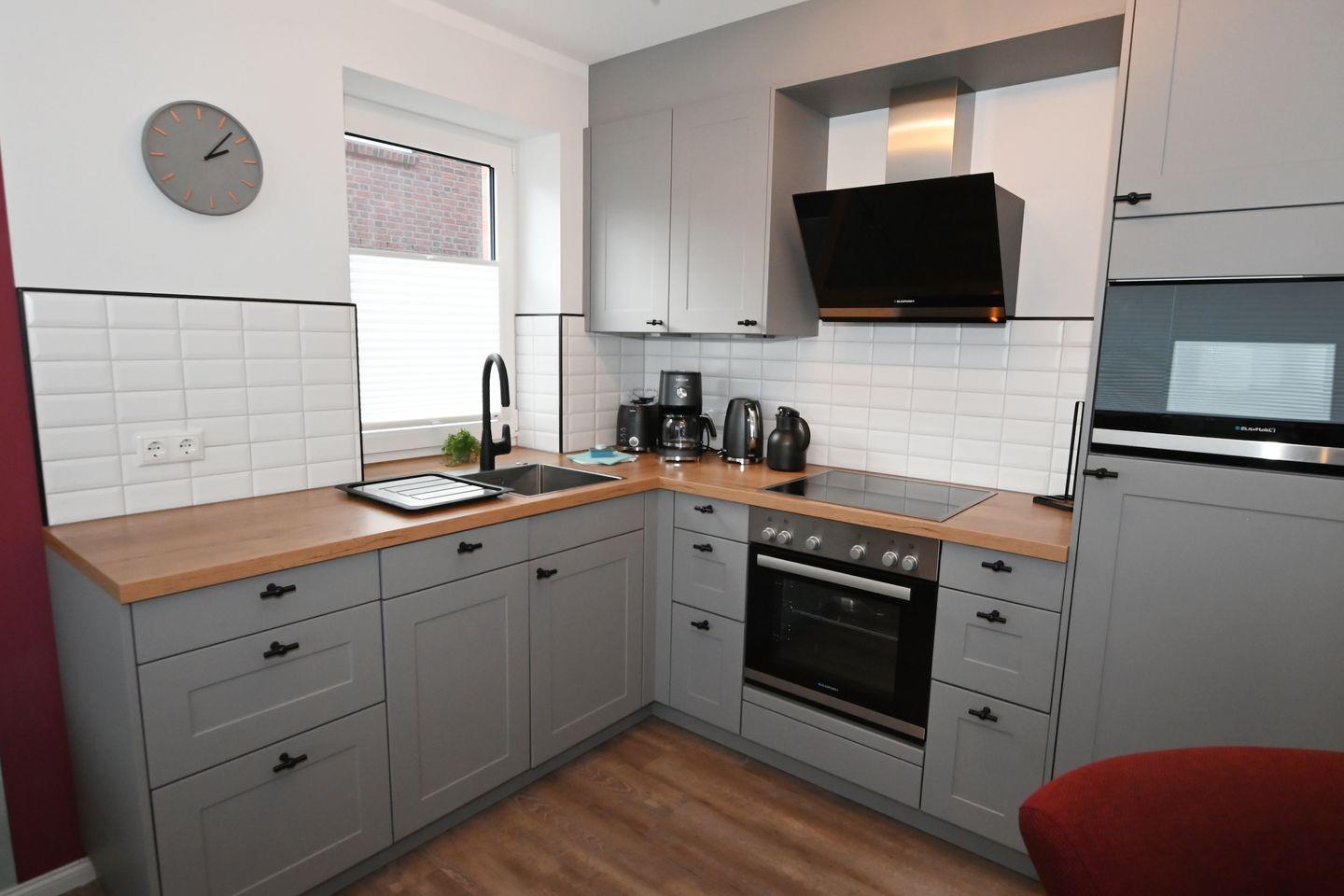 Auf gleicher Ebene befindet sich eine komplett ausgestattete Kochnische sowie ein gemütlicher Essbereich.