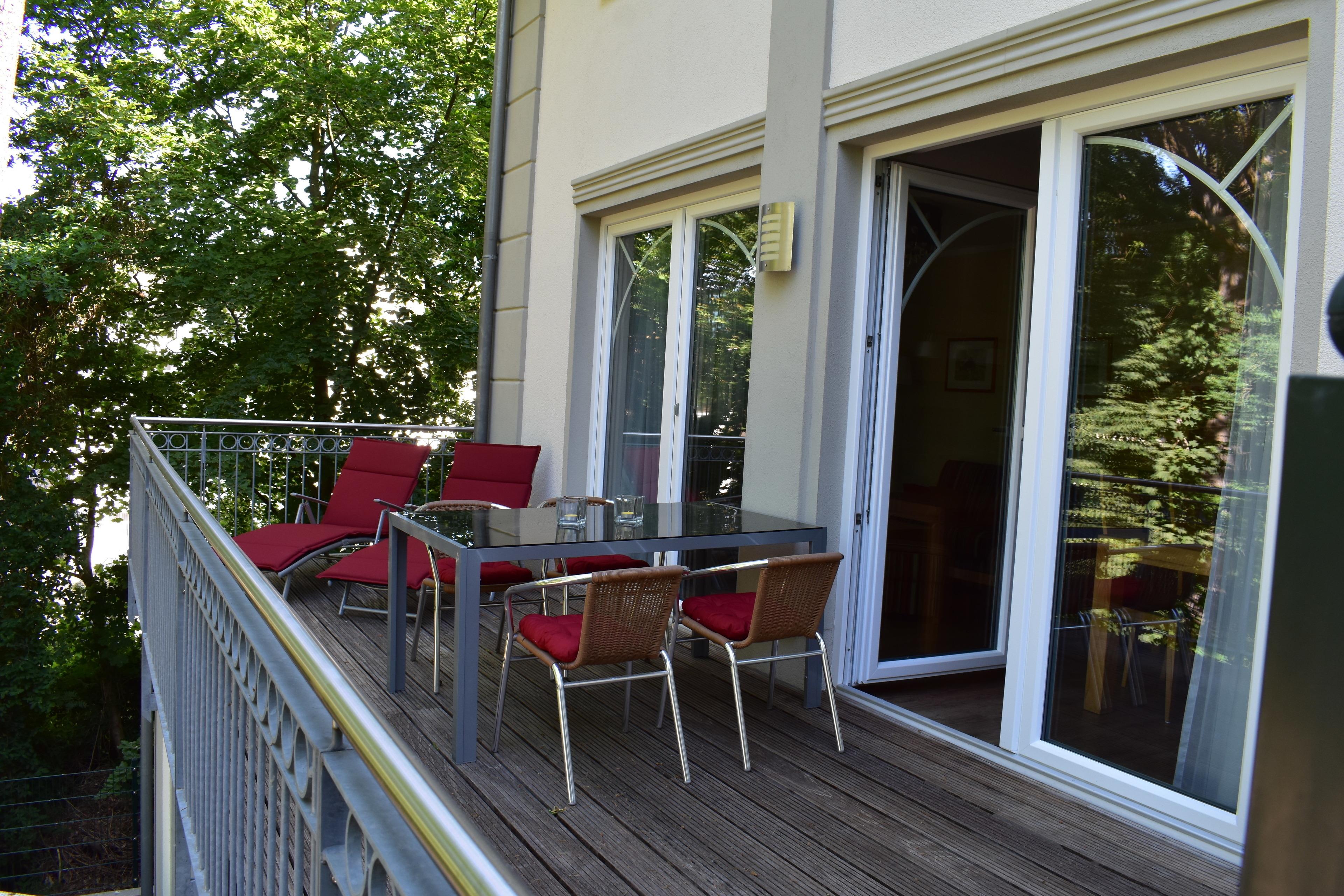 Das Wohnzimmer verfügt über eine gemütliche Sitzgarnitur mit Sessel, Sofa und einem LED-TV. Weiterhin steht eine Musikanlage zur Verfügung. Die Küchenzeile ist komplett ausgestattet. Backofen, Cerankochfeld, Geschirrspüler, Mikrowelle und alles was man so braucht findet man dort. Ein großer Esstisch lädt zum verweilen ein. Das Elternschlafzimmer mit großem Doppelbett verfügt außerdem über ein zweiten TV. Im zweiten kleineren Schlafzimmer befinden sich zwei Einzelbetten. Auf der zur Wohnung gehörenden großen Terrasse befinden sich eine Sitzgarnitur und Sonnenliegen. Die Wohnung ist modern und hochwertig eingerichtet. Ein Wlan Zugang ist vorhanden.