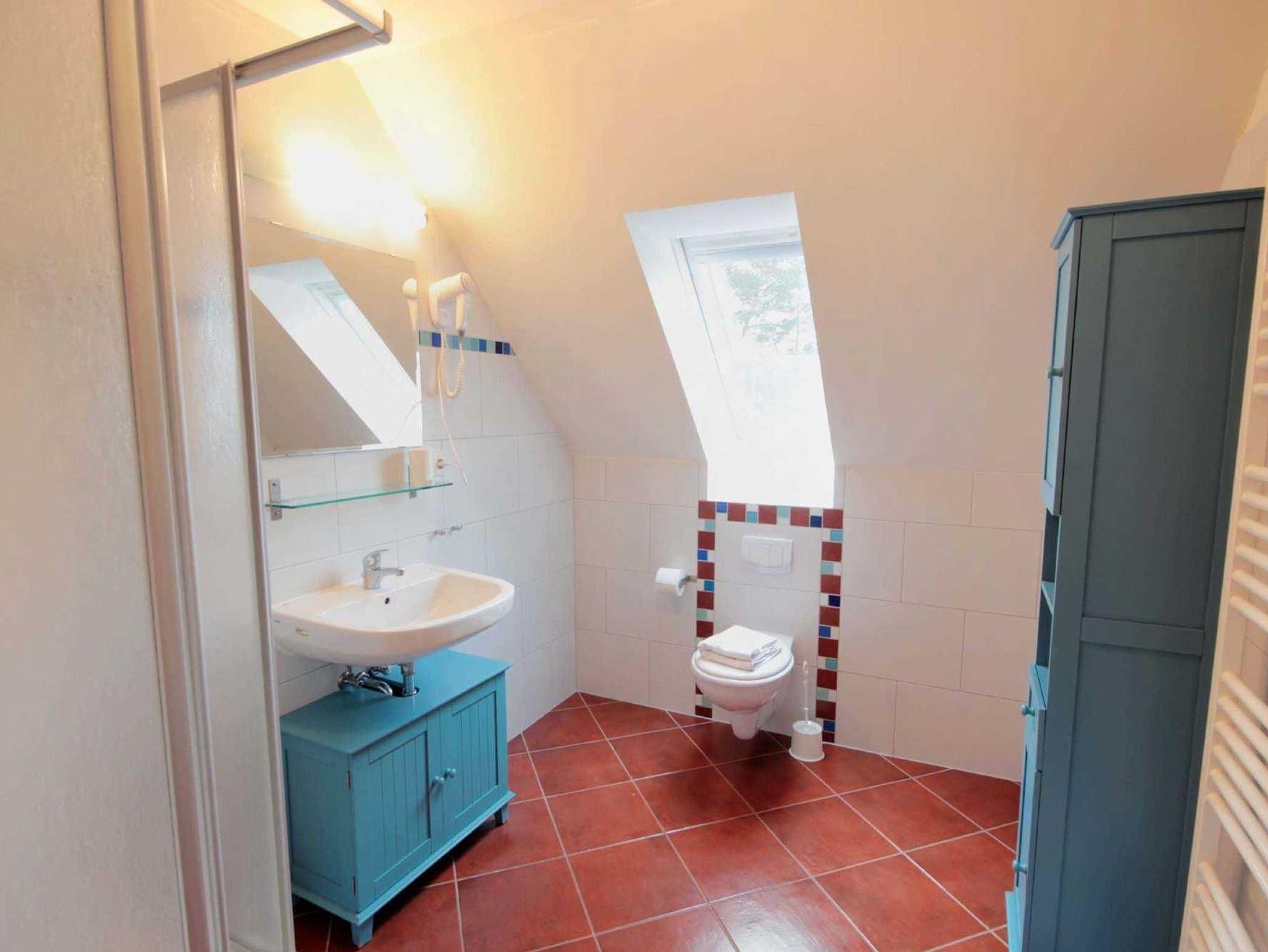 In der unteren Etage finden Sie eine kleine Gästetoilette, den Wohnbereich mit Flachbild-TV und direktem Zugang zur eigenen Terrasse. Auf dem gemütlichen Schlafsofa im Wohnzimmer ist genug Platz für die 5. Person. Die Küchenzeile ist mit 4-Platten Herd, Backofen, Geschirrspüler, Kaffeemaschine und Wasserkocher und diversen anderen Küchenhelfern komplett ausgestattet. Im Haus steht ein kostenfreier W-Lan* Zugang zur Verfügung. Für Ihren PKW steht direkt am Haus ein Außenstellplatz zur Verfügung.