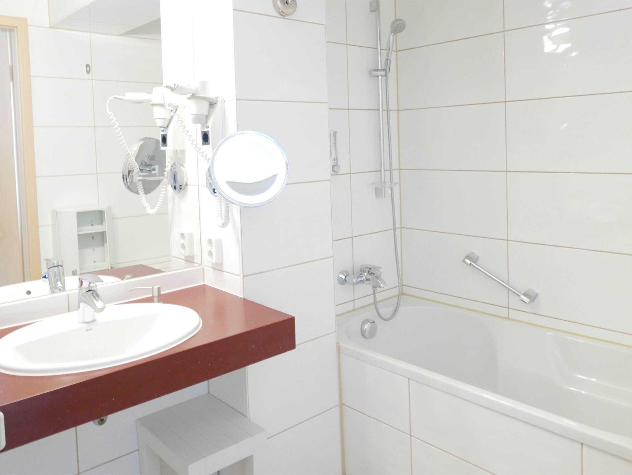 Ein Badezimmer verfügt über eine Dusche, das andere Badezimmer über eine rollstuhlfreundliche Dusche.