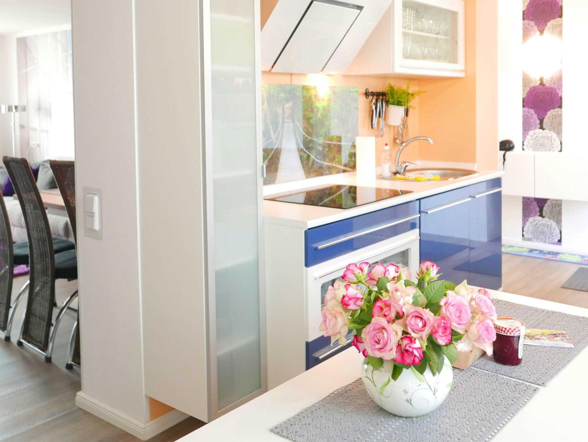 In der Küche befindet sich ein 4-Plattenherd, Backofen, Kühlschrank mit Gefrierfach, Geschirrspülmaschine, Mikrowelle, Kaffeemaschine und ein Toaster. Zudem gibt es einen gemütlichen Sitzbereich.