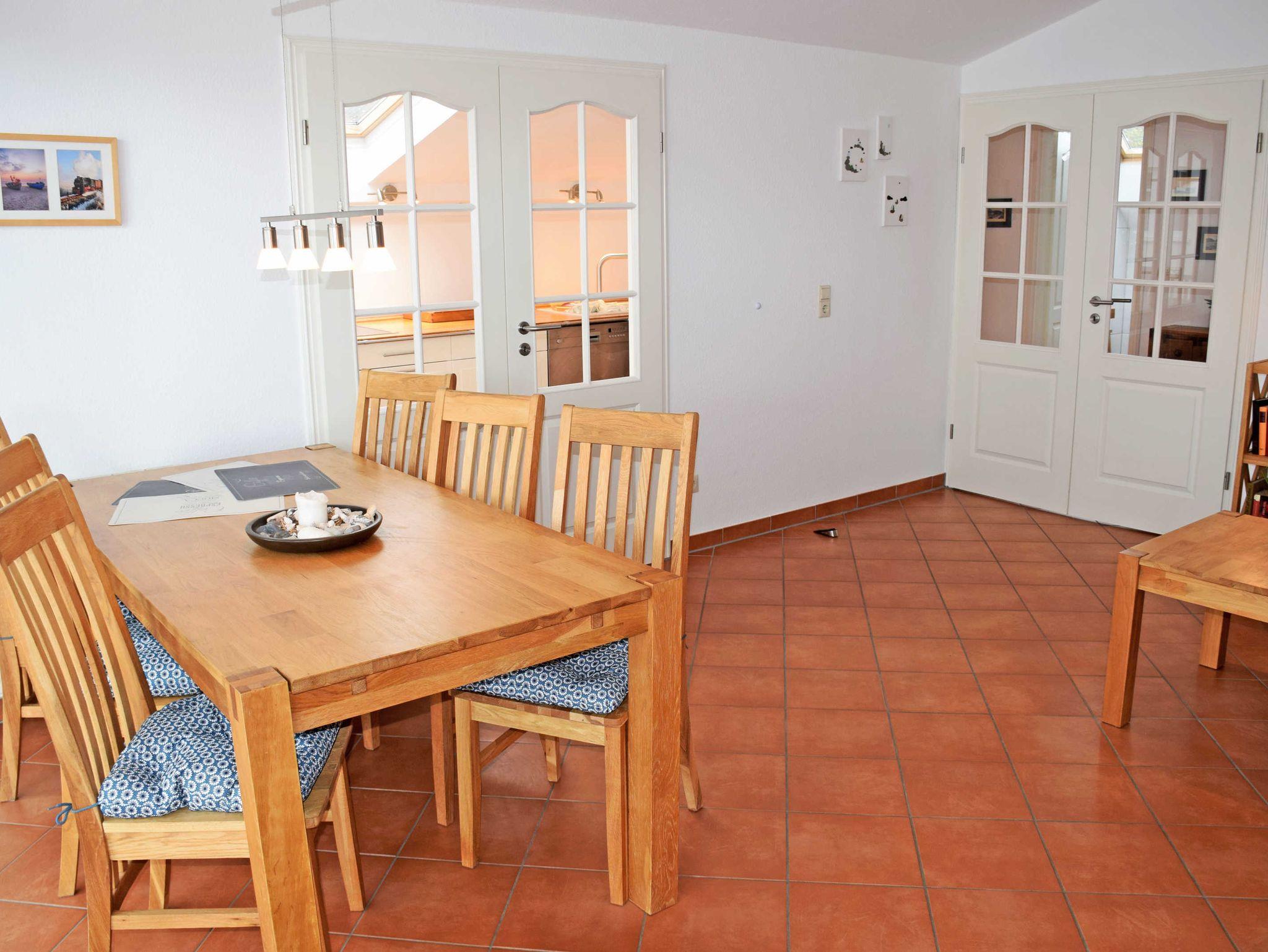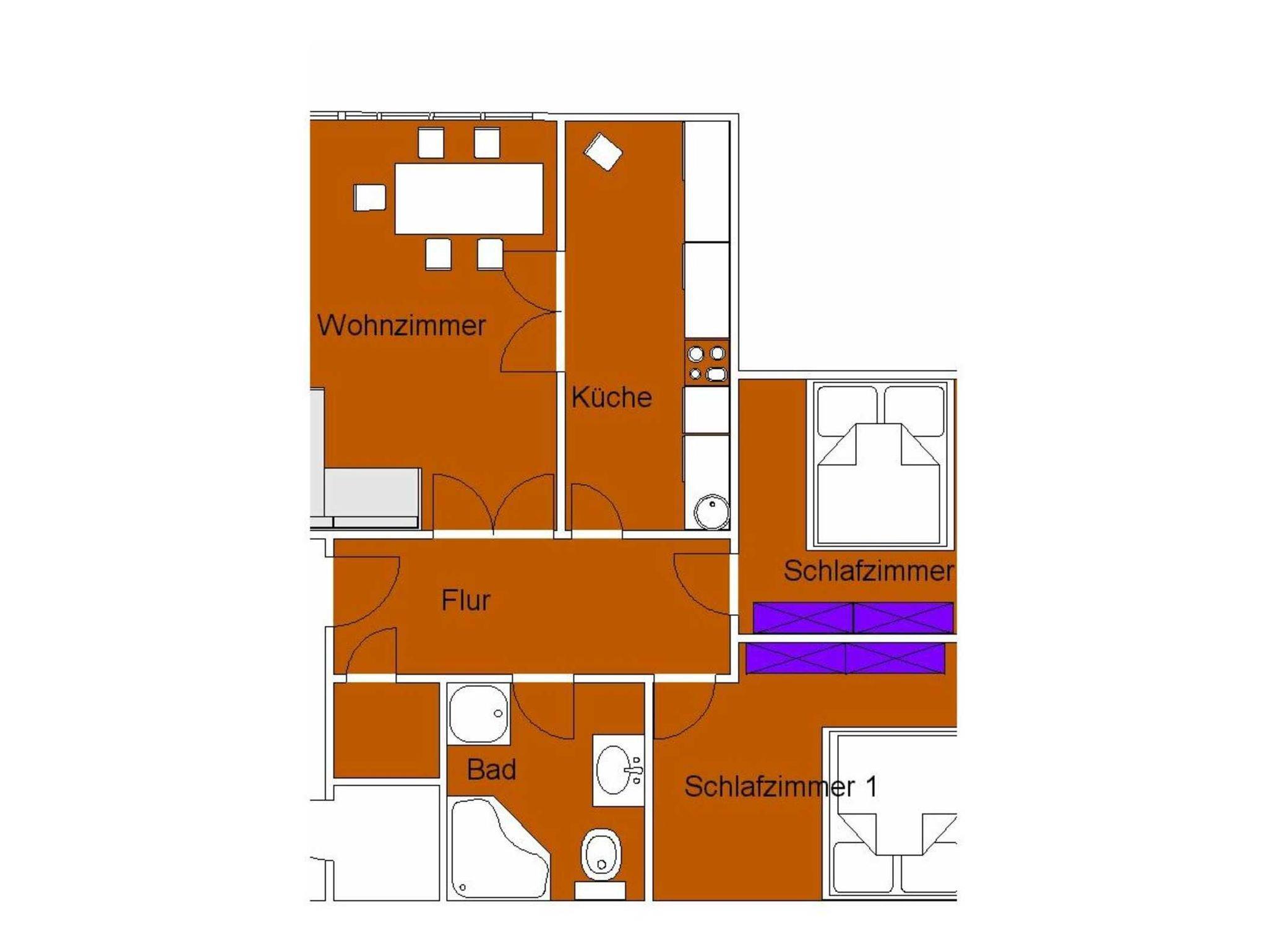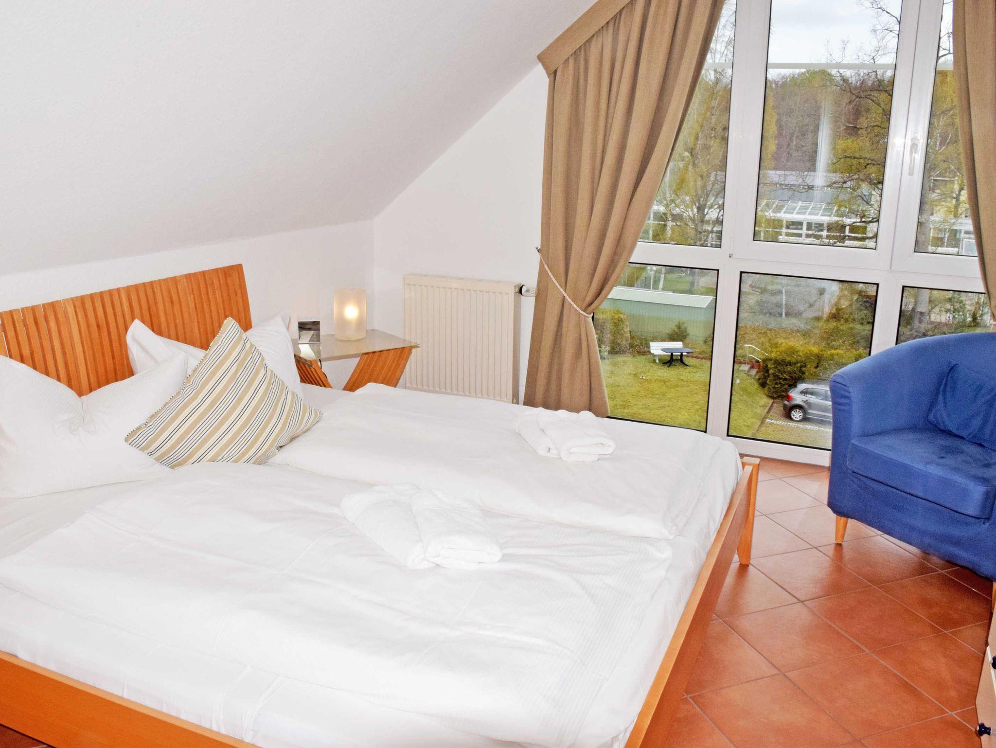 Die schöne Ferienwohnung liegt Dachgeschoss (über Lift erreichbar) und verfügt über einen separaten Eingang mit großem Flur. Sie ist ca. 85 qm groß, hat Platz für maximal 4 Erwachsene und 2 Kinder bis 3 Jahre im Kinderreisebett. Die Ferienwohnung wurde modern und komfortabel eingerichtet. Gäste dieser Ferienwohnung können auch ein kostenloses WLAN-Internet nutzen. Im Wohnraum befinden sich eine bequeme ausziehbare Schlafcouch, Sessel und ein Tisch, ein modernes Flachbild-TV-Gerät. Hier steht auch ein Esstisch mit Stühlen.