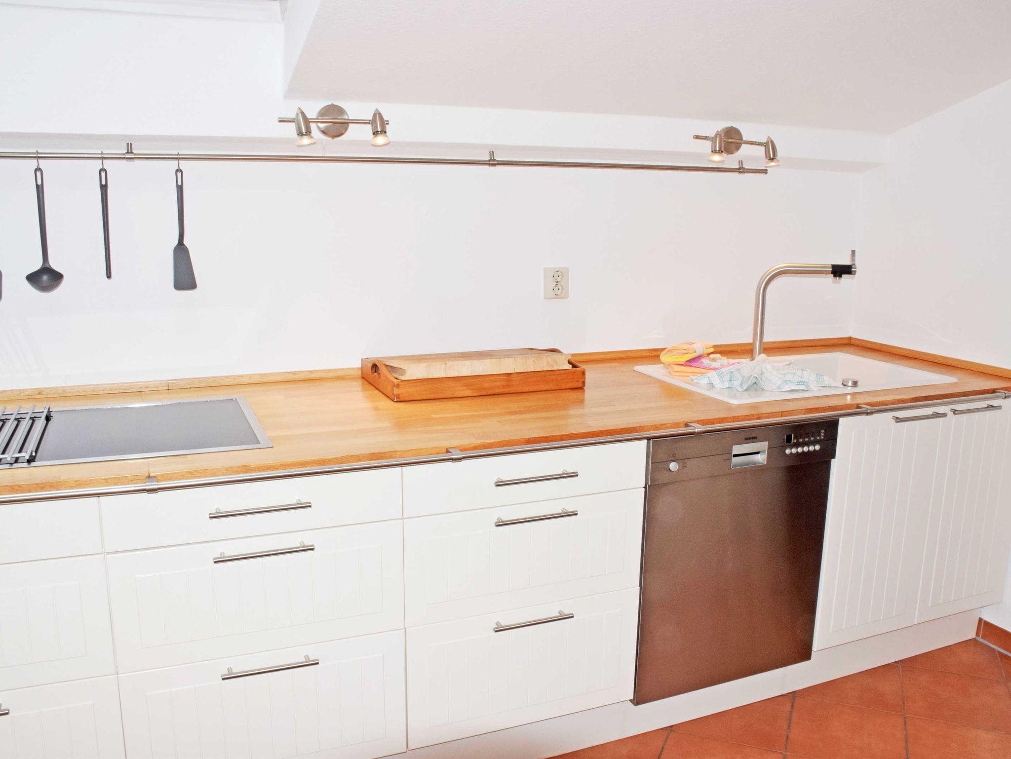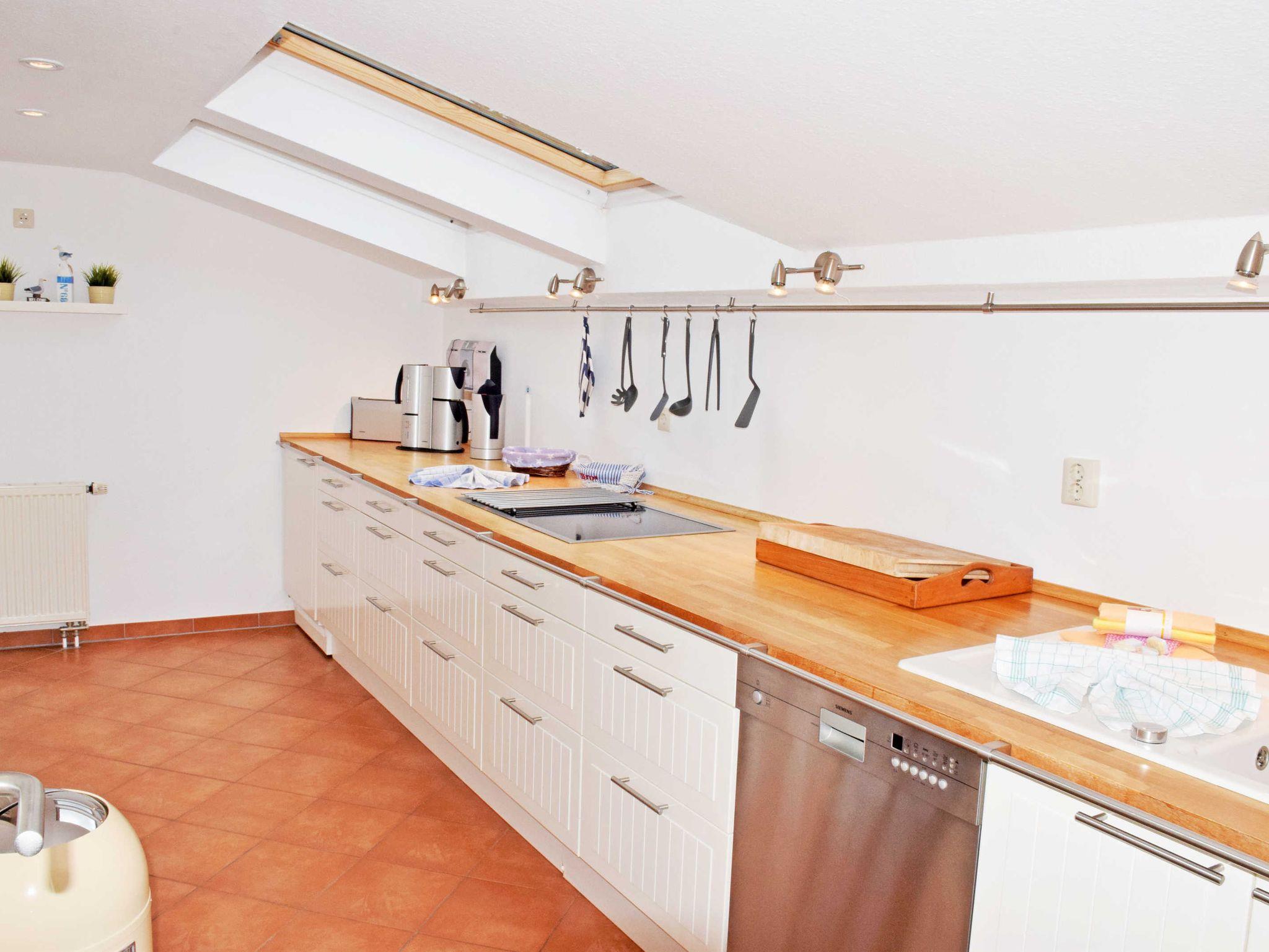 Die moderne Küchenzeile ist exklusiv ausgestattet mit Cerankochfeld, Geschirrspülmaschine, Wasserkocher, Kaffeemaschine, Toaster und umfangreichen weiteren Küchenutensilien.
