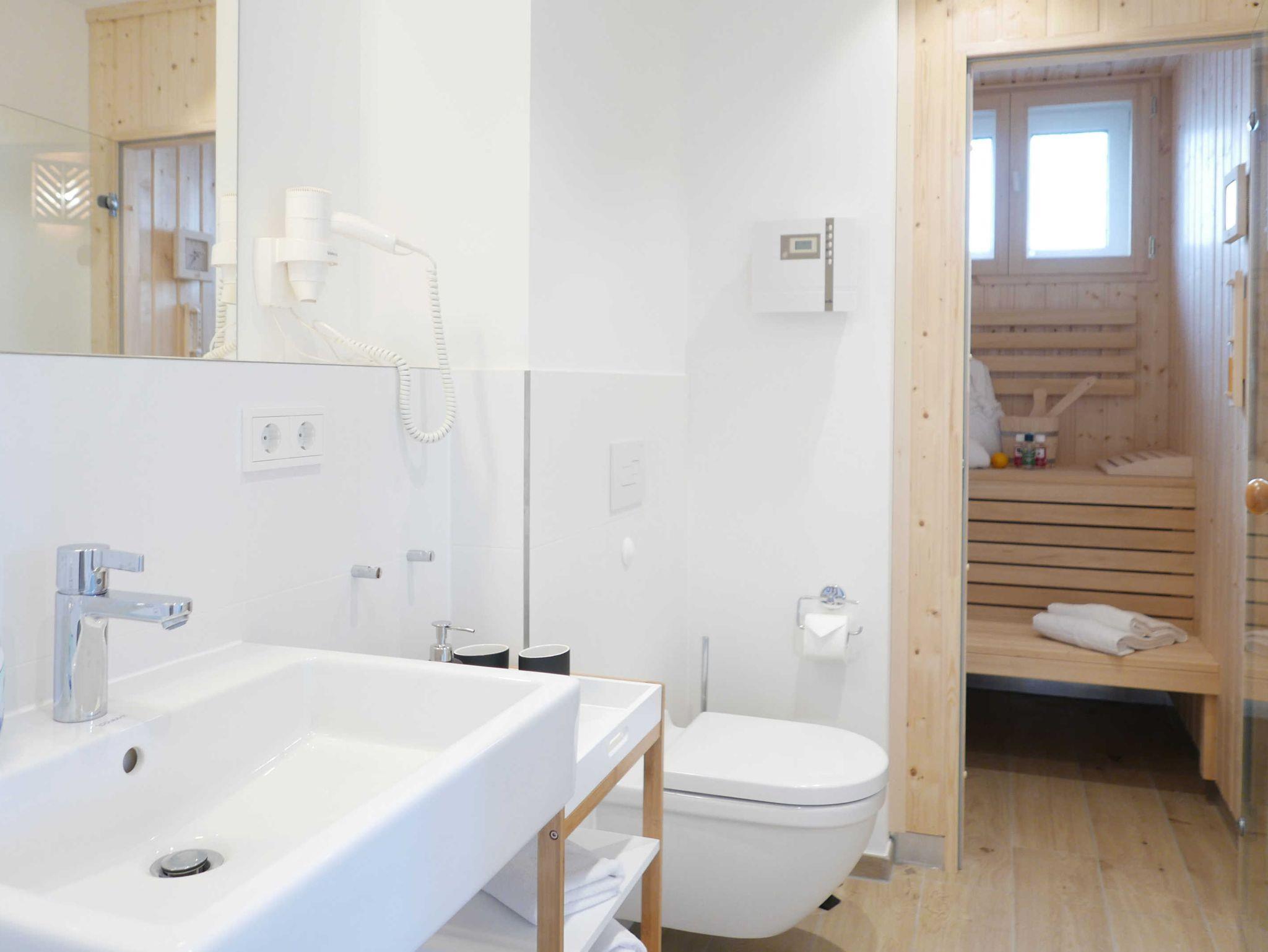 Helle 2-Zimmer-Ferienwohnung mit Terrasse, Garten und eigener Sauna für bis zu 3 Personen in dem neu eröffneten Villen-Ensemble (Vermietungsbeginn Sommer 2019).