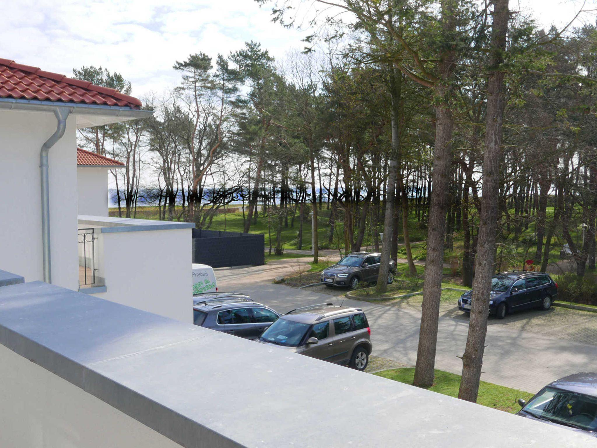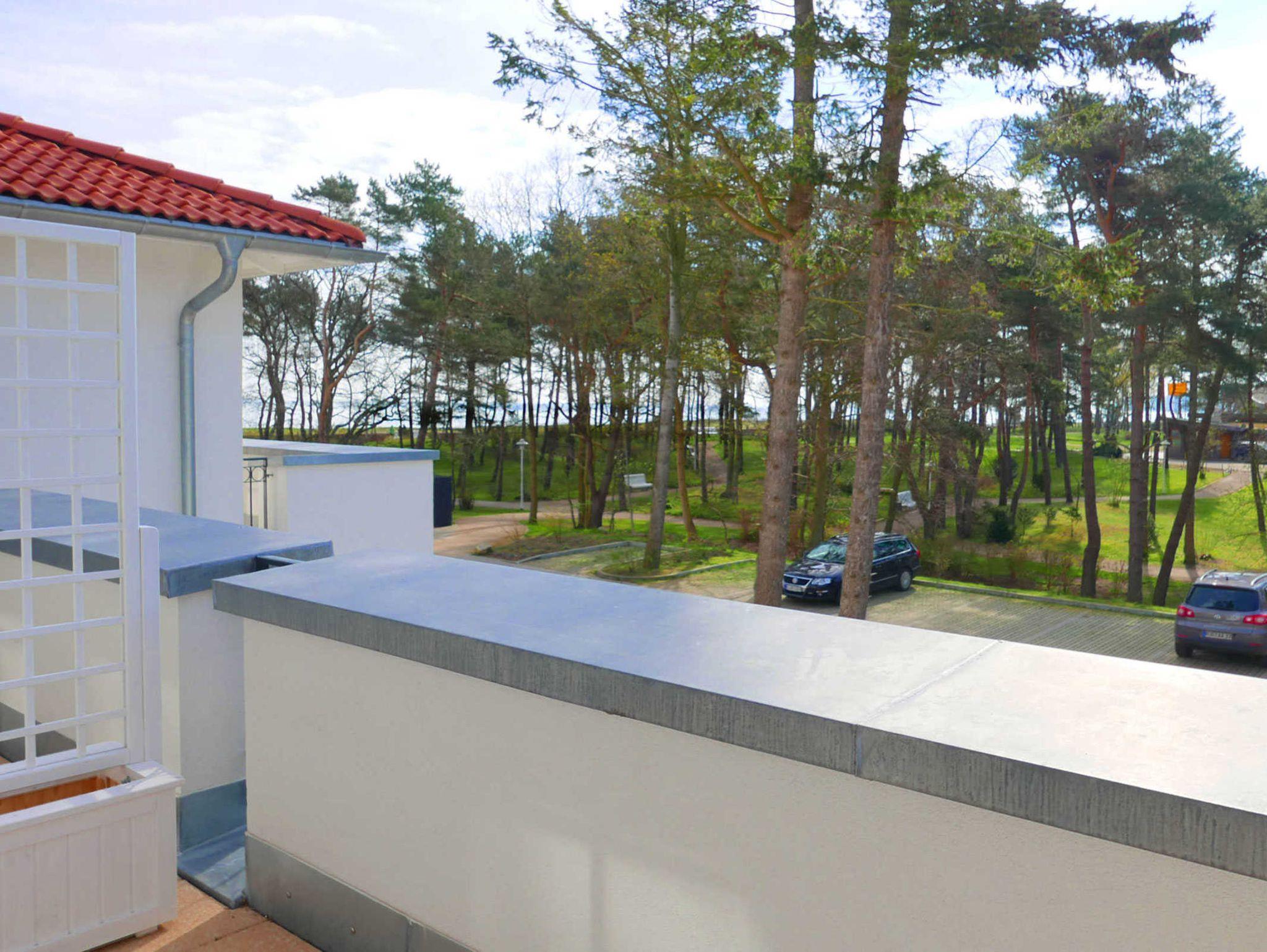 Vom Balkon aus genießen Sie einen seitlichen Meerblick auf die Ostsee.