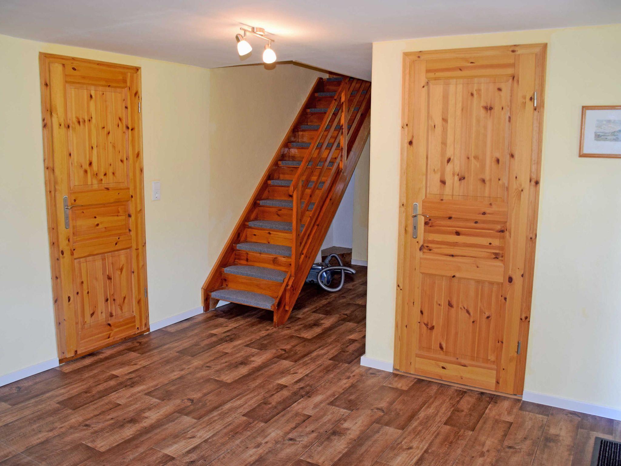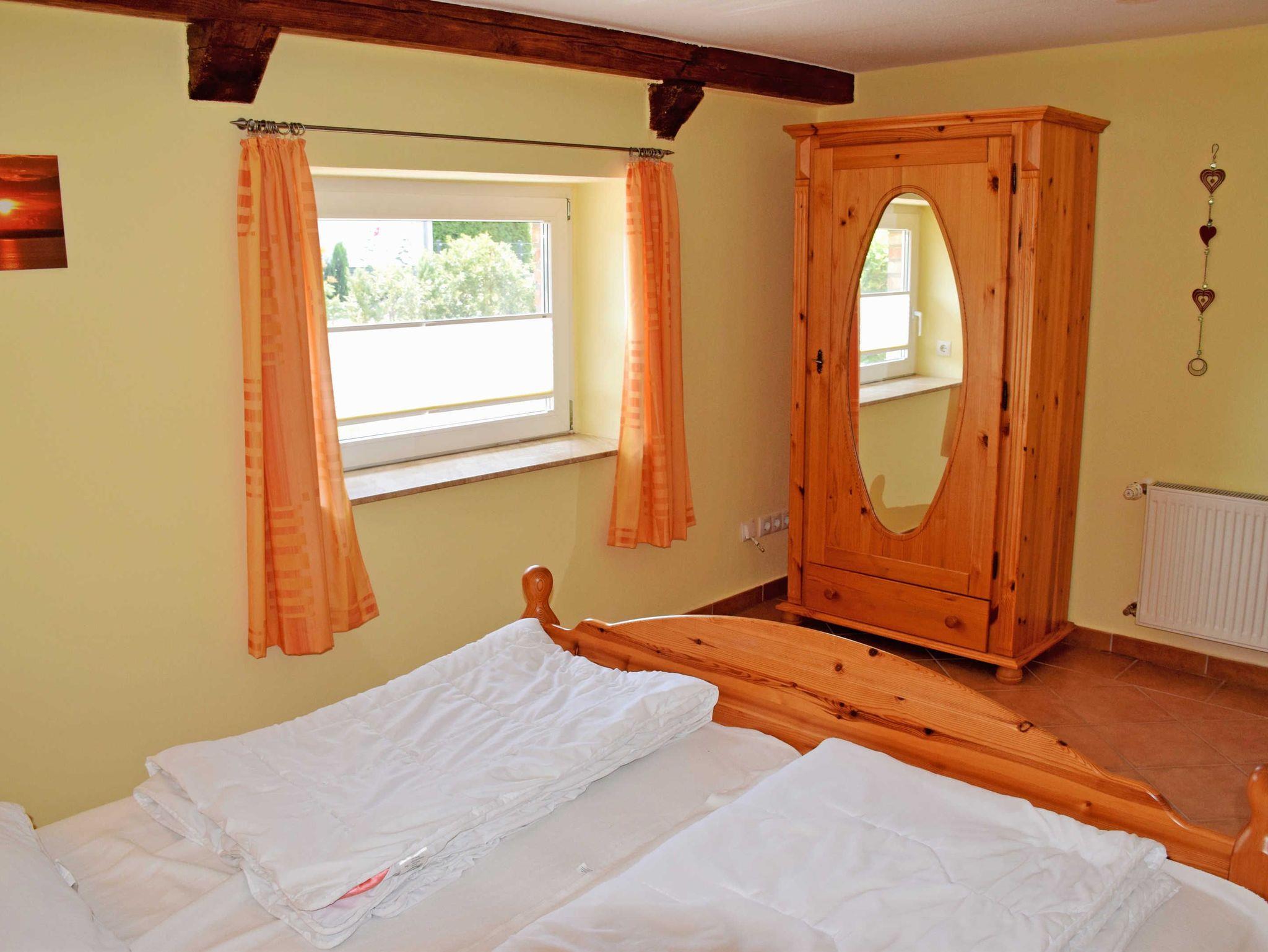 Über eine Treppe gelangt man in das Obergeschoss, in dem sich das Schlafzimmer befindet, das ebenfalls mit bequemen Doppelbett mit Nachttischen und Leselampen, einem Einzelbett sowie Kleiderschrank ausgestattet ist.