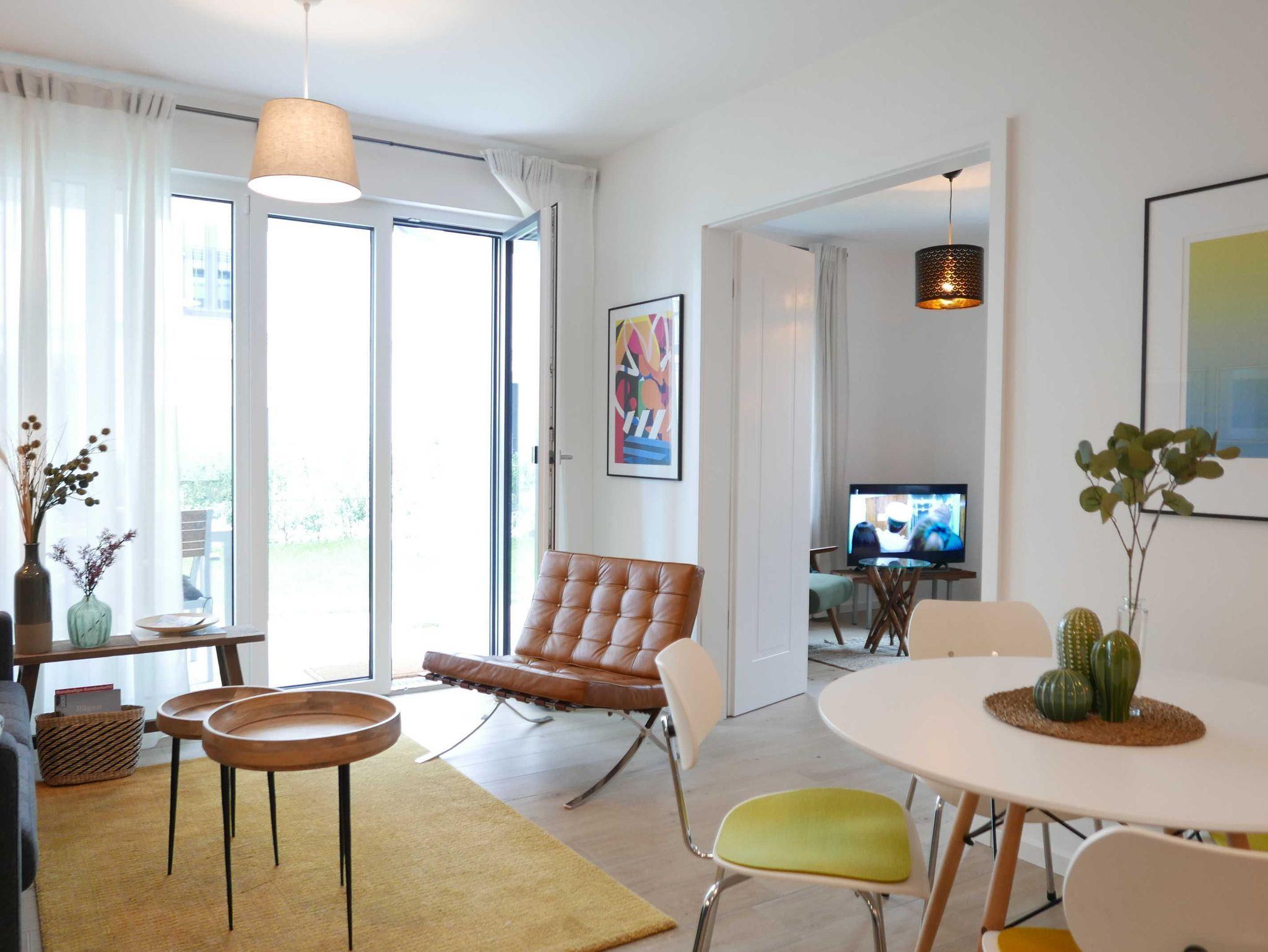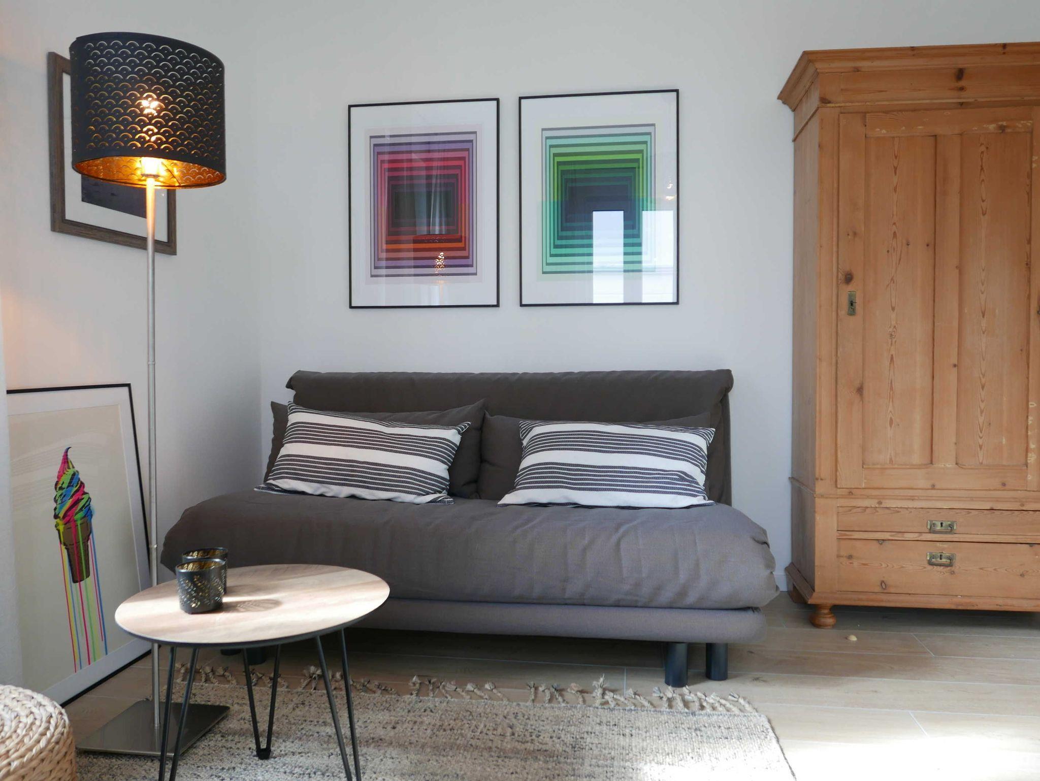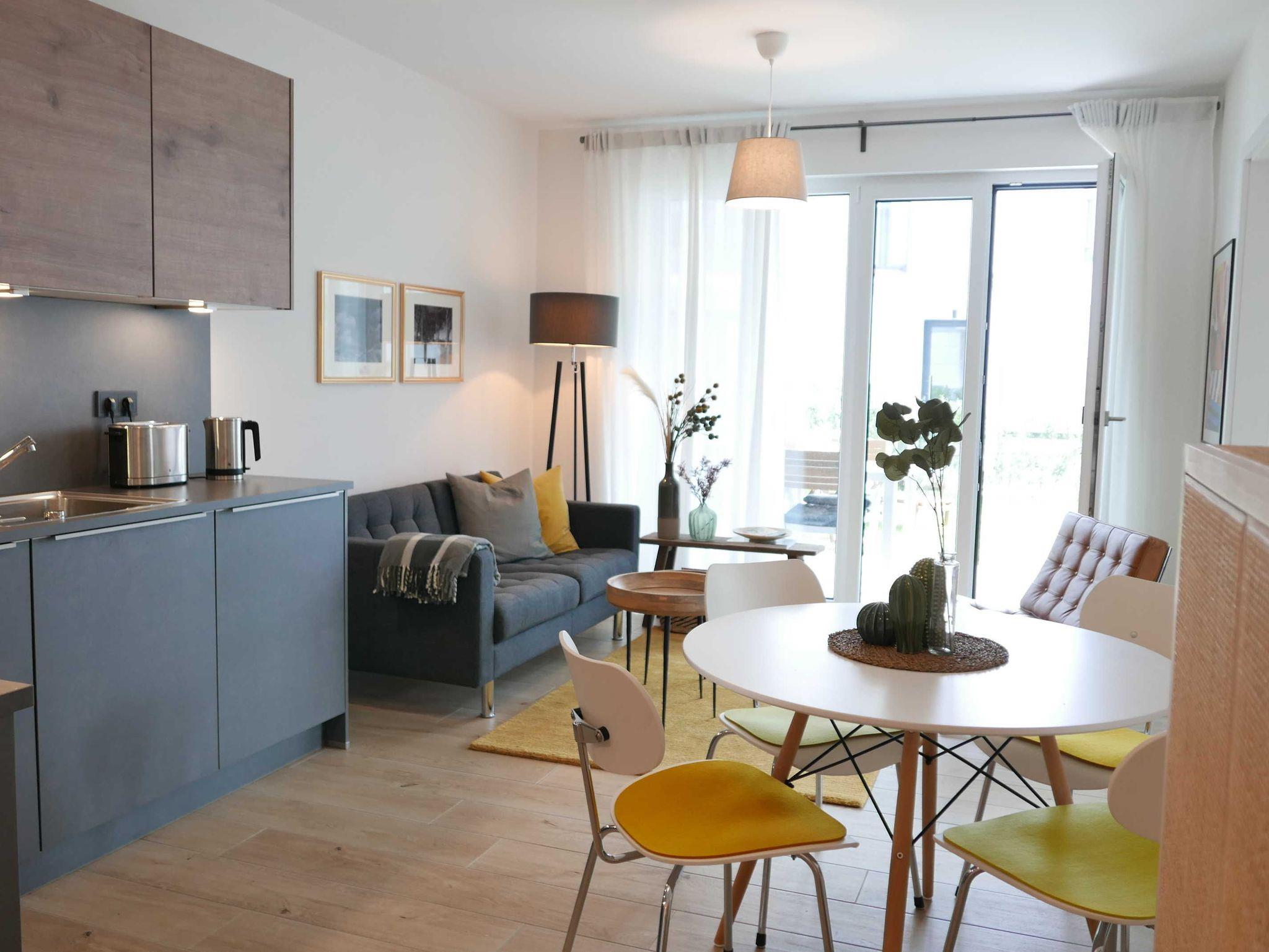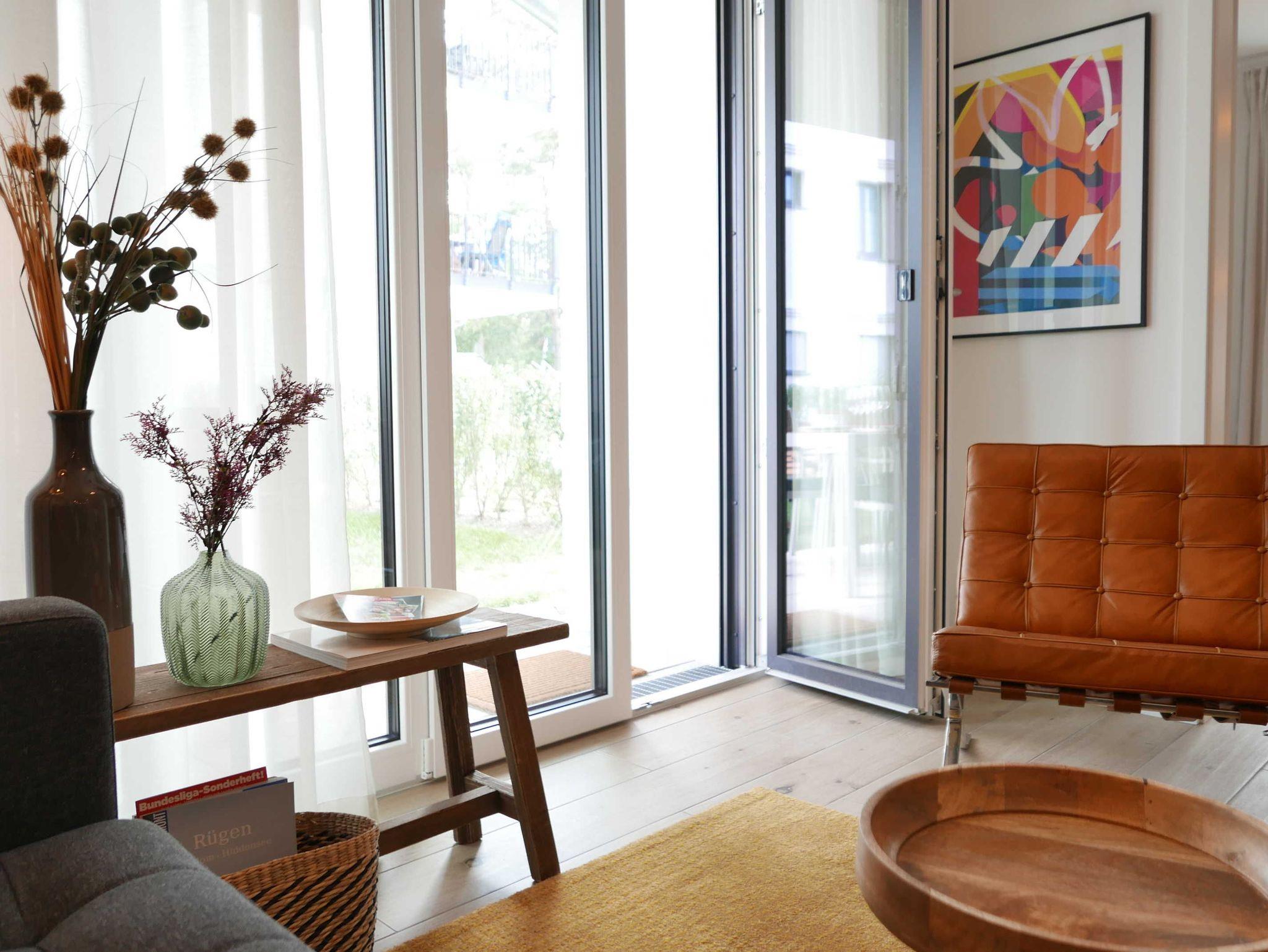 Die moderne helle Ferienwohnung für 4 Personen bietet allen Komfort für einen entspannten Urlaub und ist mit viel Gespür für Design eingerichtet. Sie verfügt über eine Terrasse mit kleinem Garten sowie einem Tisch mit 4 Stühlen. Die Wohnung eignet sich für 4 Personen und bietet Ihnen 2 separate Schlafmöglichkeiten in 2 Schlafräumen. Neben der Wohnküche gibt es noch ein extra Schlaf-/Wohnzimmer mit einem hochwertigen Schlafsofa mit extra Matratze (1,56 x 1,98 m). Sofern Sie nur zu zweit reisen, haben Sie so noch ein zusätzliches separates Wohnzimmer. Das Schlafzimmer ist mit einem Boxspringbett (1,60 x 2,00 m) und einem weiteren Fernseher ausgestattet. WLAN ist selbstverständlich vorhanden.