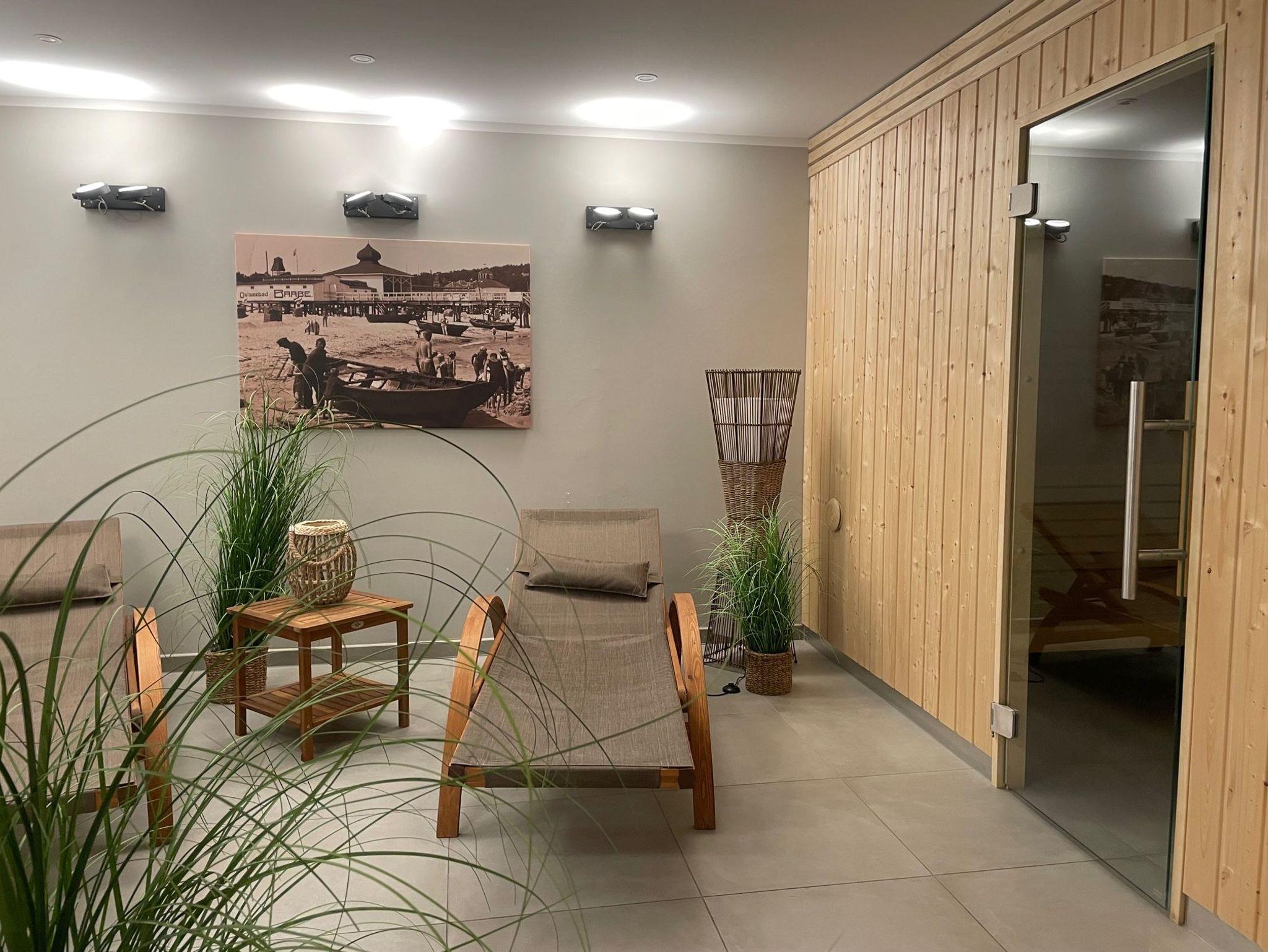 Im Untergeschoss des Villen-Ensembles befinden sich ein Wellnessbereich mit einer Gemeinschaftssauna (kostenpflichtig). Außerdem gibt es im unteren Bereich des Hauses ein Waschraum mit Waschmaschine und Trockner (gegen Gebühr) sowie einen Abstellraum für Fahrräder.