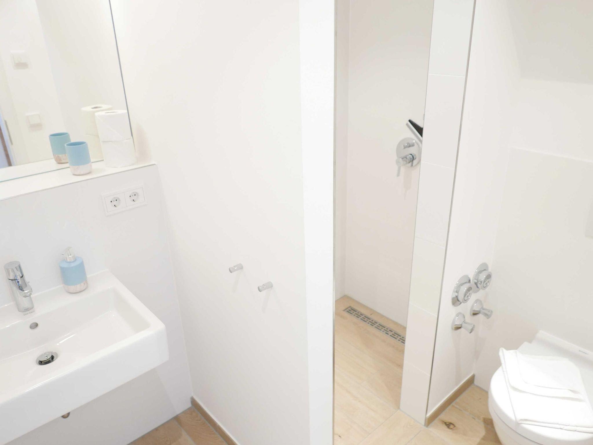 In dem Untergeschoss des Ensembles befindet sich ein Waschraum mit Maschine und Trockner (gegen Gebühr). Eine weitere (Gemeinschafts-) Sauna kann ebenfalls gegen Gebühr genutzt werden. Für Ihren PKW steht ein Tiefgaragenstellplatz bereit, Fahrräder finden im Außenbereich einen Abstellplatz.