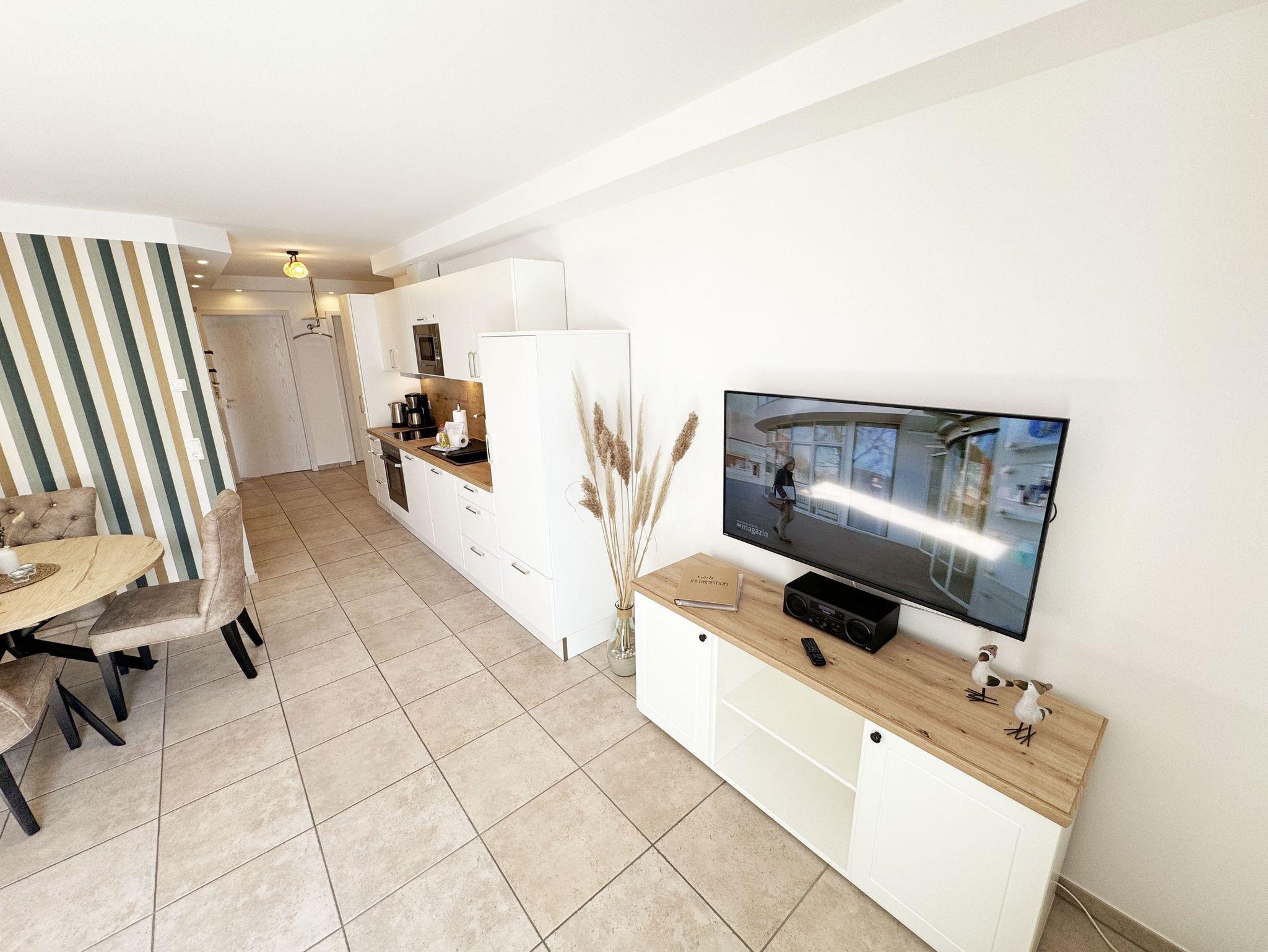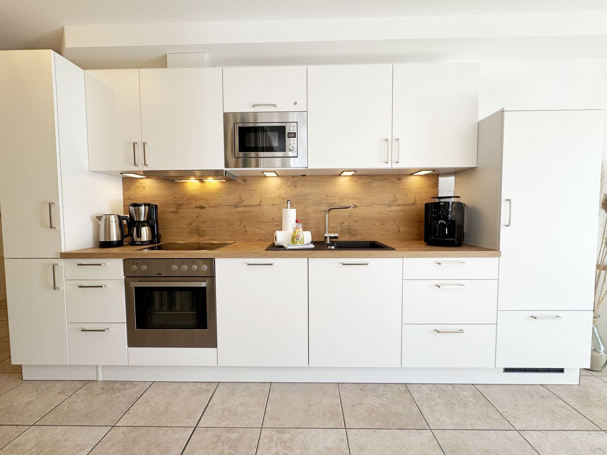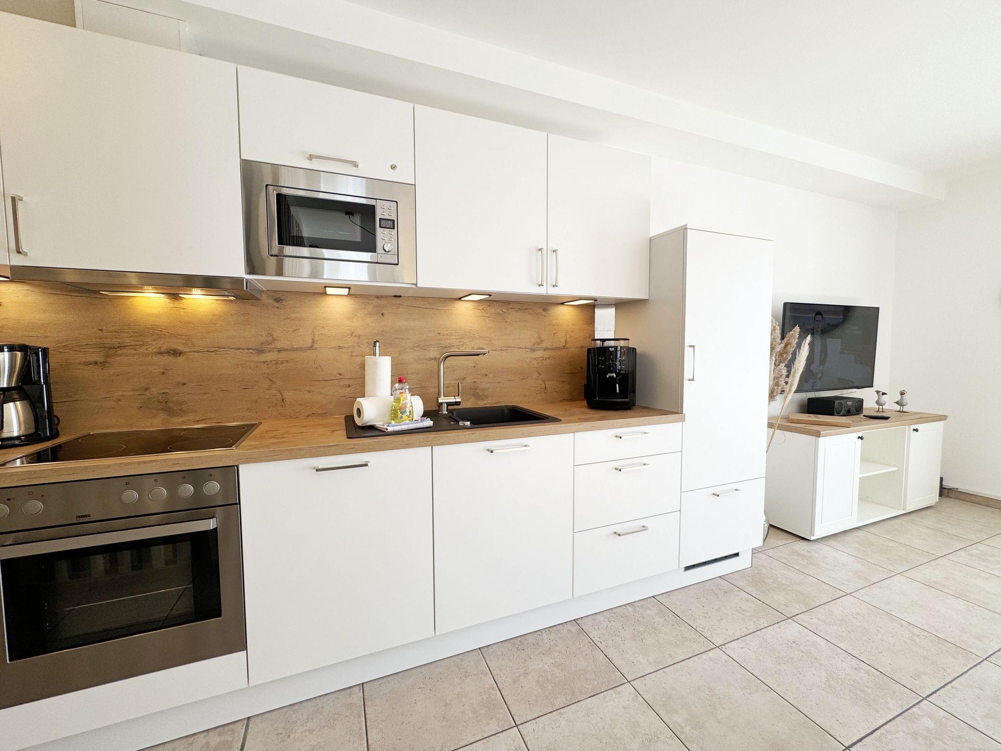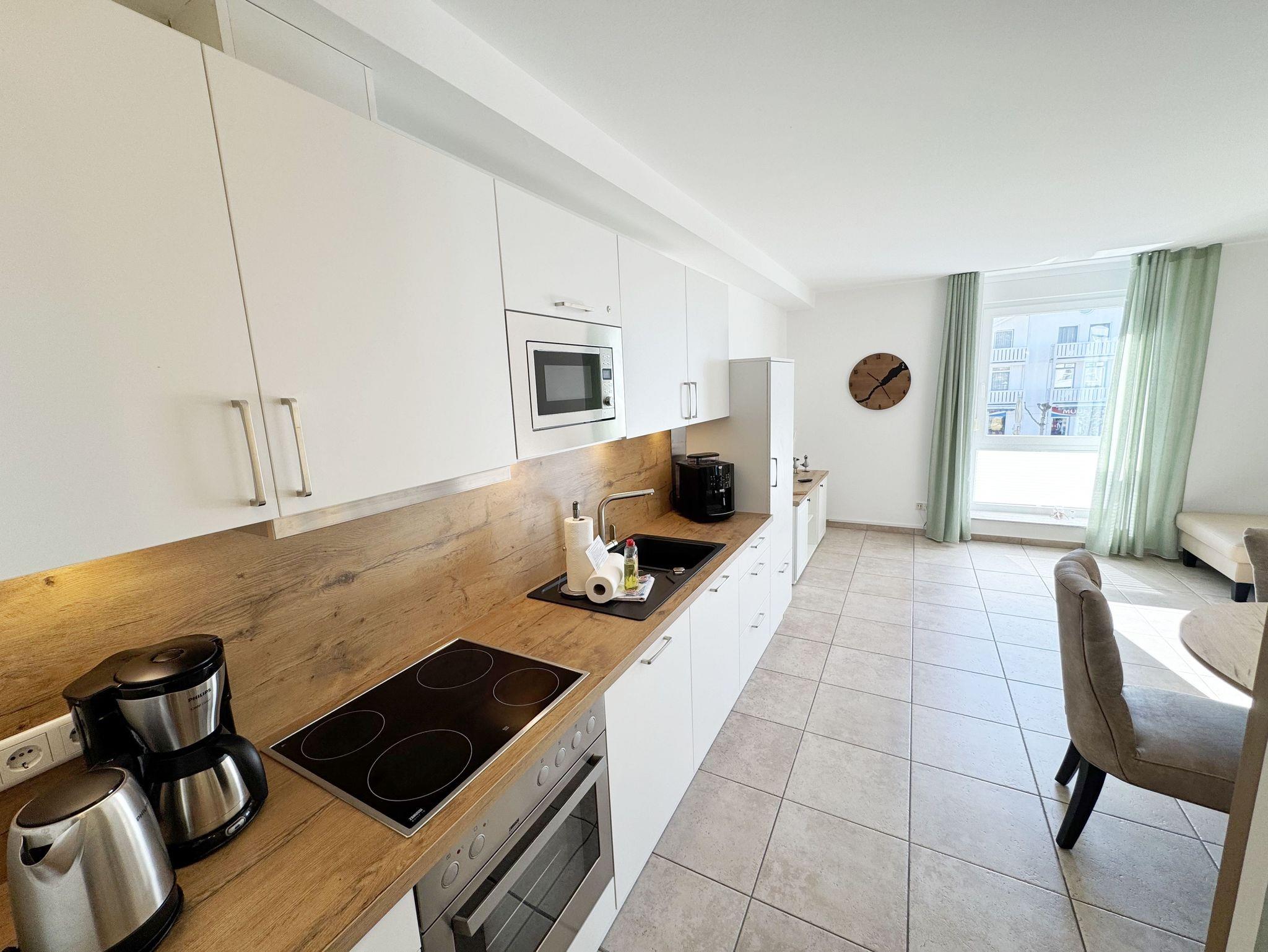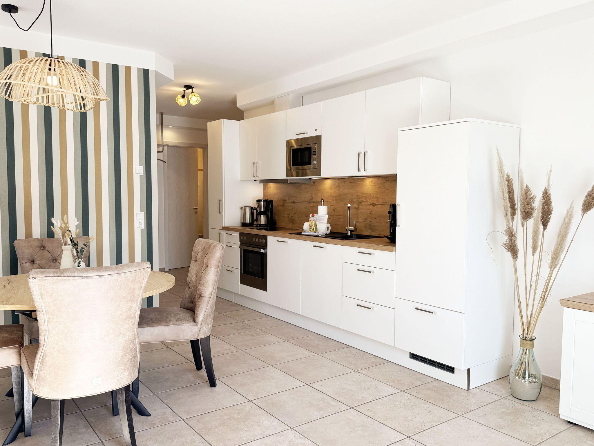 Sie wohnen auf ca. 70 m² in einer 3-Raum-Ferienwohnung für max. 2 bis 4 Personen. Die Nichtraucherferienwohnung befindet sich in der Villa Salus, in der 1. Etage. Der Eingangsbereich ist mit einer Garderobe, einem Ganzkörperspiegel und einer Sitzbank versehen. Von hier gelangen Sie in den Wohn-/Essbereich, der Ihnen mit seinen bodentiefen Fenstern eine helle und lichtdurchflutete Atmosphäre bietet. Der gemütliche Wohnbereich bietet Ihnen eine Couch, einen Couchtisch, beleuchtete Vitrine, ein TV-Board mit Smart-TV und ein Sky Angebot wie Serien, Blockbuster-Filmen sowie Live-Sport. Ein DAB-CD-Radio mit USB-Anschluss und ein WLAN-Zugang runden den technischen Bereich ab. Von hier gelangen Sie auf Ihren bestuhlten Balkon (West) mit Sonnenschirm. Die angrenzende Küchenzeile ist mit einem Backofen, einem Ceranfeld, einer Mikrowelle, einer Spülmaschine, einem Kühlschrank mit Gefrierfach, einer Kaffeemaschine, einem Wasserkocher, einem Toaster, einem Mixer, einem Pürierstab sowie Küchenhelfern ausgestattet. Abgerundet wird der Bereich mit einem Esstisch. Das erste Schlafzimmer verfügt über ein Doppelbett (1,80m x 2,00m) mit Nachttischablagen, verstellbare Lattenroste, einen Ganzkörperspiegel, einen Kleiderschrank sowie ein Smart-TV. Von hier gelangen Sie direkt in eines der beiden Bäder, welches mit einer Dusche (flacher Einstieg), einem Waschplatz, einem WC, einem Handtuchheizkörper, einem Kosmetikspiegel, einem Fön und Fenster ausgestattet ist. Das zweite Schlafzimmer verfügt über ein Doppelbett (1,80m x 2,00m) mit Nachttischablagen, verstellbare Lattenroste, einen Ganzkörperspiegel, einen Kleiderschrank sowie einen Schreibtisch. Von hier haben Sie auch einen Zugang zu ihrem West-Balkon. In beiden Schlafzimmern sorgen Insektenschutzgitter für einen angenehmen Schlaf. Das 2. innenliegende Badezimmer erreichen Sie vom Flurbereich, welches ebenfalls mit einer Dusche (flacher Einstieg), einem Waschplatz, einem WC und einem Handtuchheizkörper ausgestattet ist. Für eine wohlige Wärme sorgt die in der gesamten Wohnung verlegte Fußbodenheizung. In der gesamten Wohnung können Sie sich über Außenrollläden freuen. Für unsere kleinen Gäste stehen ein Hochstuhl sowie ein Kinderreisebett (inklusive Zusatzmatratze) zur Verfügung. Reinigungsutensilien sowie ein Wäscheständer stehen Ihnen zusätzlich zur Verfügung. Haustiere sind nicht erlaubt. Ihre mitgebrachten oder auch geliehenen Fahrräder können Sie im zugehörigen eigenen Abstellraum im Erdgeschoss unterstellen. Hier können Sie auch eine Waschmaschine, einen Trockner sowie ein Bügelbrett und ein Bügeleisen nutzen. Ihr eigener Stellplatz (Nr. 04) befindet sich direkt hinter dem Haus. Die Erstausstattung eines Wäschepaketes (komplette Bettwäsche, 1 Duschhandtuch, 2 kleine Handtücher) können Sie bis 14 Tage vor Anreise gegen einen Aufpreis dazu buchen oder durch Eigenes ergänzen. Ab 2 gebuchten Paketen erhalten Sie einmalig 1 Geschirrhandtuch und 1 Duschvorleger hinzu.