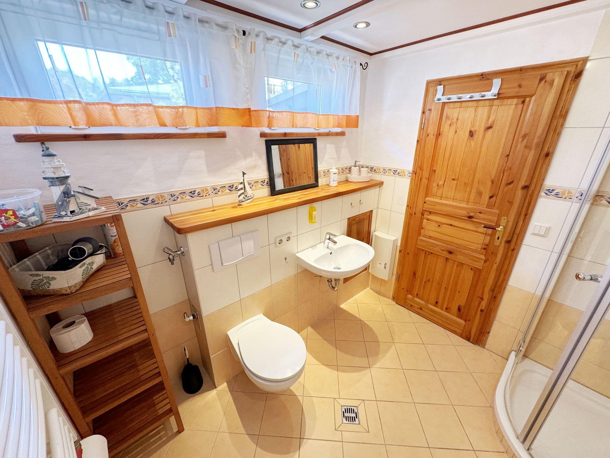 Das Nichtraucherferienhaus Thea umfasst ca. 48 m² und bietet Ihnen Platz für max. 2 Erwachsene. Der offene Wohnbereich ist mit einer Eckcouch, Couchtisch, Radio mit CD-Player, DVD-Player und einem Smart-TV ausgestattet. Auch auf einen Internetanschluss (WLAN) brauchen Sie im Urlaub nicht verzichten. Dieser ist inklusive für Sie. In Verlängerung schließt sich der Essplatz an. Die vollausgestattet Küchenzeile verfügt über einen Backofen, Ceranfeld mit Dunstabzugshabe, Geschirrspüler, Mikrowelle, Kühlschrank mit Eisfach, Kaffeemaschine, Toaster, Wasserkocher sowie diverse Küchenutensilien. Für gemütliche Abende, gerade in der kälteren Jahreszeit, sorgt ein Kamin. Das offene Schlafzimmer verfügt über ein Doppelbett (1,80 m x 2,00 m), Nachttischablagen sowie einen Kleiderschrank. Vom Wohnbereich gelangen Sie auf die bestuhlte Terrasse. Das Tageslicht-Bad wird durch eine Eckdusche, Handtuchwärmer, Fön, WC und Waschtisch abgerundet. Alle Räumlichkeiten sind mit einer Fußbodenheizung sowie Fliesen versehen worden. Mit einem eigenen und mitgebrachten Schlafplatz sind max. 2 Haustiere gegen eine Gebühr gern gesehene Gäste. Im separaten Waschhaus können Sie gegen eine Kasse des Vertrauens eine Waschmaschine und einen Trockner nutzen. Ihre mitgebrachten oder auch geliehenen Fahrräder können Sie am Haus abstellen. Ein PKW-Stellplatz mit Ladestation befindet sich auf dem Grundstück. Die Erstausstattung eines Wäschepaketes (komplette Bettwäsche, 1 Duschhandtuch, 1 kleines Handtuch) können Sie bis 14 Tage vor Anreise gegen einen Aufpreis dazu buchen oder durch eigene ergänzen. Ab 2 gebuchten Paketen erhalten Sie einmalig 1 Geschirrhandtuch und 1 Duschvorleger hinzu.
