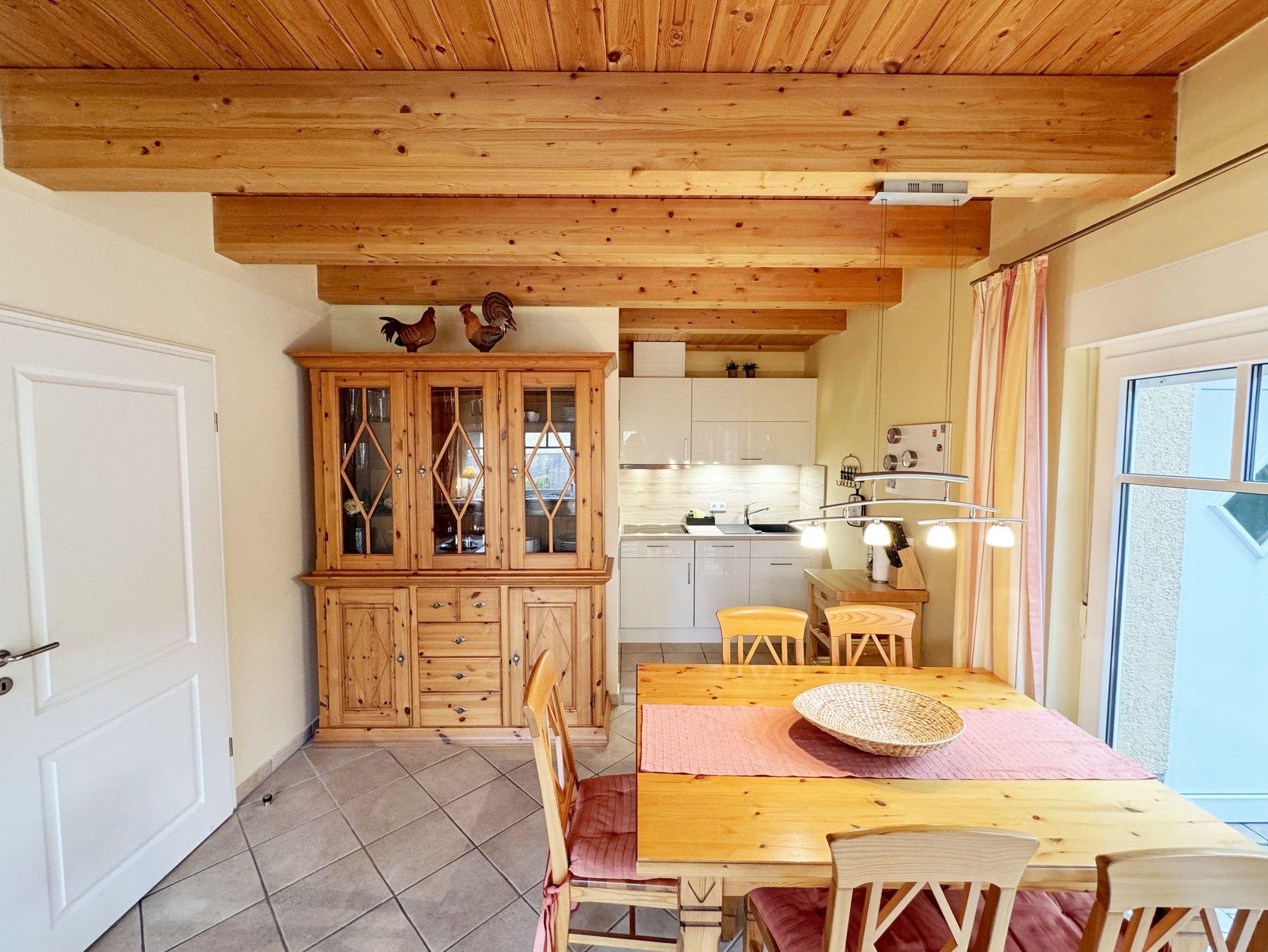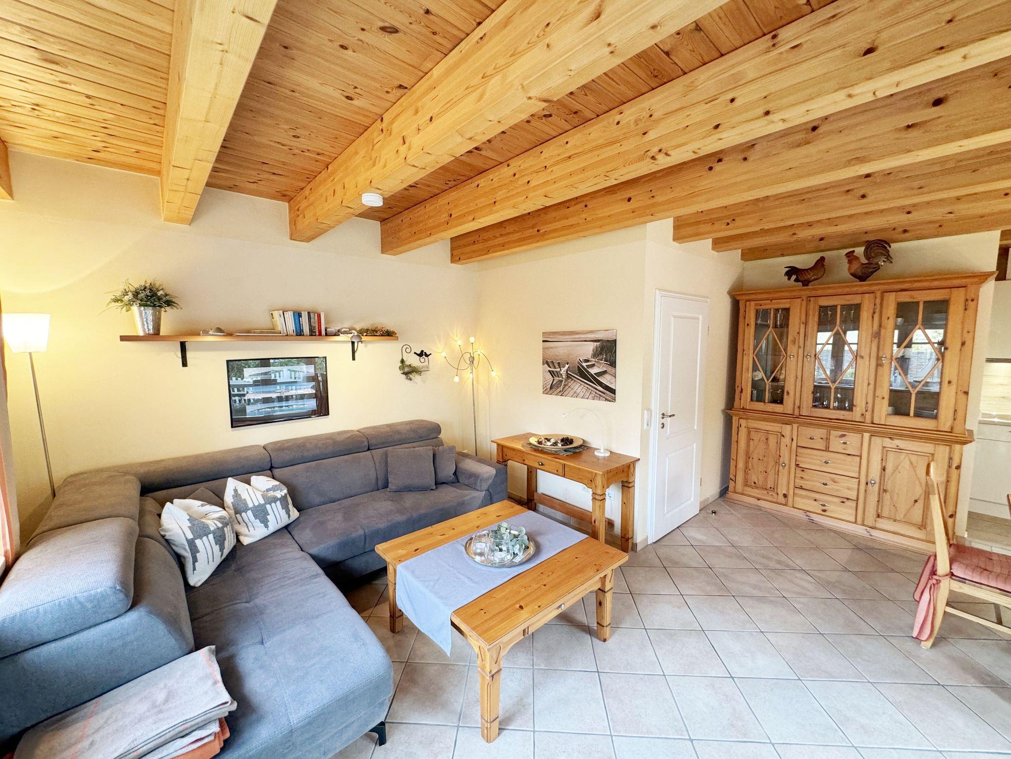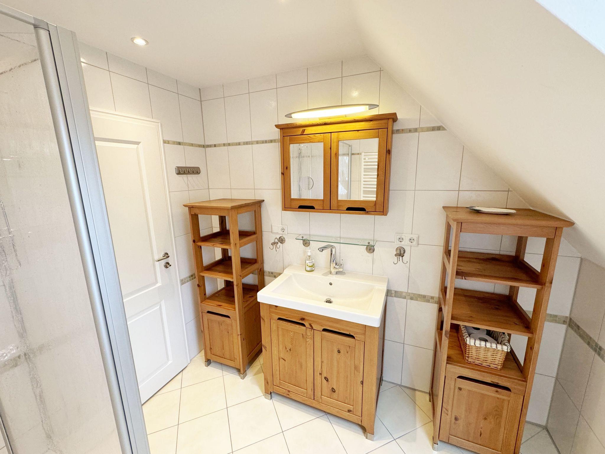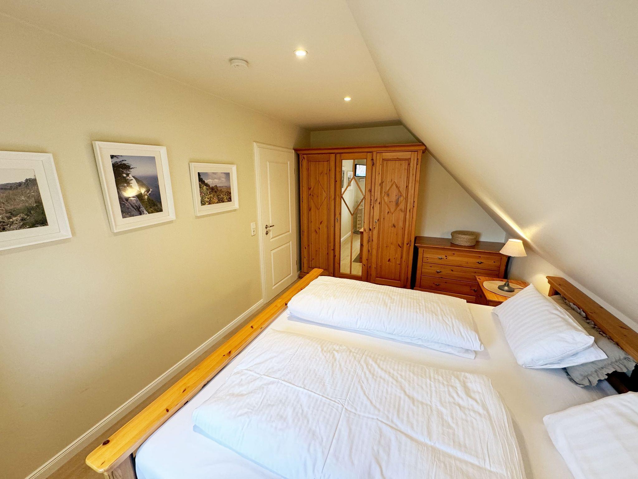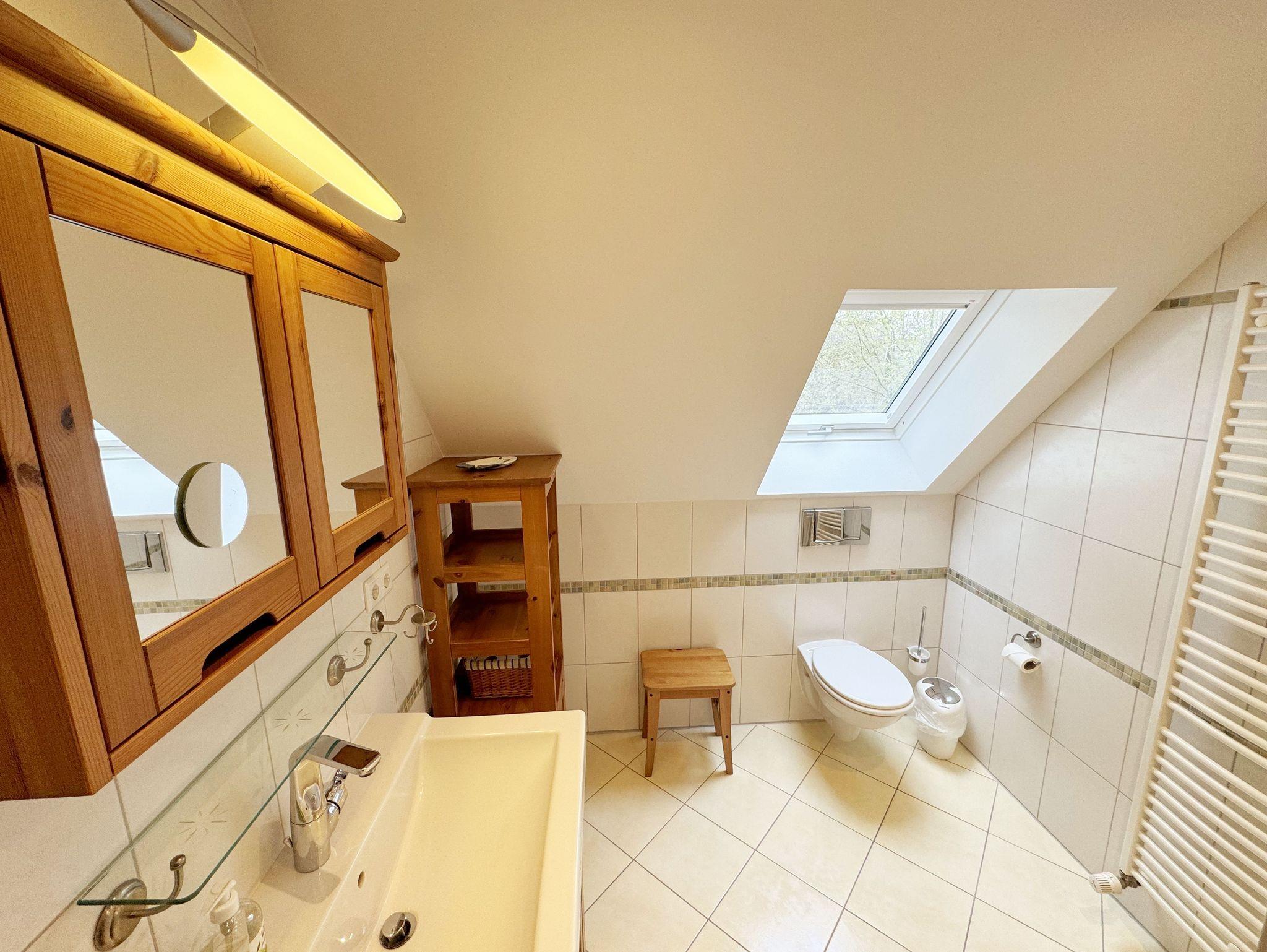 Die 70 qm große Doppelhaushälfte (Nichtraucher) für 2 bis 5 Personen und 1 Kleinkind bis 3 Jahre im Kinderreisebett, wurde mit viel Liebe zum Detail ausgestattet und eingerichtet. Die Haushälfte verläuft über 2 Etagen und besteht im Erdgeschoss aus einem großzügigen Wohn-/Essbereich mit einer vollausgestatteten Küchenzeile sowie einem Gäste-WC. Im Obergeschoss finden Sie 2 separate Schlafräume, das große Badezimmer und einen Abstellraum. Der helle Wohnbereich mit Couchecke (Aufbettungsmöglichkeit für eine 5. Person/1,30m x 1,90m), Couchtisch, Leselampe, ein Bücherregal mit kleiner Buchauswahl, ein großer Smart-TV im TV-Schrank mit DVD-Player und eine kleine Musikanlage sorgen für Ihre Unterhaltungsmöglichkeiten. Ein kostenfreier WLAN-Zugang (250 Mbit/S) steht Ihnen auch zur Verfügung. Die angrenzende Küchenecke lässt mit einem Backofen, Ceran-Kochfeld, Geschirrspüler, Kühlschrank mit Eisfach, Kaffeemaschine, Senseo Padmaschine, Wasserkocher, Toaster, weiteren praktischen Helfern sowie einen Essplatz mit 5 Stühlen keine Wünsche offen. Auf gleicher Ebene finden Sie auch das Gäste-WC. Von der bestuhlten Terrasse (Süd/West) mit Strandkorb gelangen Sie in einen separaten Abstellraum mit Waschmaschine/Trockner (inklusive), Bügelbrett, Bügeleisen, Staubsauger und Reinigungsutensilien. Im Obergeschoss befinden sich beide Schlafzimmer. Das größere verfügt über ein Doppelbett (2,00 m x 2,00 m), Nachttischkonsolen, einen Kleiderschrank und eine Kommode mit Flachbild-TV. Das kleinere Schlafzimmer wird durch 2 Einzelbetten (á 0,90 m x 2,00 m) und eine Kommode mit Flachbild-TV abgerundet. Alle Betten wurden mit Komfort Kaltschaum - Matratzen und verstellbaren Lattenroste ausgestattet sowie Insektenschutzgittern. Das großzügige Tageslichtbad wird durch eine Dusche, WC, Waschtisch mit Spiegelschrank, Kosmetikspiegel, Fön und Badezimmermöbel komplettiert. Alle Räumlichkeiten können durch Rollläden verdunkelt werden. Hochwertige Steinzeugfliesen wurden im Erdgeschoss verlegt und im Bad sowie in den Schlafräumen massive Holzdielen. Einen PKW-Stellplatz finden Sie im Carport, wo auch bei Bedarf dahinter ein 2. Stellplatz genutzt werden kann. Ein verschlossener Abstellraum für Ihre mitgebrachten oder geliehenen Fahrräder befindet sich am Carport. Haustiere sind nicht erlaubt. Die Erstausstattung eines Wäschepaketes (komplette Bettwäsche, 1 Duschhandtuch, 1 kleines Handtuch) können Sie bis 14 Tage vor Anreise gegen einen Aufpreis dazu buchen oder durch eigene ergänzen. Ab 2 gebuchten Paketen erhalten Sie einmalig 1 Geschirrhandtuch und 1 Duschvorleger hinzu.