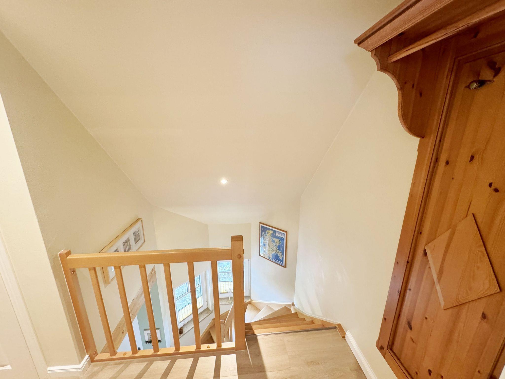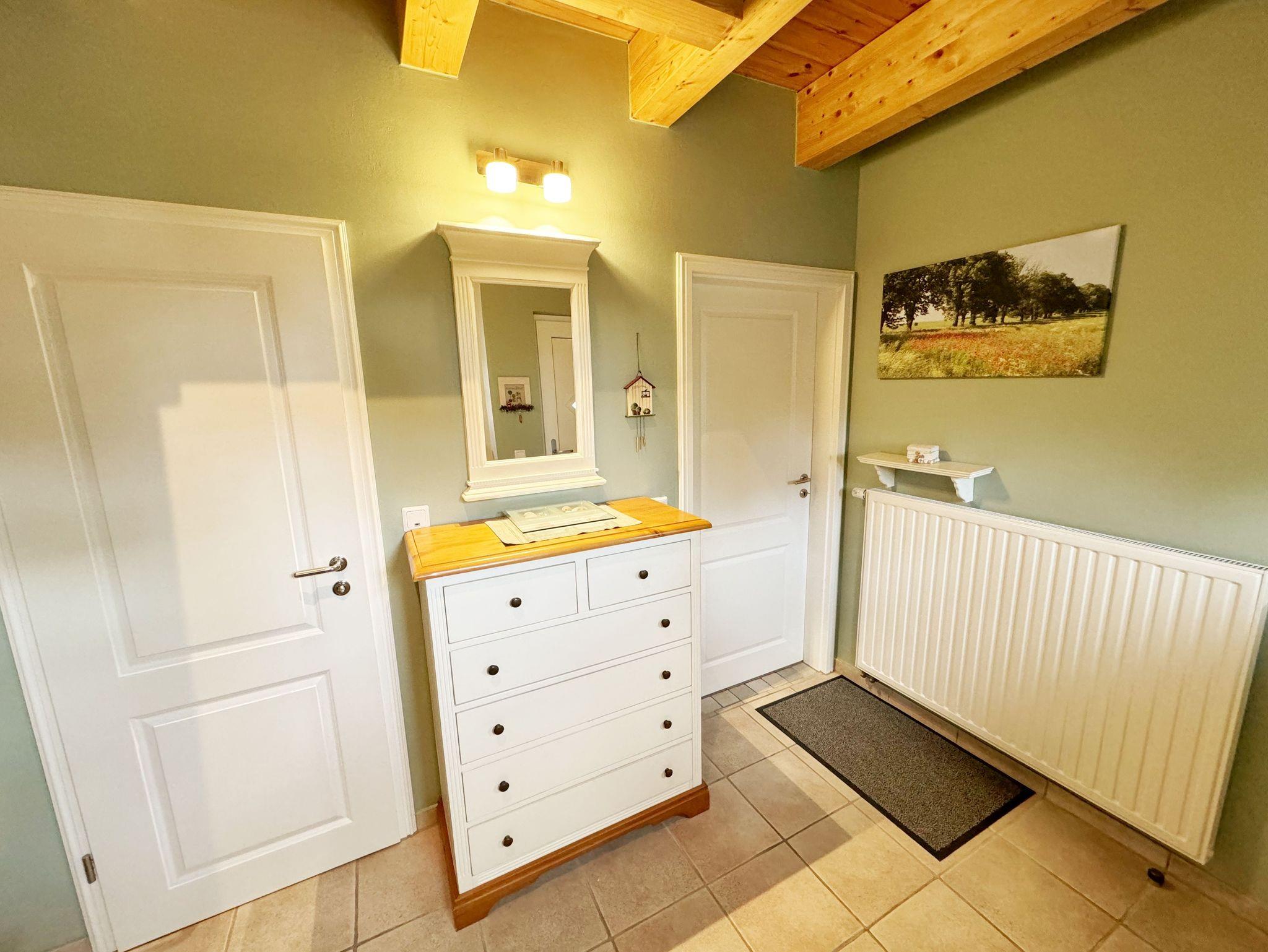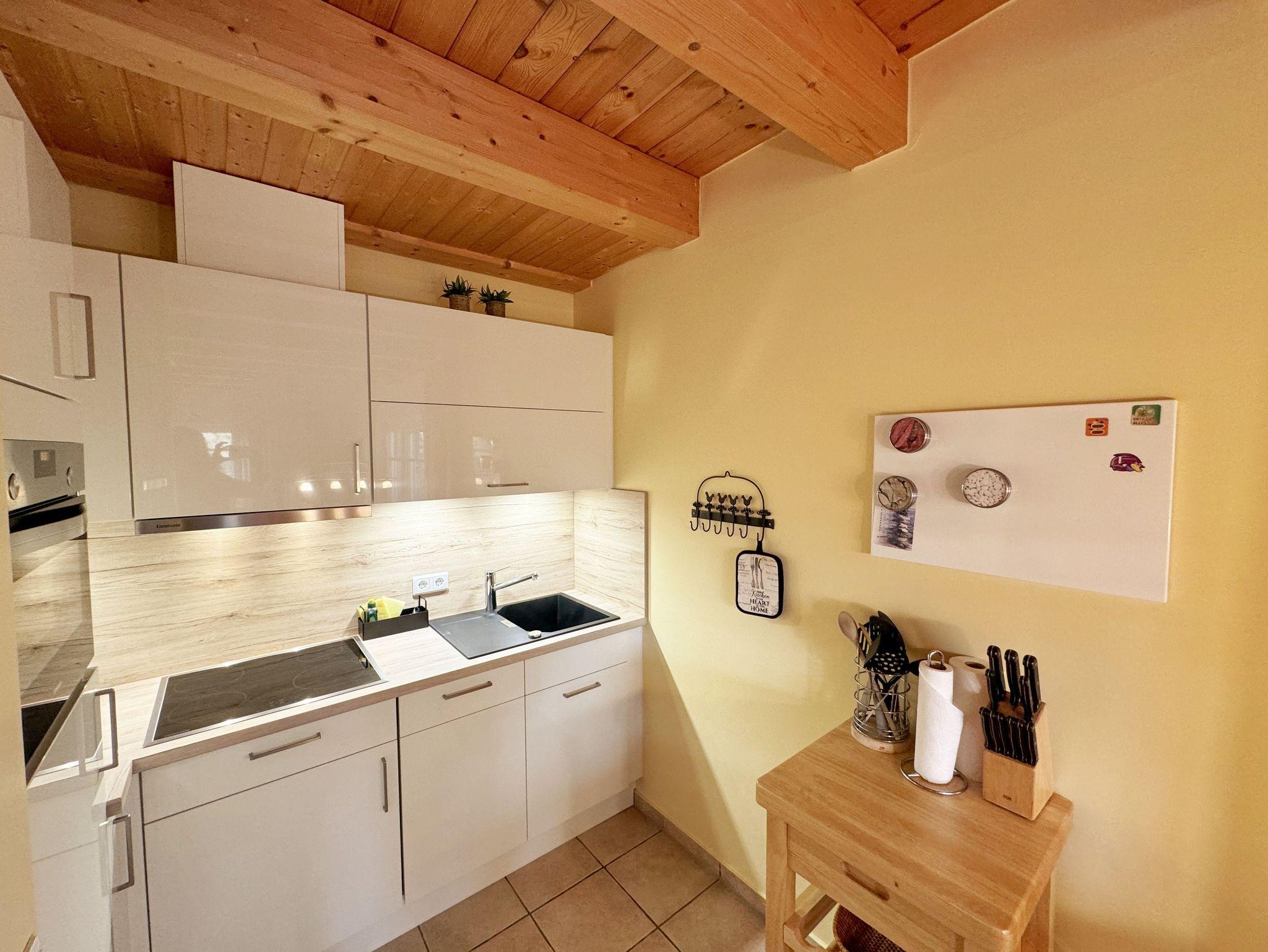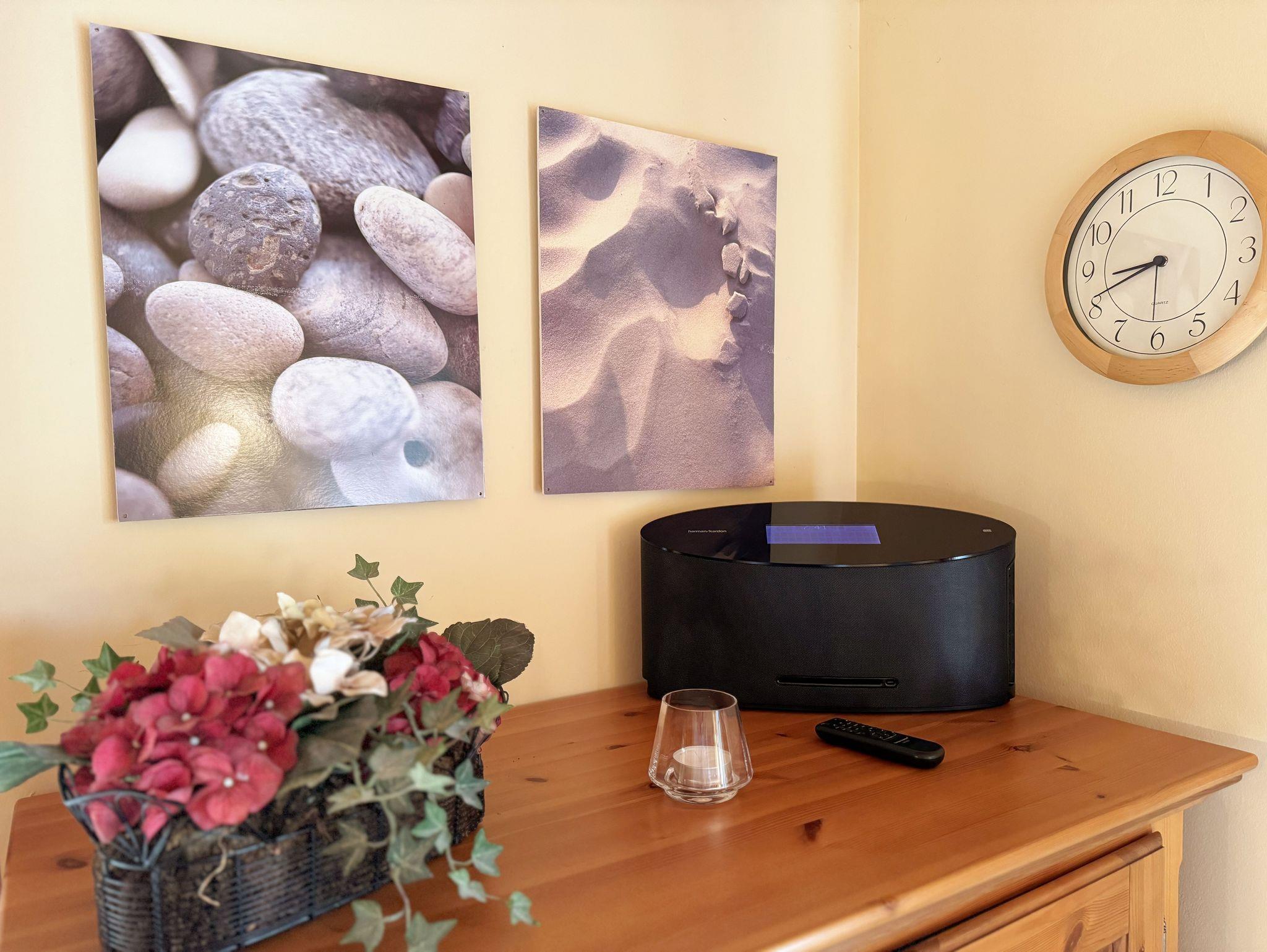 Die 70 qm große Doppelhaushälfte (Nichtraucher) für 2 bis 5 Personen und 1 Kleinkind bis 3 Jahre im Kinderreisebett, wurde mit viel Liebe zum Detail ausgestattet und eingerichtet. Die Haushälfte verläuft über 2 Etagen und besteht im Erdgeschoss aus einem großzügigen Wohn-/Essbereich mit einer vollausgestatteten Küchenzeile sowie einem Gäste-WC. Im Obergeschoss finden Sie 2 separate Schlafräume, das große Badezimmer und einen Abstellraum. Der helle Wohnbereich mit Couchecke (Aufbettungsmöglichkeit für eine 5. Person/1,30m x 1,90m), Couchtisch, Leselampe, ein Bücherregal mit kleiner Buchauswahl, ein großer Smart-TV im TV-Schrank mit DVD-Player und eine kleine Musikanlage sorgen für Ihre Unterhaltungsmöglichkeiten. Ein kostenfreier WLAN-Zugang (250 Mbit/S) steht Ihnen auch zur Verfügung. Die angrenzende Küchenecke lässt mit einem Backofen, Ceran-Kochfeld, Geschirrspüler, Kühlschrank mit Eisfach, Kaffeemaschine, Senseo Padmaschine, Wasserkocher, Toaster, weiteren praktischen Helfern sowie einen Essplatz mit 5 Stühlen keine Wünsche offen. Auf gleicher Ebene finden Sie auch das Gäste-WC. Von der bestuhlten Terrasse (Süd/West) mit Strandkorb gelangen Sie in einen separaten Abstellraum mit Waschmaschine/Trockner (inklusive), Bügelbrett, Bügeleisen, Staubsauger und Reinigungsutensilien. Im Obergeschoss befinden sich beide Schlafzimmer. Das größere verfügt über ein Doppelbett (2,00 m x 2,00 m), Nachttischkonsolen, einen Kleiderschrank und eine Kommode mit Flachbild-TV. Das kleinere Schlafzimmer wird durch 2 Einzelbetten (á 0,90 m x 2,00 m) und eine Kommode mit Flachbild-TV abgerundet. Alle Betten wurden mit Komfort Kaltschaum - Matratzen und verstellbaren Lattenroste ausgestattet sowie Insektenschutzgittern. Das großzügige Tageslichtbad wird durch eine Dusche, WC, Waschtisch mit Spiegelschrank, Kosmetikspiegel, Fön und Badezimmermöbel komplettiert. Alle Räumlichkeiten können durch Rollläden verdunkelt werden. Hochwertige Steinzeugfliesen wurden im Erdgeschoss verlegt und im Bad sowie in den Schlafräumen massive Holzdielen. Einen PKW-Stellplatz finden Sie im Carport, wo auch bei Bedarf dahinter ein 2. Stellplatz genutzt werden kann. Ein verschlossener Abstellraum für Ihre mitgebrachten oder geliehenen Fahrräder befindet sich am Carport. Haustiere sind nicht erlaubt. Die Erstausstattung eines Wäschepaketes (komplette Bettwäsche, 1 Duschhandtuch, 1 kleines Handtuch) können Sie bis 14 Tage vor Anreise gegen einen Aufpreis dazu buchen oder durch eigene ergänzen. Ab 2 gebuchten Paketen erhalten Sie einmalig 1 Geschirrhandtuch und 1 Duschvorleger hinzu.