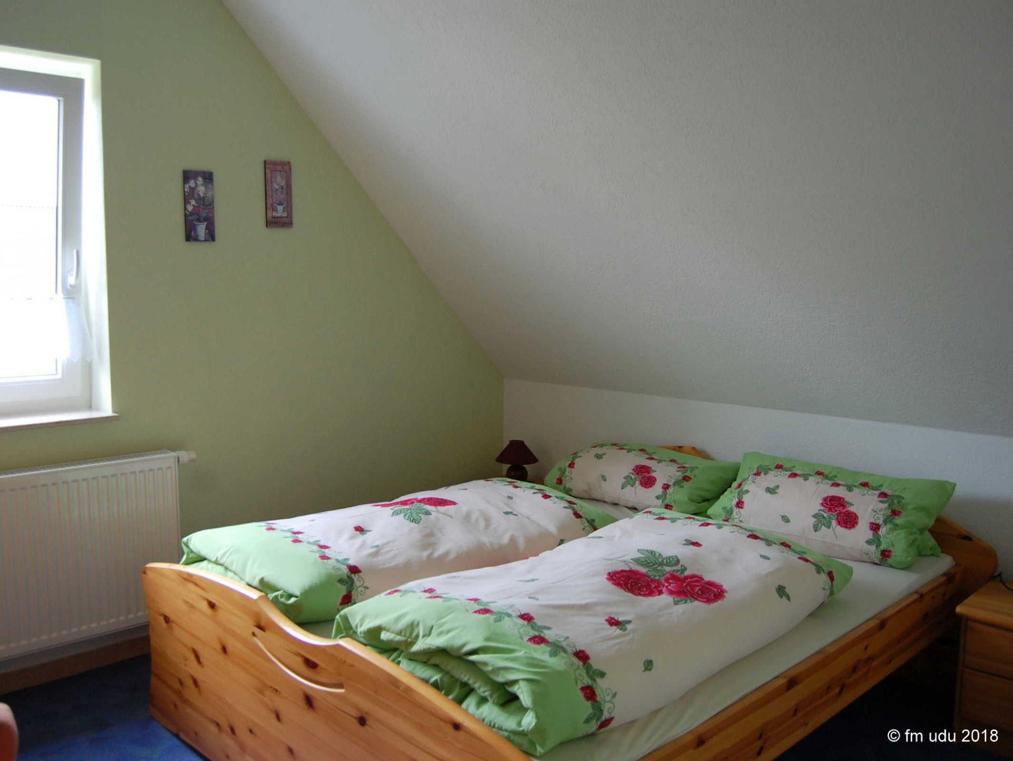 Die Wohnfläche des Ferienhauses beträgt ca. 105 m². Ebenerdig befinden sich der Flur, ein Wohnraum mit Sitzmöbeln, Flachbildschirm-TV, Radio, eine offene Küchenzeile, komplett ausgestattet mit zum Beispiel E-Herd, Backofen, Mikrowelle und Geschirrspüler, ein Schlafzimmer mit Doppelbett und ein kleines Bad mit Dusche und WC.
