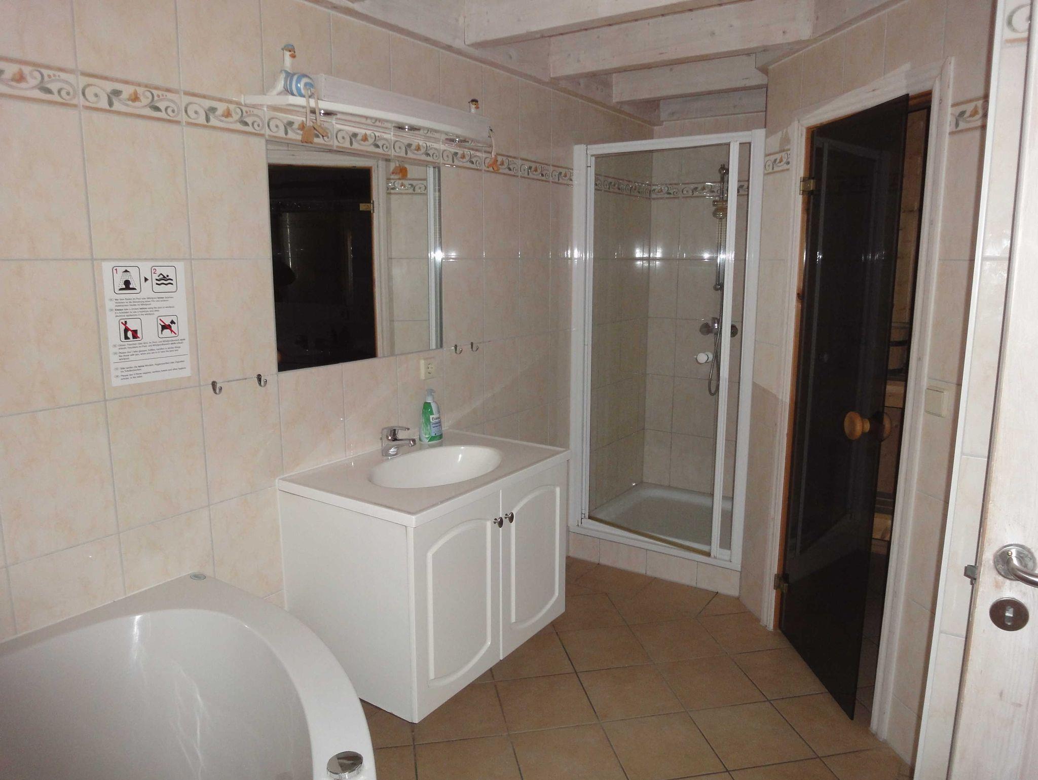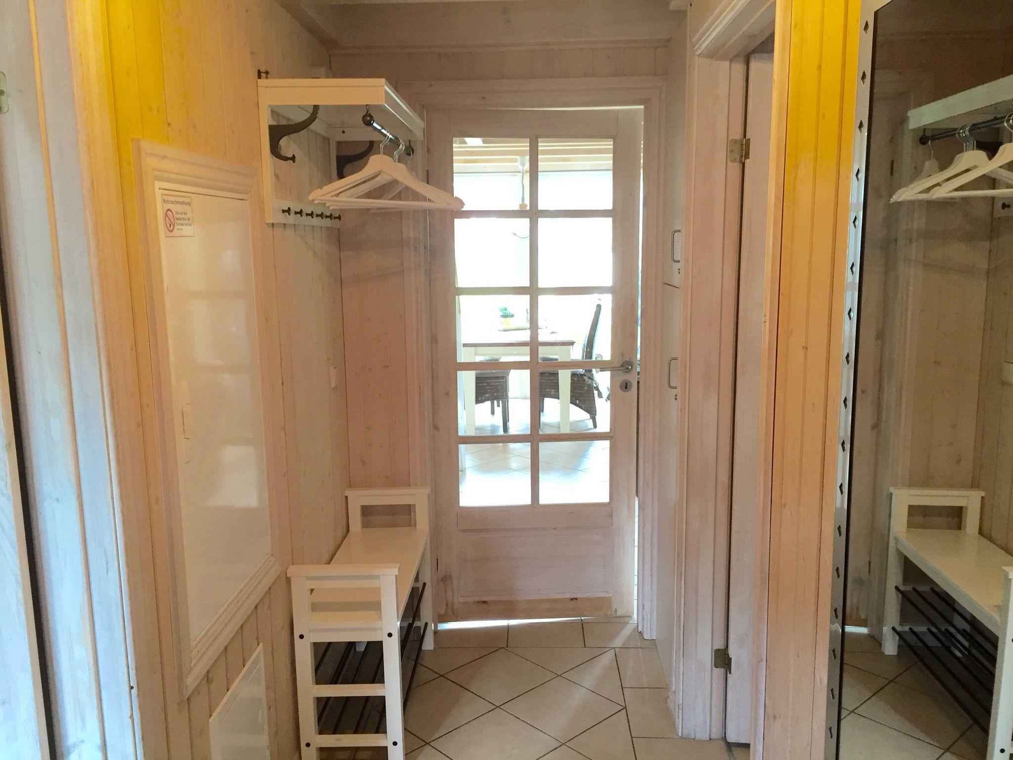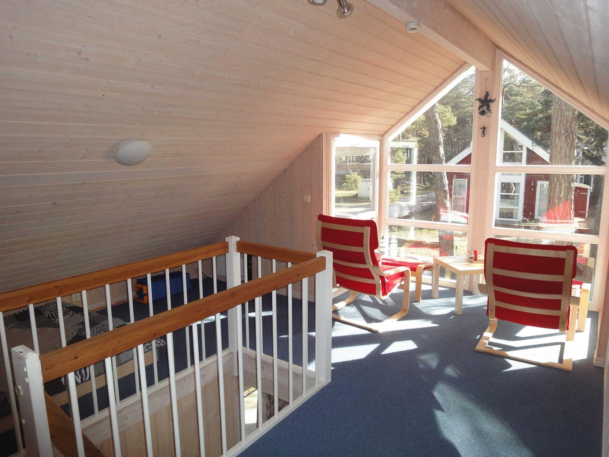 Im Erdgeschoss befinden sich Flur, Wohn/Esszimmer mit Kaminofen, voll ausgestattete Küche, erstes Schlafzimmer mit Doppelbett und ein großes Bad mit WC, Waschplatz, Dusche, Badewanne, Sauna und Waschmaschine. Über eine Treppe gelangen Sie auf die Galerie und in das zweite Schlafzimmer, welches mit zwei Einzelbetten und einem Kinderbett ausgestattet ist. Die Sitzecke auf der Galerie lädt zum Verweilen ein, genießen Sie den Blick auf die Ostsee.