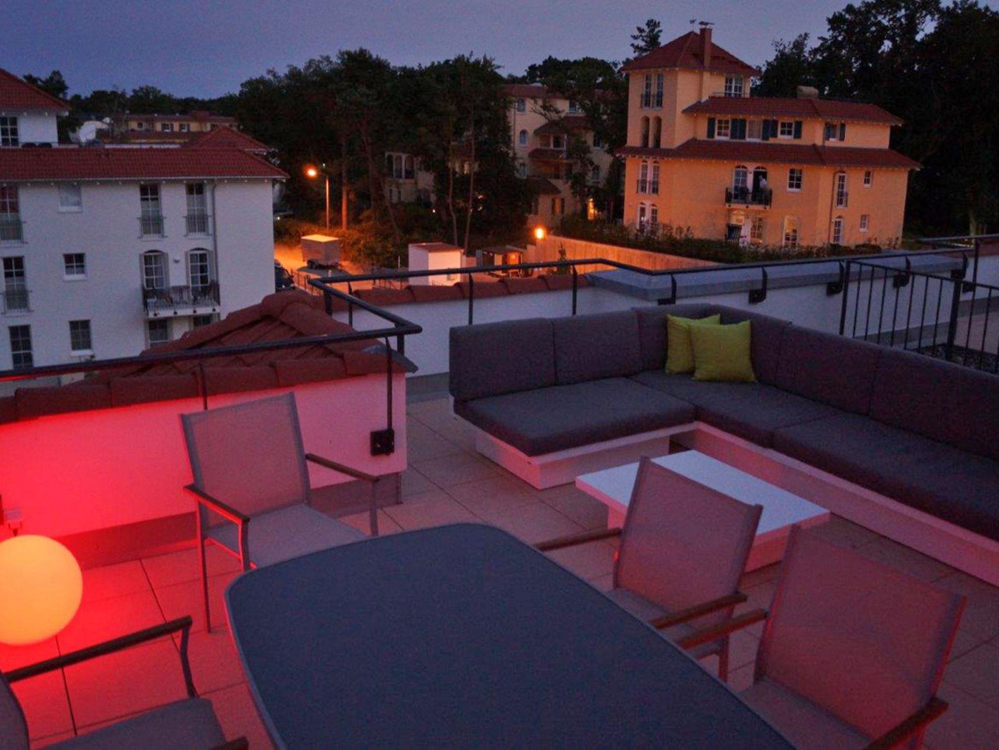 Viel Platz, viel Licht und beste Ausstattung: Kommen Sie zu zweit in die 75-Qudratmeter-Wohnung oder bringen Sie einfach zwei weitere Personen mit in die Nichtraucher-Unterkunft mit 25-Quadratmeter-Dachterrasse - daher der Name Sternenhimmel, denn das 3-Zimmer-Appartement liegt in der 3. Etage. Es ist bequem mit dem Fahrstuhl zu erreichen. Die mit Sonnenschirm und 6 Sitzplätzen ausgestattete Terrasse belohnt Sie mit Meerblick. Alternativ können Sie dort die Aussicht vom Loungebereich aus genießen.