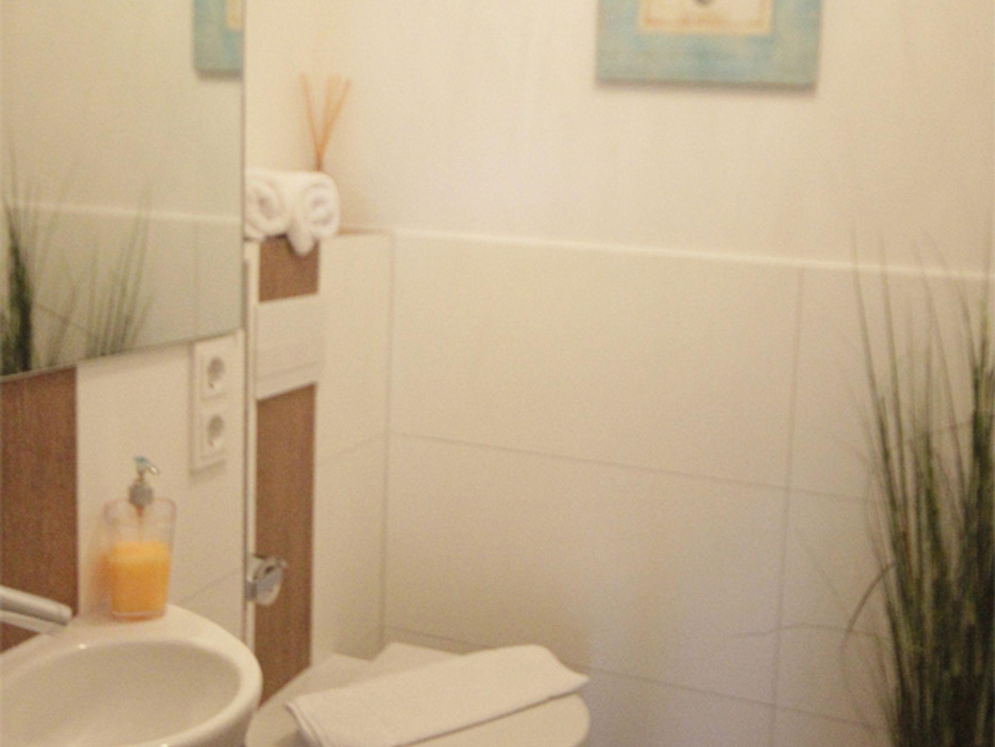 Im Bad mit begehbarer Dusche steht eine Waschmaschine für Sie bereit. Zusätzlich verfügt die Wohnung über ein Gäste-WC.