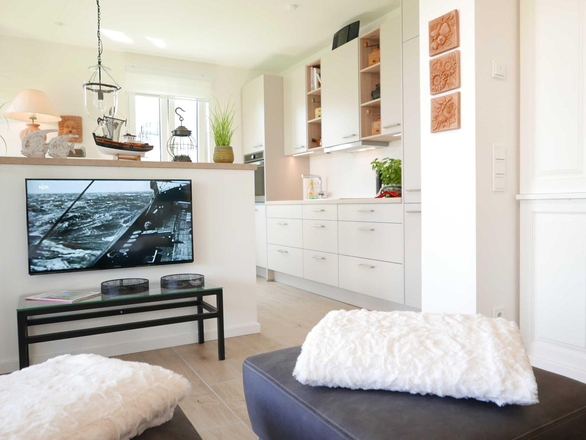 Helle freundliche 2 Zimmer Ferienwohnung mit einer eigenen Sauna in der Wohnung und einer schönen möblierten Terrasse, von der man das Meer rauschen hören kann. Eine wunderschöne Lage. Die Wohnung ist stilvoll eingerichtet mit bodentiefen Fenstern und Fußbodenheizung - die Küche bietet alles was man braucht inkl. Geschirrspülmaschine und vielen mehr.