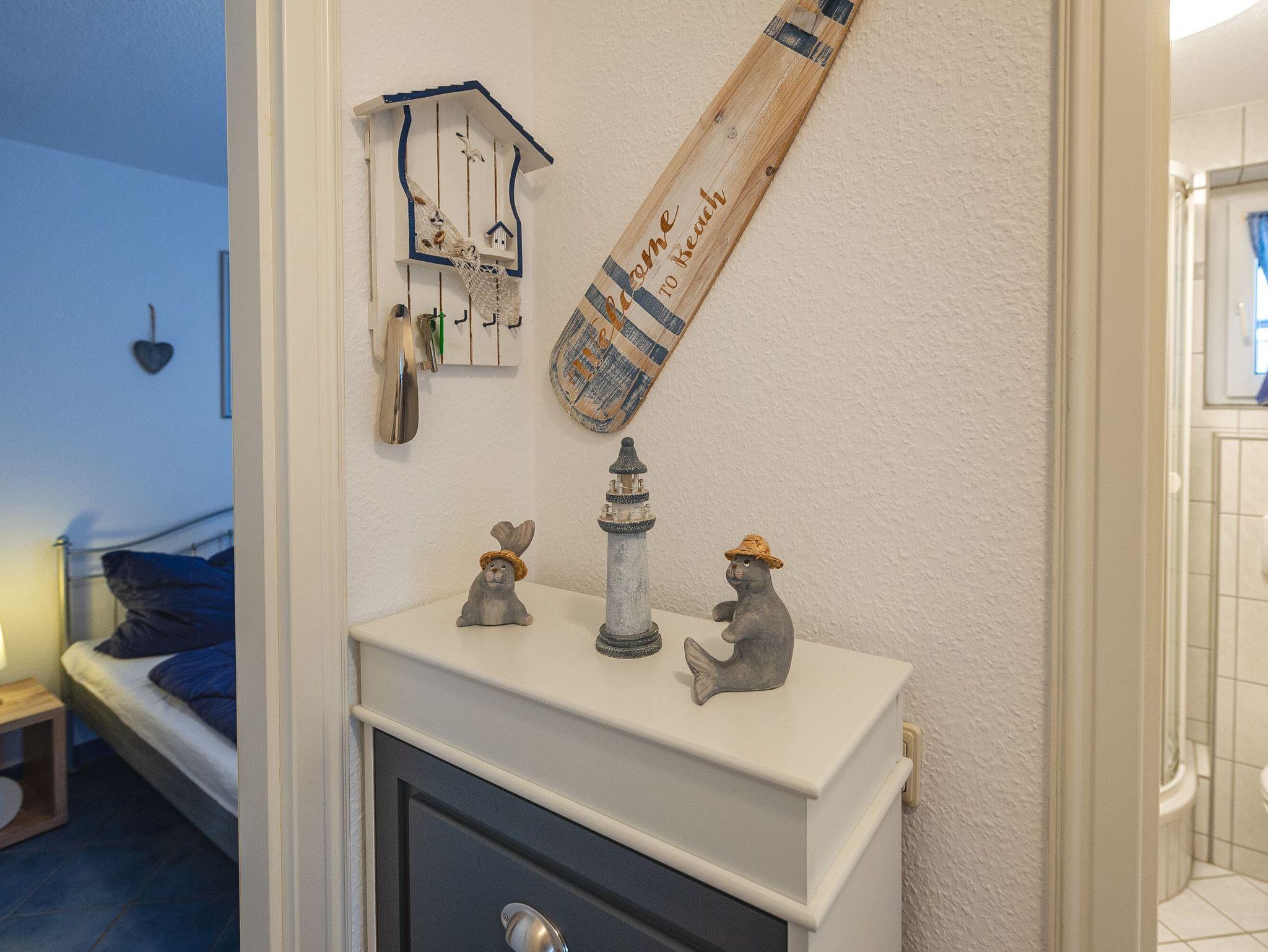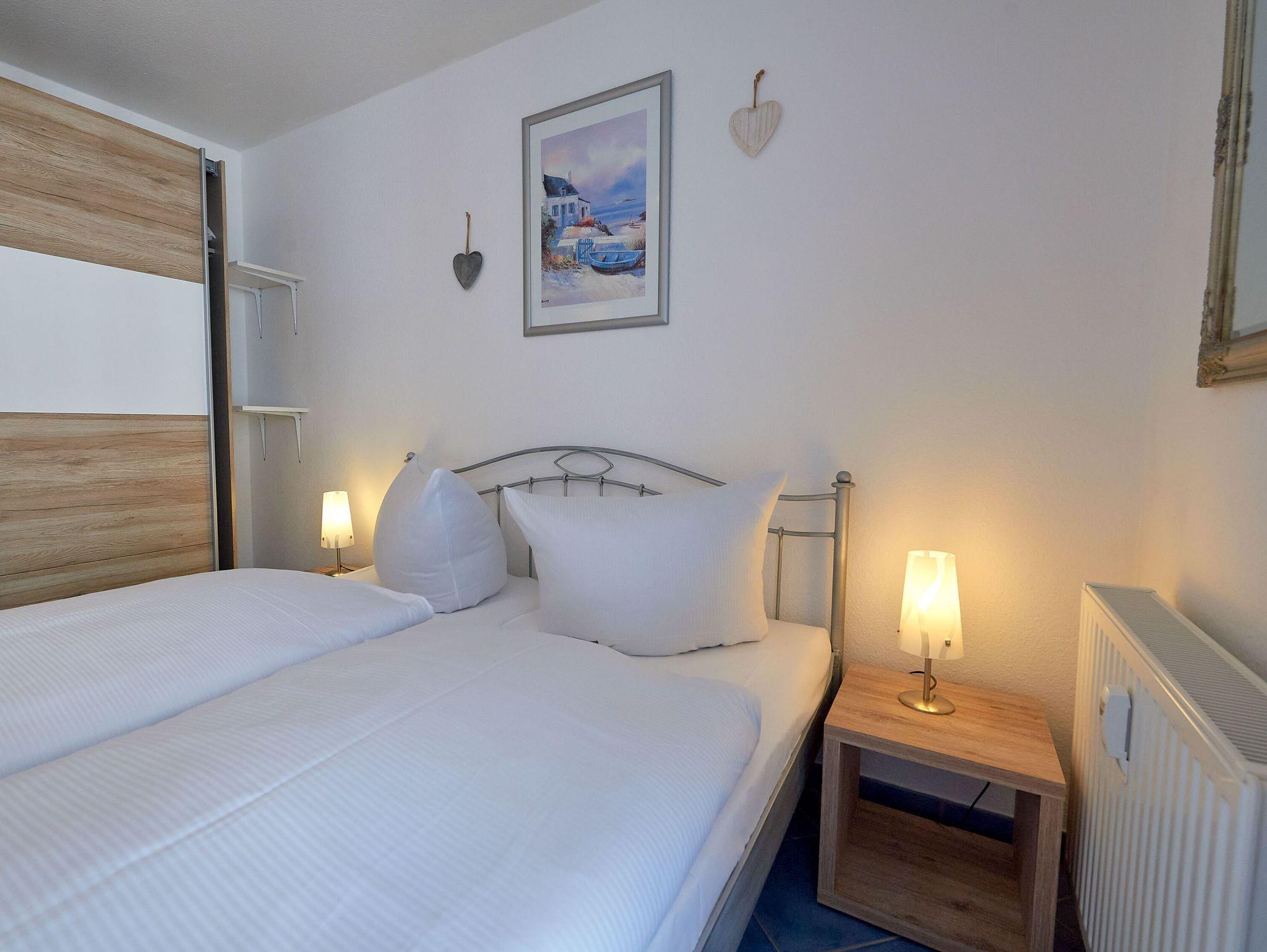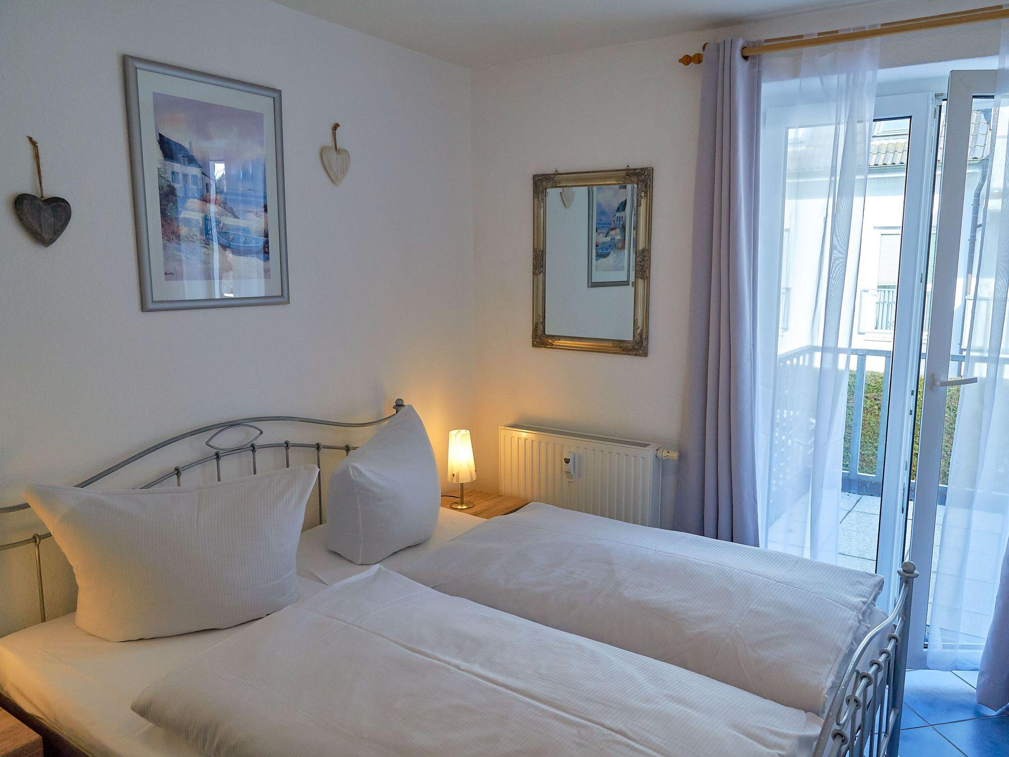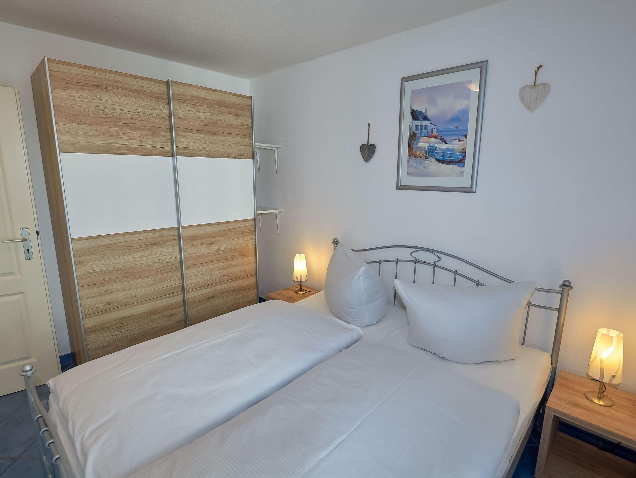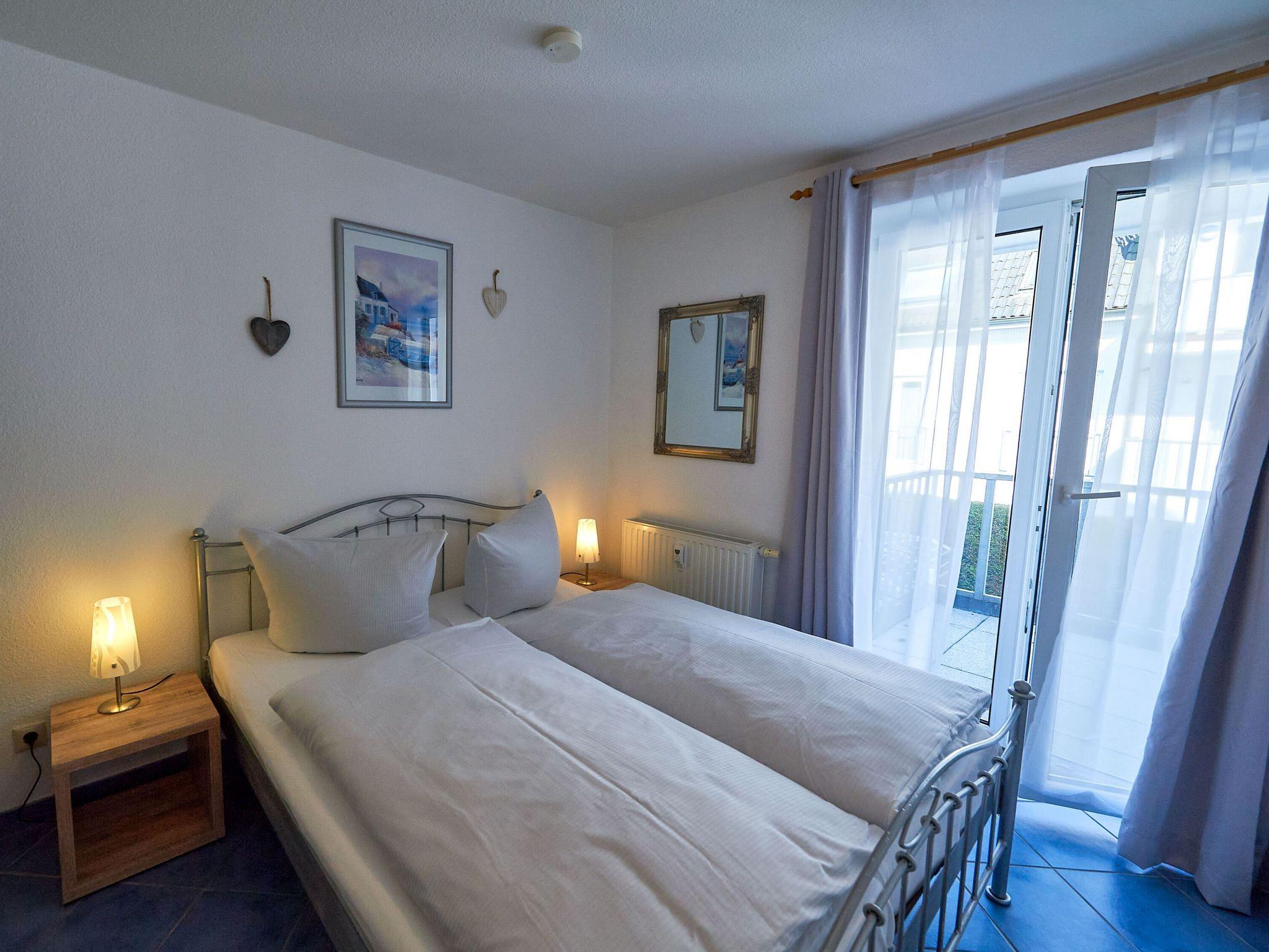 Der rund 13 qm große Balkon Ihres Urlaubsdomizils ist sowohl vom Wohn- als auch vom Schlafzimmer aus zu betreten. Er ist mit mit einer Sitz- bzw. Essgruppe und einem Korbschaukelsessel ausgestattet. Das Schlafzimmer verfügt über ein bequemes Doppelbett und einen geräumigen Kleiderschrank für Ihre Urlaubsgarderobe.