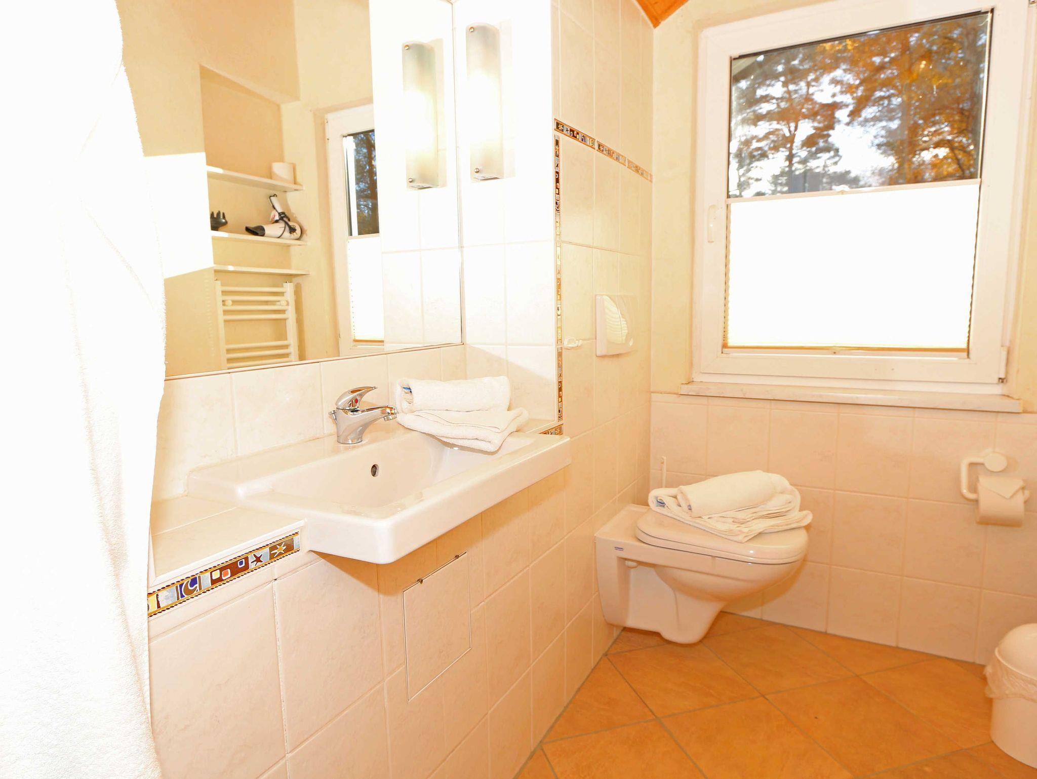 Herzlich Willkommen in unserem Strandhaus im schönen Ostseebad Baabe auf Rügen! Unser 70 m² großes alleinstehendes Standhaus im Schwedenstil (Nichtraucher, 2 bis 6 Erwachsene + 1 Kleinkind bis 3 Jahre im Kinderreisebett) liegt sehr nah am Strand, direkt im Dünenwald von Baabe. Das Holzhaus ist gemütlich mit viel hellem Naturholz eingerichtet und gleichzeitig modern, komfortabel und voll ausgestattet. Dazu zählen wir sowohl die moderne Komfortküche mit Ceran-Herd, Backofen, Mikrowelle, Geschirrspüler, Kühlschrank mit Eisfach, Getränkekühlschrank, Kaffeemaschine, Wasserkocher, Toaster, Reinigungsutensilien und mehr als auch den Wohnkomfort einer Fußbodenheizung, der LCD-Fernseher in HD-Qualität, Satelliten-Anschluss für hohe Programmvielfalt und ein DVD-Player mit Radio. Ein gemütlicher großer Wohnbereich und Kamin (Kaminholz inklusive) mit Sichtfenster rundet unsere Einrichtung ab. Und damit Sie Ihren Urlaub bei uns ganz entspannt genießen können, sind alle Kosten für Strom, Wasser und Heizung sowie das WLAN bereits im Preis inklusive! Das Haus verfügt über insgesamt drei Schlafzimmer im Obergeschoss. Zwei Schlafzimmer sind mit Doppelbett (2 x Boxspringbetten je 0,80 m x 2,00 m zusammengestellt) und Kleiderschrank ausgestattet und bieten ausreichend Platz für 1 zusätzliches Kinderreisebett (inklusive Matratze). Das dritte Schlafzimmer verfügt über zwei Boxspringbetten (je 0,80 m x 2,00 m) ? die man auch zusammenstellen kann und Kleiderschrank Im Erd- sowie im Obergeschoss befinden sich je ein Tageslicht-Bad mit großem Spiegel, WC, Dusche und Haartrockner. Am Wohn-/ Essbereich schließt sich die überdachte Terrasse (Süd/Ost) mit Tisch, Stühlen und Gartengrill an. Von dort blicken Sie direkt zur Düne, hinter der sich der weiße Sandstrand anschließt. Ein Waschhaus mit Waschmaschine steht Ihnen zur Nutzung (inklusive) zur Verfügung. Ein eigener PKW-Stellplatz Nr. 17b gehört zum Strandhaus. Haben Sie ein Haustier, das Sie mitbringen möchten? Gerne ist dies gegen eine Gebühr möglich. In unserem Backshop selbst erhalten Sie In der Saison täglich frisch: Brötchen, Lebensmittel, Tageszeitungen, Frühstück, Kaffee & Kuchen und mehr (Schließzeiten immer vom 07.01. - 1 Woche vor Ostern). Die Erstausstattung eines Wäschepaketes (komplette Bettwäsche, 1 Duschhandtuch, 2 kleine Handtücher) können Sie bis 14 Tage vor Anreise gegen einen Aufpreis dazu buchen oder durch eigene ergänzen. Ab 2 gebuchten Paketen erhalten Sie einmalig 1 Geschirrhandtuch und 1 Duschvorleger hinzu. Wir freuen uns auf Ihren Besuch!