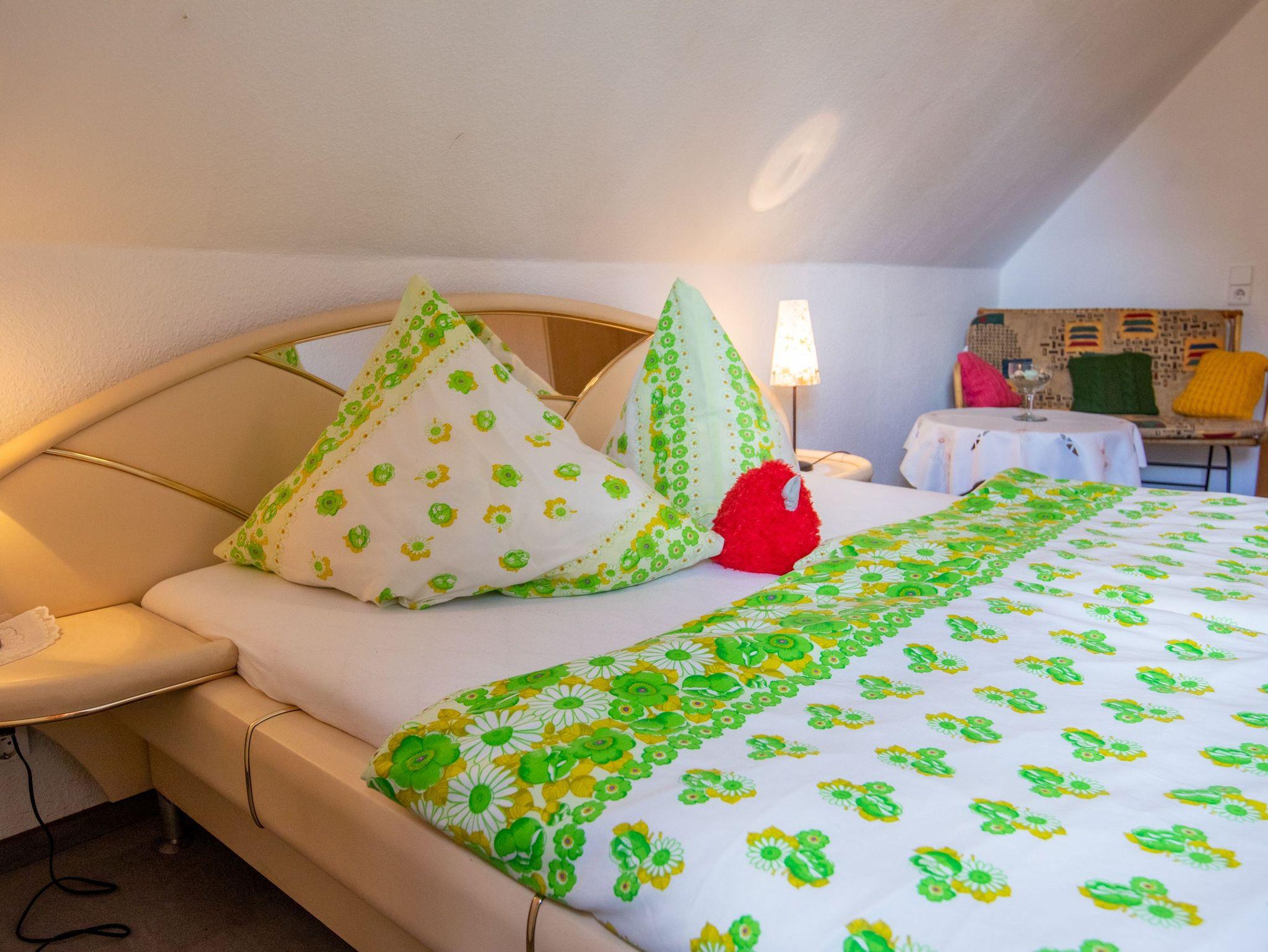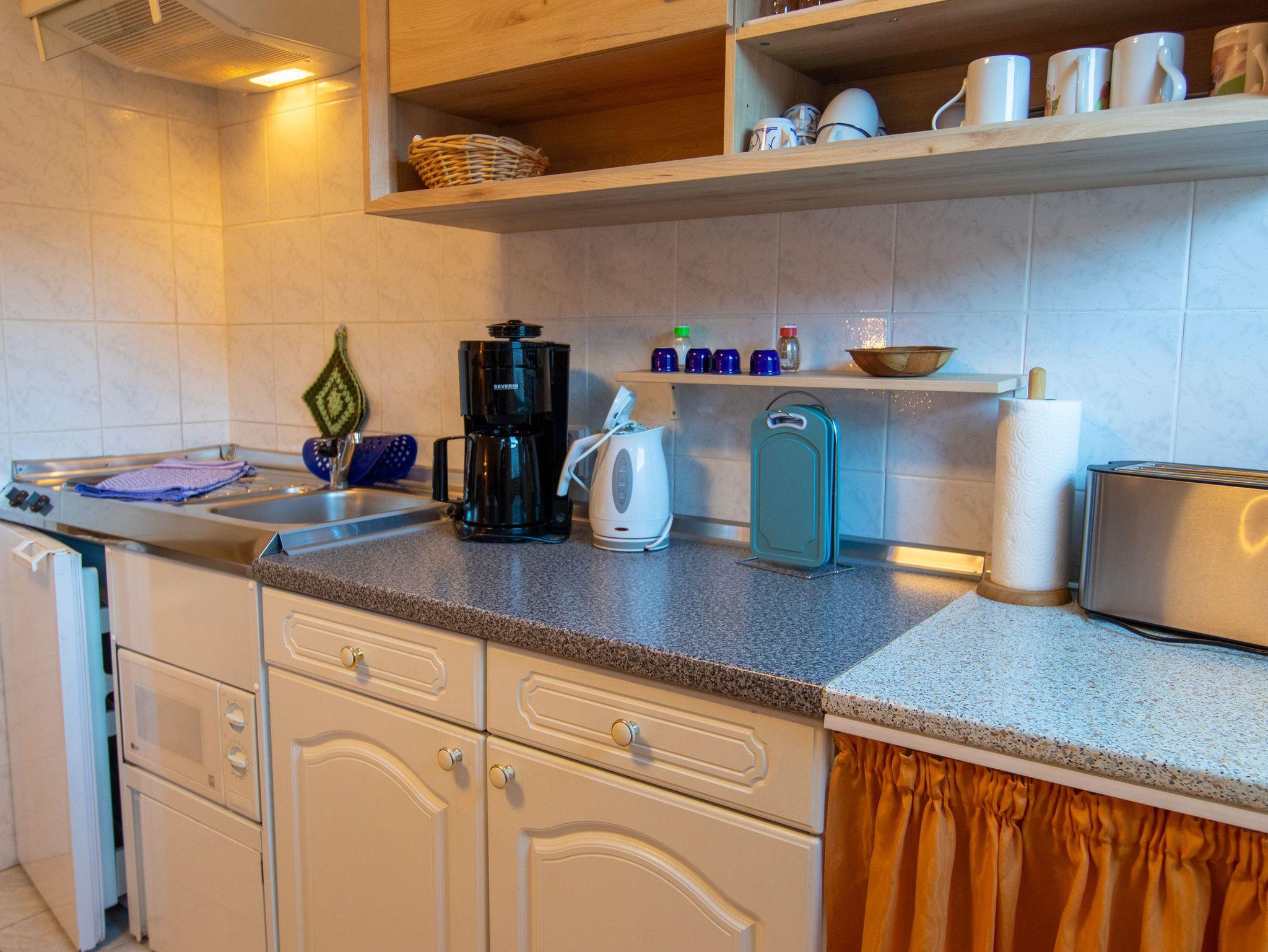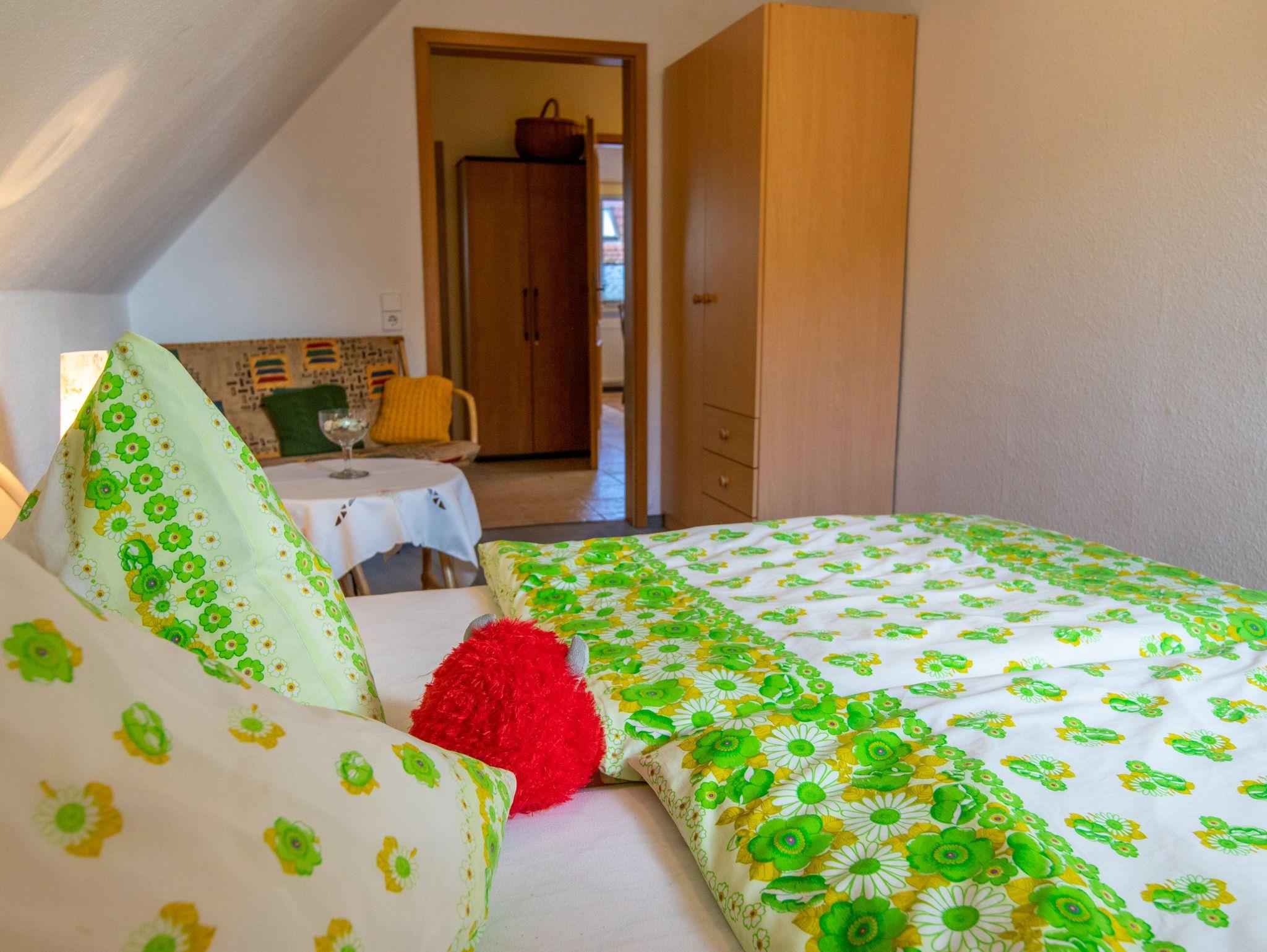 Die Ferienwohnung 2 im Haus Parchow im Ostseebad Baabe bietet bis zu 4 Personen Platz. Sie befindet sich im Dachgeschoss des Hauses der Vermieter und ist über eine separate Außentreppe zu erreichen. Auf 70 m² Wohnfläche verfügt die Ferienwohnung über 2 Schlafzimmer mit Doppelbetten (180x200) und eine offene Wohn-Küche mit Essbereich, Sofa und TV. Die Küchenzeile bietet den Gästen eine Kühlschrank mit Gefrierfach, ein Kochfeld, einen Minibackofen, Mikrowelle, Wasserkocher, Toaster sowie Küchenhelfer und Geschirr für den täglichen Bedarf. Das kleine Tageslicht-Bad ist mit einer Dusche und WC ausgestattet.