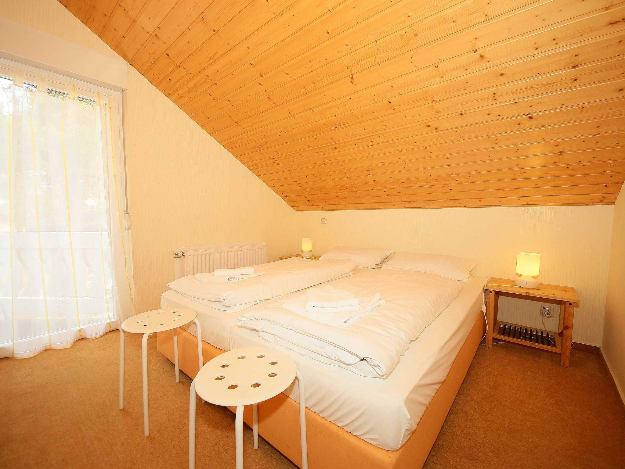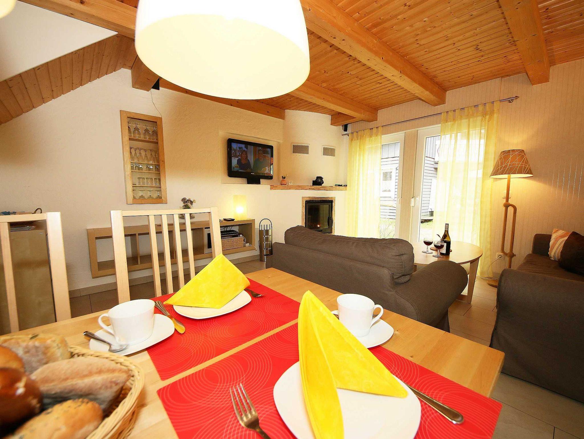 Die Doppelhaushälfte (Nichtraucher) mit Ihren 55 m² Wohnfläche bietet ausreichend Platz für 4 Erw. + 1 Kleinkind bis 3 Jahre im Kinderreisebett. Die bodentiefen Fenster im Wohn-/Essbereich lassen viel Tageslicht herein und geben Ihnen den direkten Zugang zur überdachten und bestuhlten Terrasse (Süd-Ost). Abgerundet wird diese durch einen Grill. Der gemütlich, im Schwedenstil, eingerichtete Wohnbereich ist mit einer Couchecke, Couchtisch, LCD-TV mit HD-Qualität und Satellitenempfang, DVD-Player mit Radio und ein Sideboard aus Naturholz ausgestattet. Für die kühleren Tage bieten Ihnen der Kamin (Kaminholz inklusive) sowie die Fußbodenheizung eine angenehme Wärme. Ihre Unterhaltungstechnik wird durch einen kostenfreien WLAN-Zugang abgerundet. Die angrenzende Küchenzeile mit Backofen, Ceranfeld, Dunstabzug, Kühlschrank + Eisfach, Spülmaschine, Mikrowelle, Kaffeemaschine, Toaster, Wasserkocher und kleinen Küchenhelfern lässt keine Wünsche offen. Ihre Mahlzeiten nehmen Sie am dazugehörigen Esstisch mit 4 Stühlen ein. Im Obergeschoss befinden sich beide Schlafzimmer die jeweils mit 2 Boxspringbetten (je mit 0,80 m x 2,00 m), Nachtischablagen, Safe und einem Kleiderschrank ausgestattet sind. Von beiden Schlafzimmern gelangen Sie auf den Balkon. Zusätzlich können Sie ein Kinderreisebett in eines der Schlafzimmer aufstellen. Das Tageslichtbad, was sich auf der gleichen Höhe befindet, wurde mit einer ebenerdigen Dusche, WC, Waschplatz, Handtuchtrockner und Fön ausgestattet. Für unsere kleinen Gäste steht Ihnen 1x Kinderhochstuhl und 1x Kinderreisebett (inkl. Matratze, ohne Bett Inlett) inklusive zur Verfügung. 2 kleine Haustiere sind gegen eine Gebühr gern gesehene Gäste. Eine kleine Waschküche steht Ihnen inklusive zur Verfügung. Die Erstausstattung eines Wäschepaketes (komplette Bettwäsche, 1 Duschhandtuch, 2 kleine Handtücher) können Sie bis 14 Tage vor Anreise gegen einen Aufpreis dazu buchen oder durch eigene ergänzen. Ab 2 gebuchten Paketen erhalten Sie einmalig 1 Geschirrhandtuch und 1 Duschvorleger hinzu.