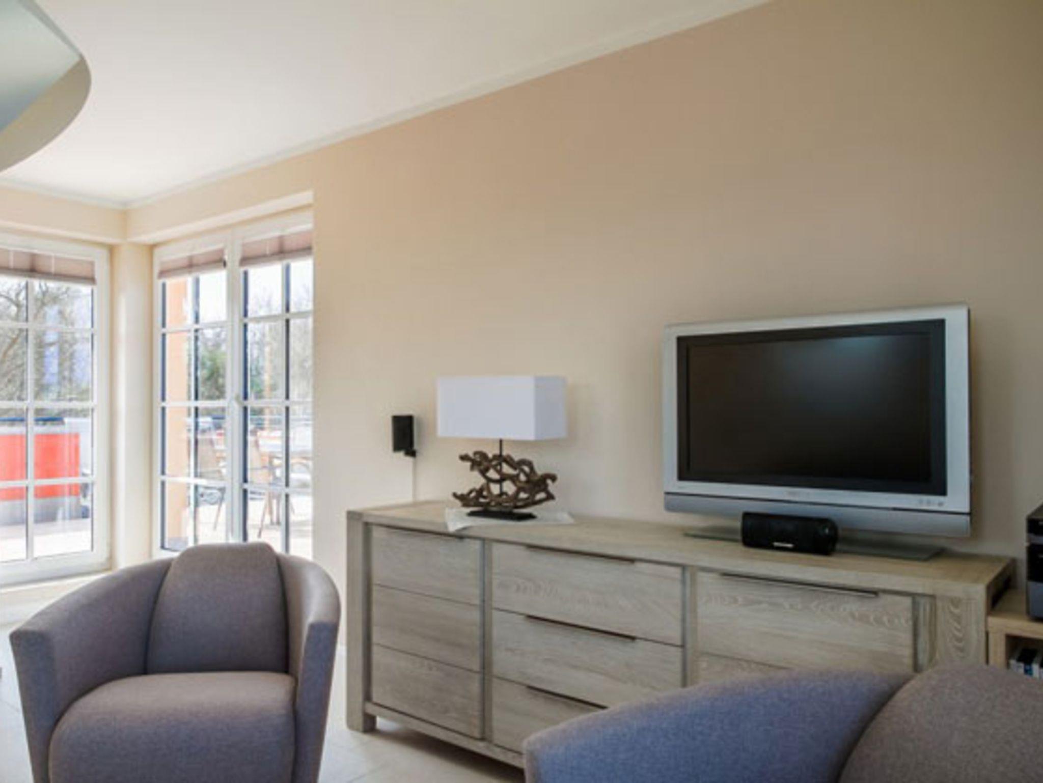 Das Wohnzimmer ist für die maximale Zahl an Gästen eingerichtet und ausgestattet mit Radio, TV und CD-Player. Hinzu kommt ein HiFi-System mit iPod-Schnittstelle und WLAN.