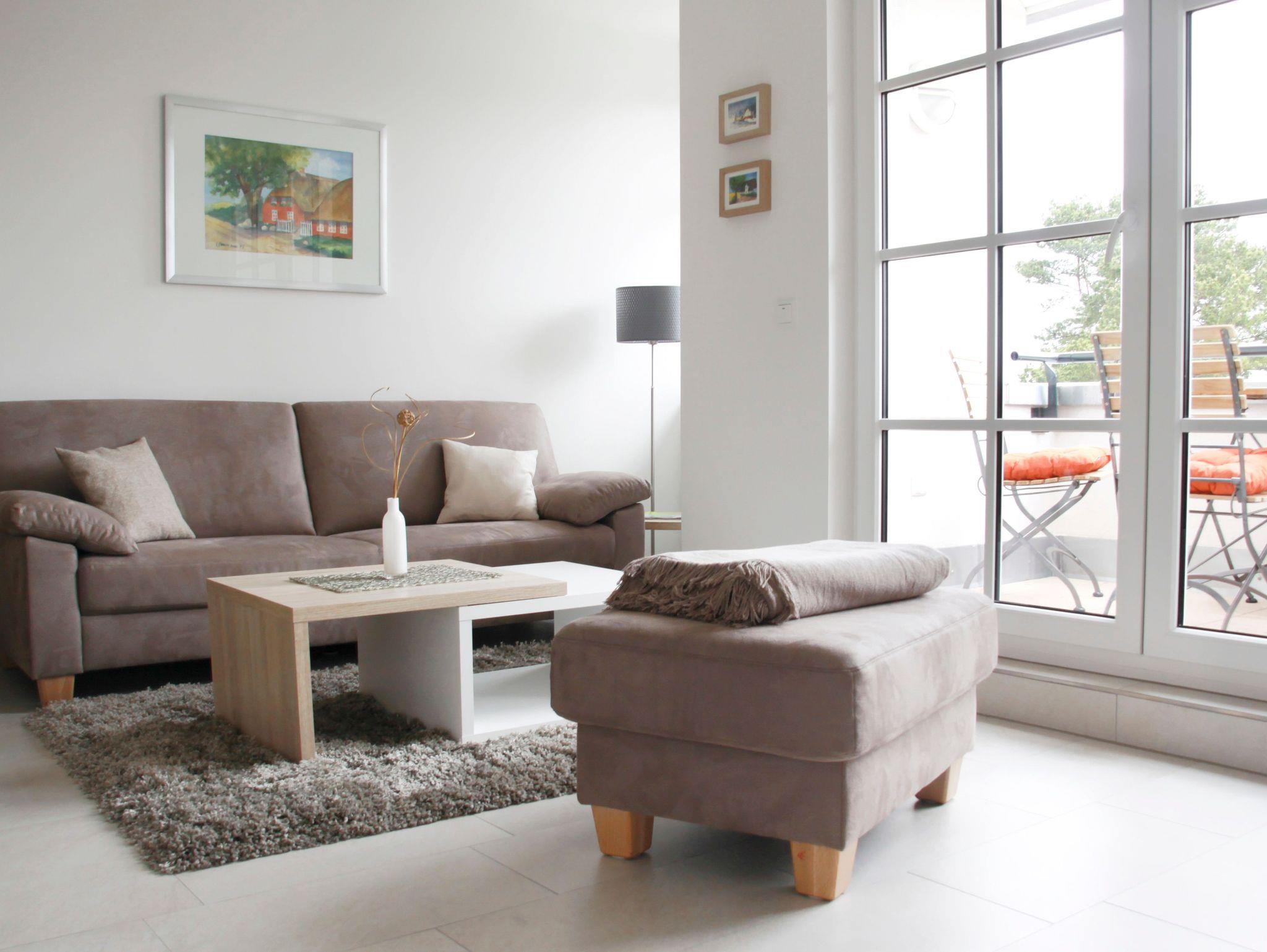Diese 3-Zimmer-Ferienwohnung mit Balkon und Meerblick hat ca. 52 m ² Wohnfläche und liegt in der dritten Etage zur Meerseite hin. Aus Sicherheitsgründen haben alle Fenster und die Balkontür eine Kindersicherung. Genießen Sie den Blick bis zum Meer schon beim Frühstücken auf dem Balkon.