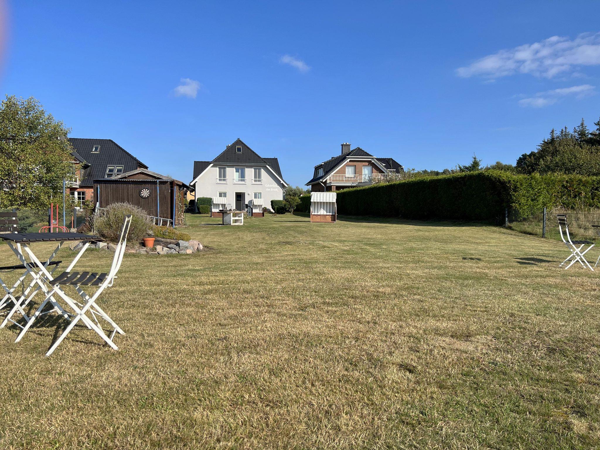 Das Gästehaus Am Brook ist ein inhabergeführtes, familien- & hundefreundliches Ferienhaus im Ostseebad Baabe. Es zeichnet sich besonders durch seine wunderschöne und ruhige Lage mit Weitblick aus, mit einem Weitblick auf den Hafen des Bollwerkes, den Selliner See und das Schloss Granitz. Das Gästehaus Am Brook besteht insgesamt aus fünf modern und liebevoll im skandinavischen Stil ausgestatteten Ferienwohnungen. Im Erdgeschoss befinden sich die Wohnungen 'Haubentaucher' und 'Hühnergott', die über einen kleinen, eigenen Gartenabschnitt mit Terrasse verfügen und ideal für 2 Personen sind. Im Obergeschoss finden Sie die Maisonette-Wohnungen 'Kranichloft' und 'Fährmanns Ausblick', die perfekt für Familien geeignet sind, da sie über zwei Schlafbereiche verfügen und die Wohnung Schwalbennest. In allen Wohnungen des Gästehauses können die Mieter den großen, eingezäunten und gepflegten Gemeinschaftsgarten von 2500 Quadratmetern nutzen. Der Garten ist mit Sitzgelegenheiten, einem Grillplatz und Strandkörben ausgestattet (verfügbar von April bis Oktober). Dazu finden Sie zusätzlich ein Dartboard und Boccia Kugeln vor. Das Gästehaus Am Brook ist der ideale Ausgangspunkt für einen ruhigen und entspannten Urlaub und dennoch in der Nähe aller Höhepunkte. Der Hafen von Baabe ist nur ca. 300 Meter entfernt und bietet diverse Schiffsausflüge. Der beliebte Rasende Roland ist immer zu hören und auch der Bahnhof ist zu Fuß erreichbar. In nur ca. 20 Gehminuten können Sie zum Hauptstrand von Baabe laufen oder Sie nutzen ganz einfach die Lütt Bahn, die kostenfrei und regelmäßig zum Strand und in den Ortskern fährt und nur ca. 100 Meter entfernt ist. Außerdem befindet sich nur ca. 100 Meter entfernt ein spannender Kinderspielplatz. Gönnen Sie sich eine Auszeit bei klarer und frischer Luft in Ihrem neuen Ankerplatz auf Rügen ? dem Gästehaus Am Brook.
