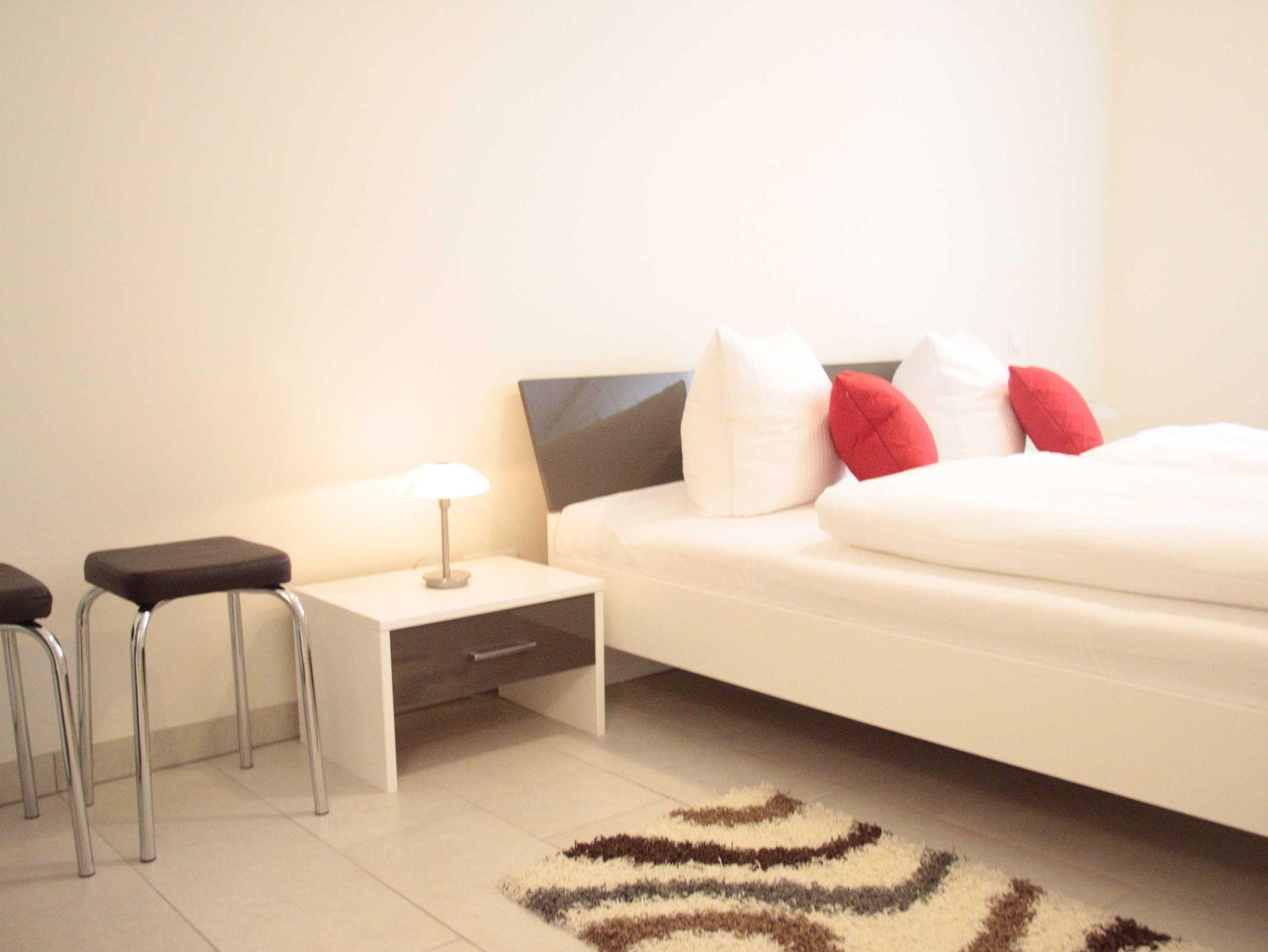 Im Schlafzimmer befindet sich ein großes Doppelbett (1,80 x 2,00 Meter) und ein geräumiger Kleiderschrank.