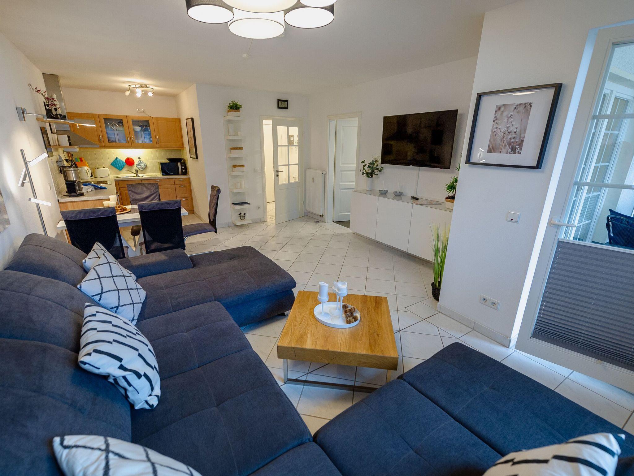 Der möblierte Balkon ist vom Wohn- und Schlafzimmer aus zu betreten. Hier können Sie in der gesunden Ostseeluft frühstücken, einfach die Seele baumeln und den Tag Revue passieren lassen.