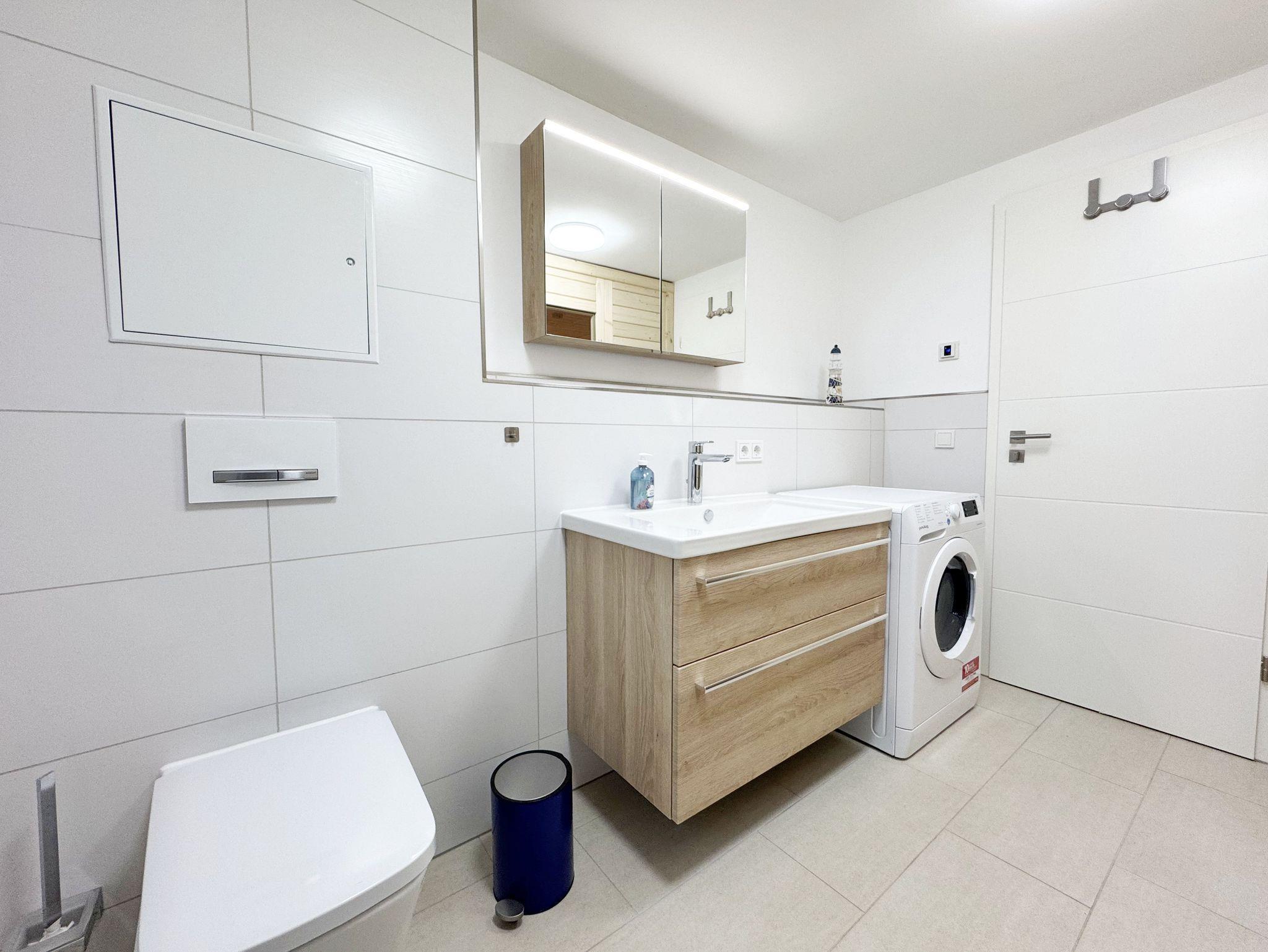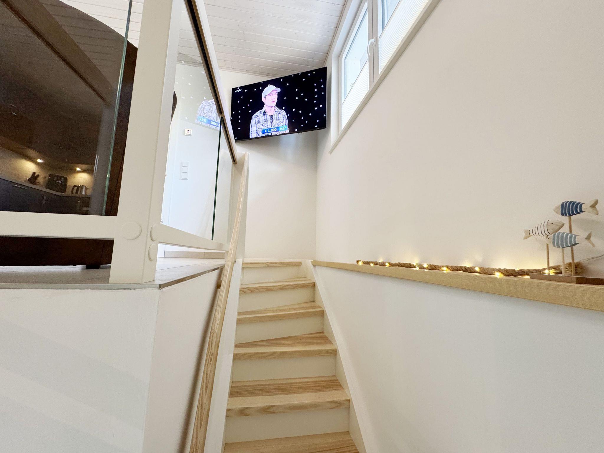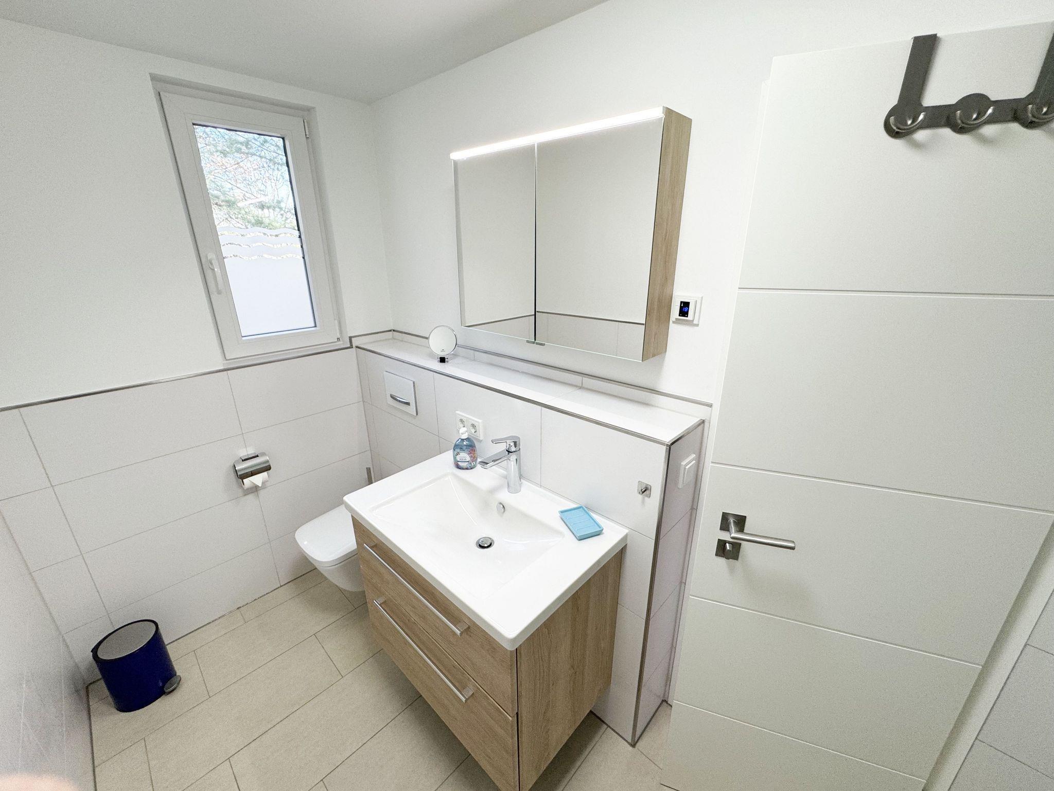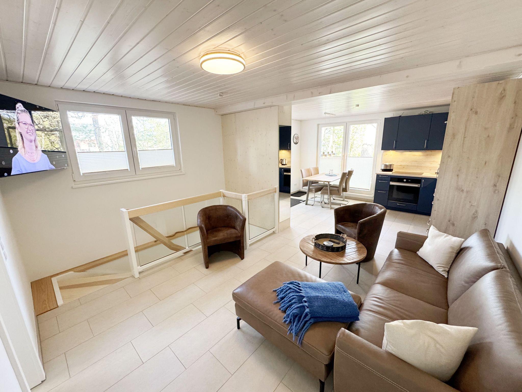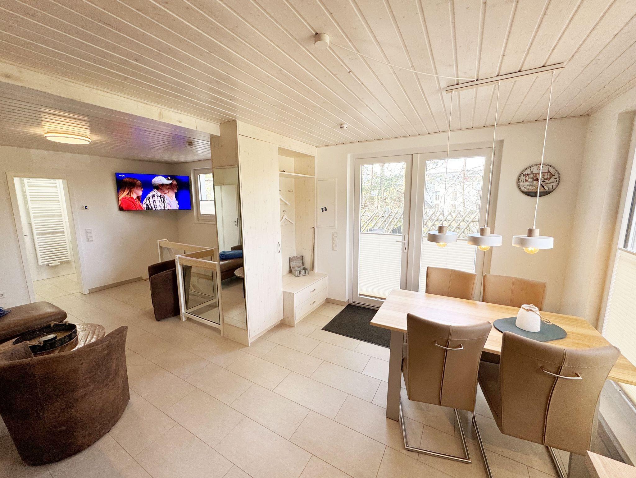 Die komfortable harmonisch eingerichtete DHH Nr. 2 im Haus Düne besticht mit einer durchdachten Raumaufteilung. Auf ca. 70 qm ist diese Nichtraucherwohnung mit viel Liebe zum Detail eingerichtet und bietet ausreichend Platz für bis zu 4 Erwachsene + 1 Kleinkind bis 3 Jahre im Kinderreisebett. Über einen kleinen Absatz gelangen sie in den sehr hellen, mit bodentiefen Fenstern versehenden, Wohn-Essbereich mit Garderobe. Die hochwertige Einbauküchenzeile ist das Herzstück der oberen Etage, welche mit einem Geschirrspüler, einem Kühlschrank mit Eisfach, einen Backofen, ein 4 Zonen Cerankochfeld, einer Mikrowelle, einer Kaffeemaschine, einem Kaffeevollautomat, einem Toaster, einem Wasserkocher, einem Mixer und diversen Küchenutensilien bestückt ist. Ein moderner Esstisch rundet diesen Bereich ab. Der helle Wohnbereich ist mit einer gemütlichen Couch, einem Couchtisch, einer Stehlampe und einer Anrichte mit Smart-TV und WLAN-Zugang bestückt. Durch die bodentiefen Fensterfronten beim Essplatz, die den Raum bestimmen, haben Sie einen weitläufigen Blick auf die Ostsee. So können Sie in absoluter Ruhe den Ausblick genießen. Gesellschaftsspiele und eine kleine Auswahl an Urlaubslektüre lassen Sie auch mal auf andere Gedanken bringen. Von hier gelangen Sie auch auf Ihre bestuhlte Terrasse (Süd/Ost) mit Sonnenliegen und Sonnenschirm. Auf gleicher Ebene aber durch 2 Stufen erreichbar, befindet sich das 1. Schlafzimmer mit 2 Einzelbetten (á 0,90m x 2,00m), verstellbare Lattenroste, Nachttischablagen sowie einem Kleiderschrank mit Safe, Insektenschutzgitter und Verdunklungsmöglichkeiten. Auch eines von 2 Bädern begehen Sie vom Wohnbereich. Das Tageslichtbad ist mit einer ebenerdigen Regen-Dusche und einer Echt-Glasabtrennung, einem WC, einem Waschplatz, einem Fön, einen Kosmetikspiegel, und einem Handtuchtrockner ausgestattet. Ein weiteres Schlafzimmer sowie ein weiteres Bad befinden sich in der unteren Etage, welche Sie durch eine Treppe im Wohnbereich erreichen. Das 2. Schlafzimmer verfügt über ein Doppelbett (1,80m x 2,00m), verstellbare Lattenroste, Nachttischablagen, einen Kleiderschrank, Insektenschutzgitter sowie Verdunklungsmöglichkeiten. Das 2. Tageslichtbad verfügt über eine ebenerdige Dusche, ein WC, einem Waschplatz, einer Waschmaschine mit Trocknerfunktion sowie das Highlight des Hauses eine Sauna, die Ihnen an kalten Tagen nach dem Spaziergang eine wohlige Wärme gibt. Für ein komfortables Ambiente sorgen zudem hochwertige Fliesen sowie eine Fußbodenheizung. Ein Wäscheständer, ein Bügeleisen, ein Bügelbrett, ein Staubsauger sowie Reinigungsutensilien sind zusätzliche Ausstattungsmerkmale. Haustiere sind nicht erlaubt. Das großzügige Grundstück, welches naturbelassen gestaltet wurde, lädt zu einer Runde Badminton oder auch diversen Ballspielen ein. Ihre mitgebrachten oder geliehenen Fahrräder können Sie im Gemeinschaftsschuppen einschließen. Ein PKW-Stellplatz befindet sich direkt auf dem Grundstück. Die Erstausstattung eines Wäschepaketes (komplette Bettwäsche, 1 Duschhandtuch, 2 kleine Handtücher) können Sie bis 14 Tage vor der Anreise gegen einen Aufpreis dazu buchen oder durch eigenes Ergänzen. Ab 2 gebuchten Paketen erhalten Sie einmalig 1 Geschirrtuch und einen Duschvorleger dazu.