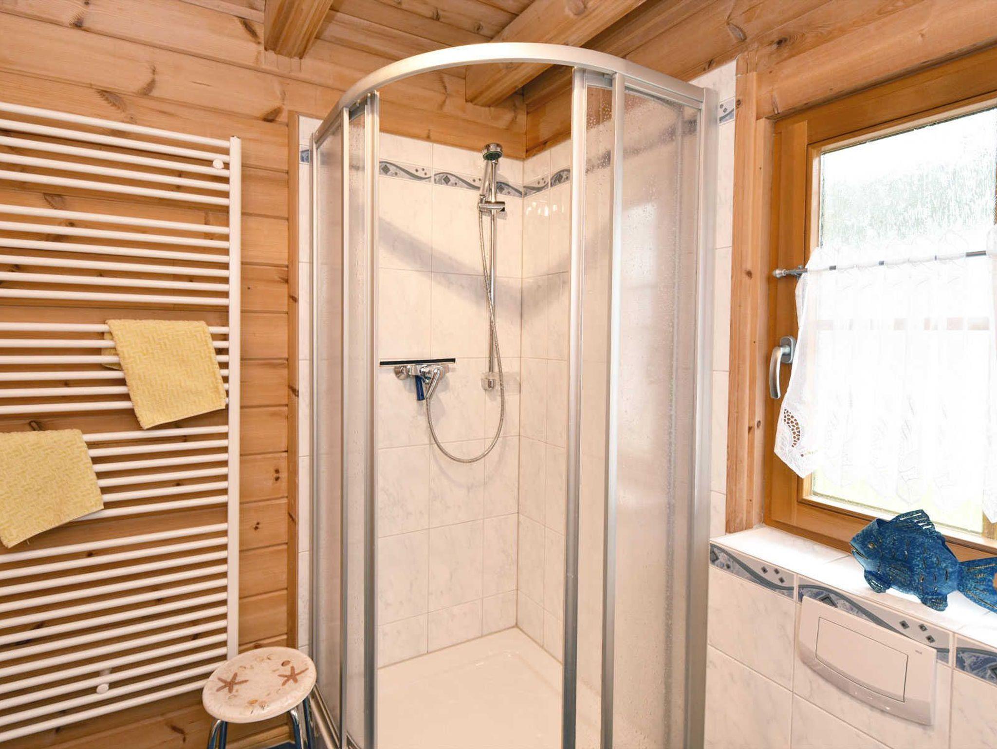 Das Strand- und Waldhaus Ostseeperle hat im Erdgeschoss einen kleinen Flur, ein Bad mit Dusche Waschplatz WC,