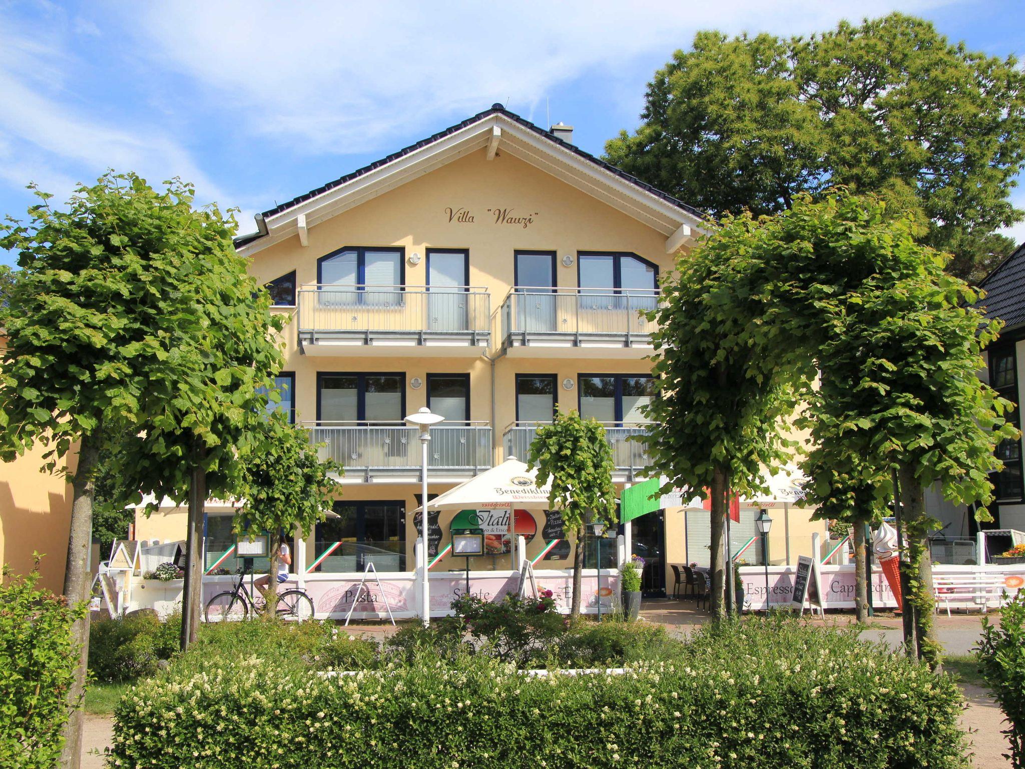 Die 2003 erbaute 4 Sterne Superior „Villa Wauzi“ (DEHOGA Klassifizierung) verspricht Barrierefreiheit für Rollstuhlfahrer nach DIN 18024 und 18025. Zur Eröffnung wurde das Haus von „Barrierefreies Rostock e.V.“ und „Ohne Barriere e.V.“ geprüft und als rollstuhlgerecht eingestuft. Im Souterrain befinden sich Rollstuhlabstellplätze mit Batterieladestationen. Der Zugang zum Gebäude erfolgt durch eine elektrische Eingangstür (89x210cm), welche auch allen Gästen ohne Handycap entgegen kommt, z.B. beim Transport von Kinderwagen, Strandausrüstung oder schweren Einkäufen. Zu den Wohnungen gelangt man über das Treppenhaus oder über den integrierten, behindertengerechten Aufzug.