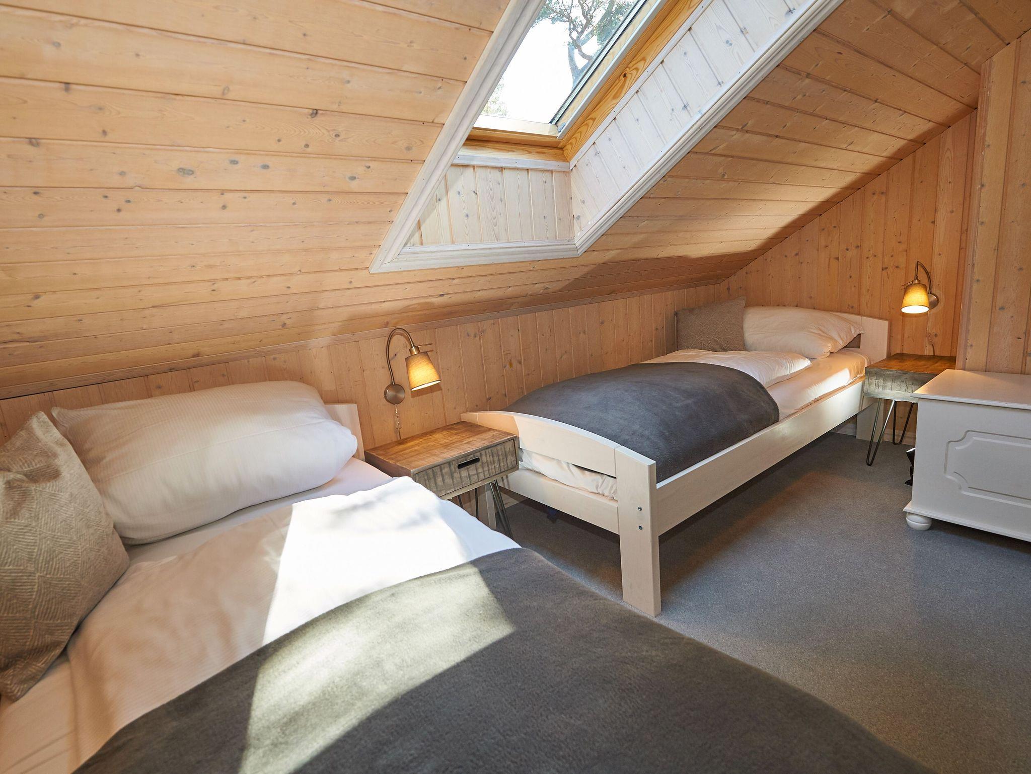Ein paar Stufen höher im Obergeschoss erwarten Sie unter gemütlichen Dachschrägen zwei weitere Schlafzimmer - das eine mit einem Doppelbett, das andere mit zwei Einzelbetten. Vom überdachten Balkon aus sehen Sie durch die duftenden Dünenkiefern hindurch die Ostsee verlockend glitzern. Nur ein paar Schritte durch das Dünenwäldchen, dann sind Sie am Meer - besser geht es kaum. Ein zweites Badezimmer mit Dusche/WC sowie auf der offenen Galerie eine gemütliche Schlafcouch (Aufbettungsmöglichkeit für zwei Personen) runden diese Etage ab.