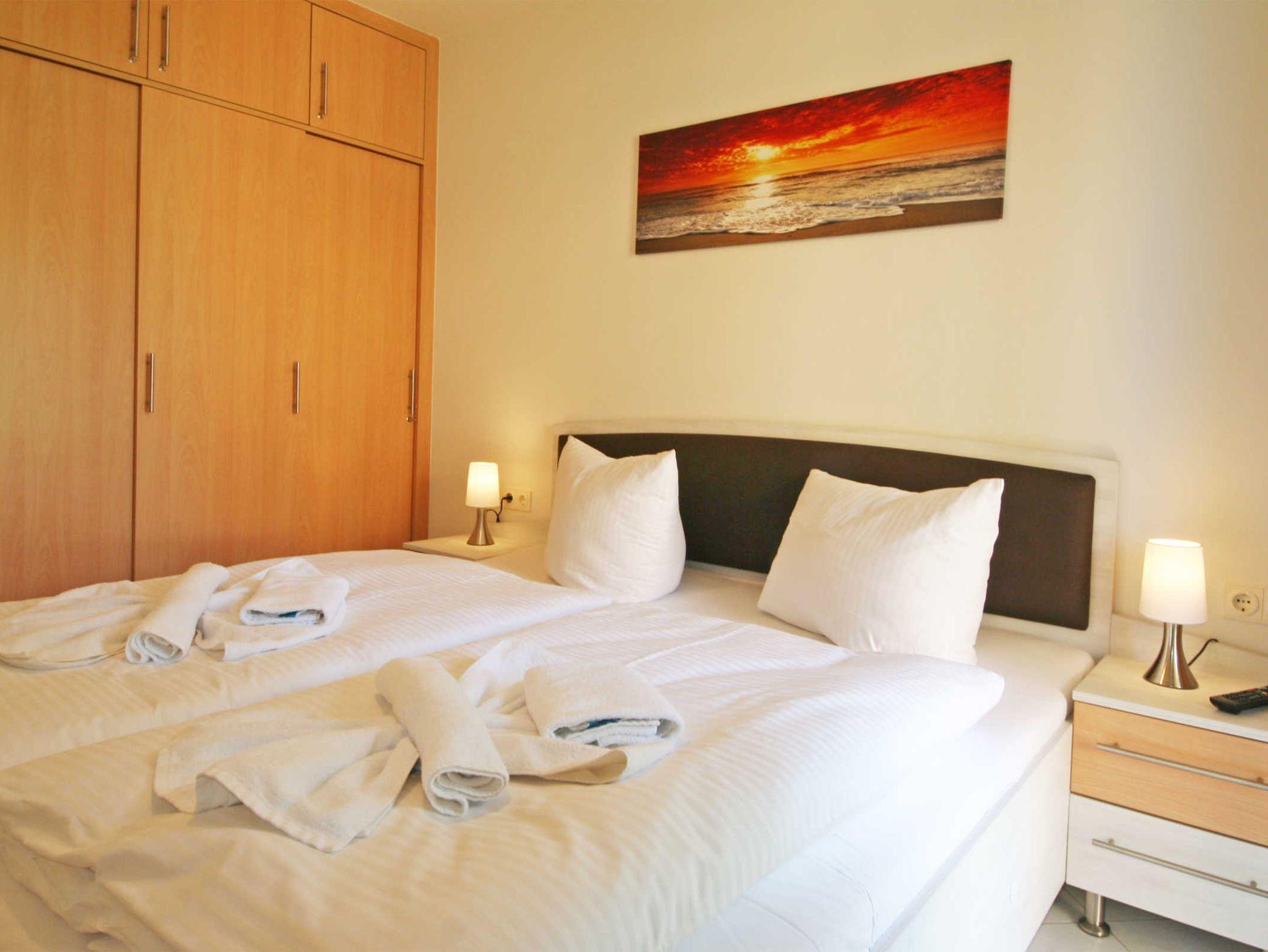 Wunderbar helle 3-Zimmer-Ferienwohnung für 4 Personen mit Meerblick, 2 Balkonen und 2 Schlafzimmern - nur einen Steinwurf vom Sandstrand entfernt.