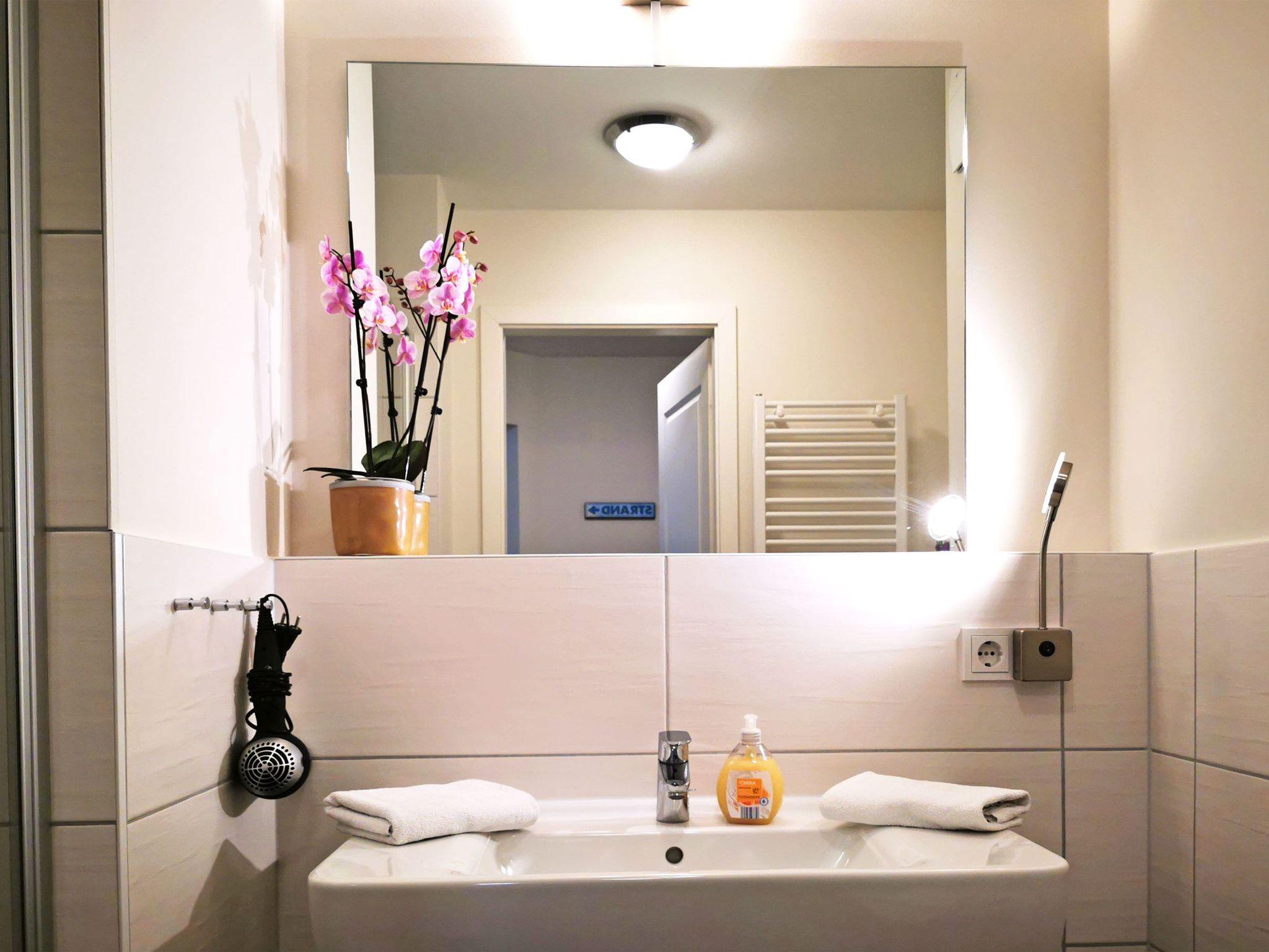 Im Bad finden Sie eine begehbare Dusche vor. Die Wohnung Strandidyll ist via Fahrstuhl bequem zu erreichen.