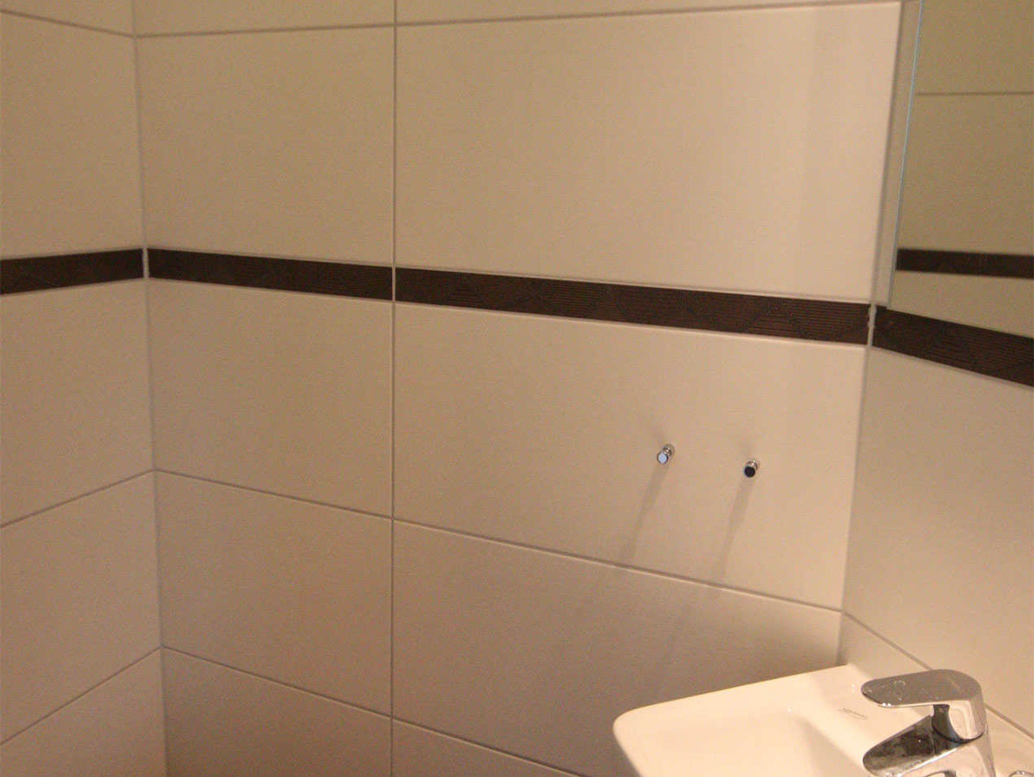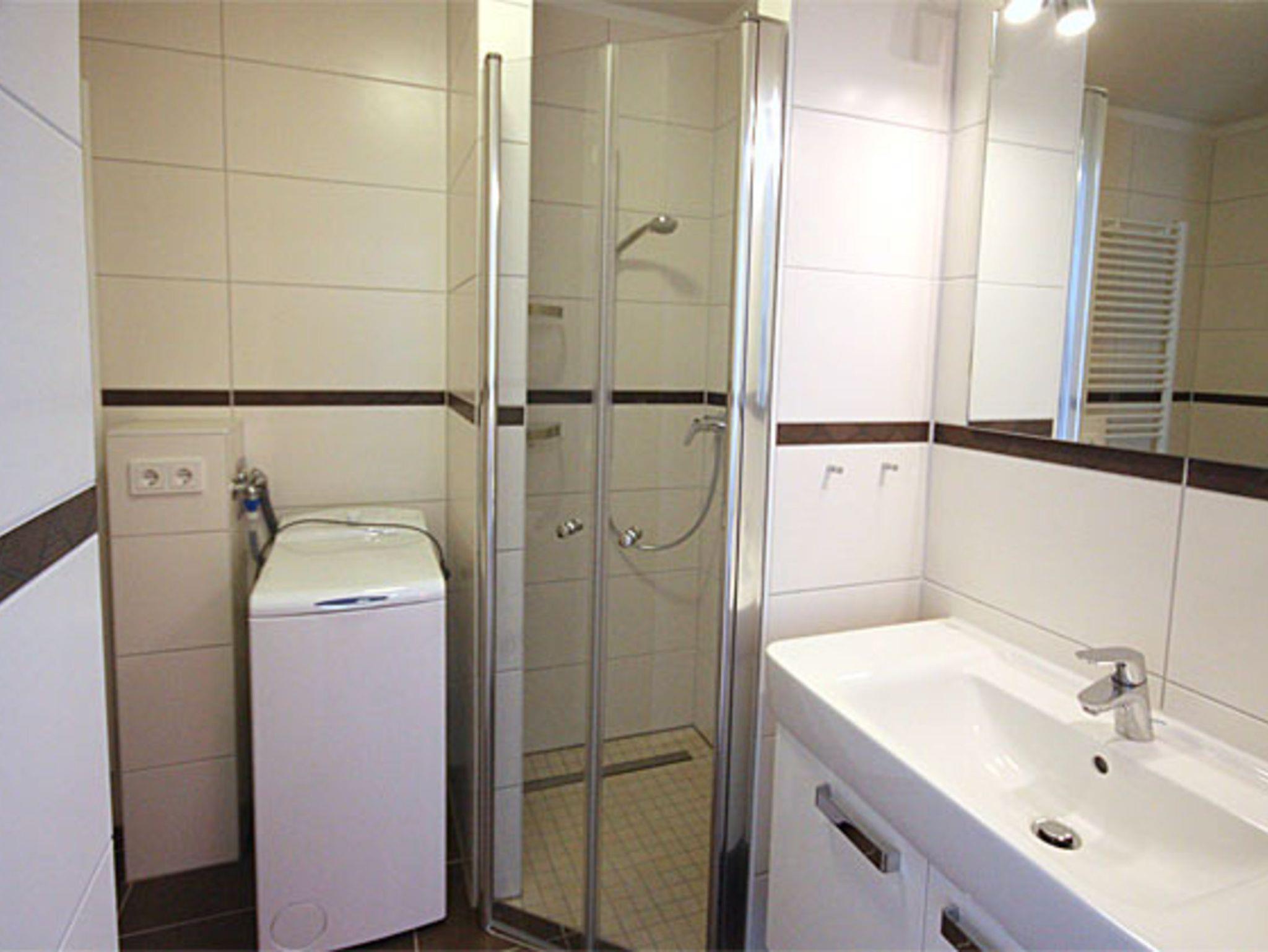 Das Bad verfügt über eine Dusche, Waschbecken, WC und Waschmaschine. Ein separates WC mit Waschbecken ergänzt die Ausstattung dieser Ferienwohnung.