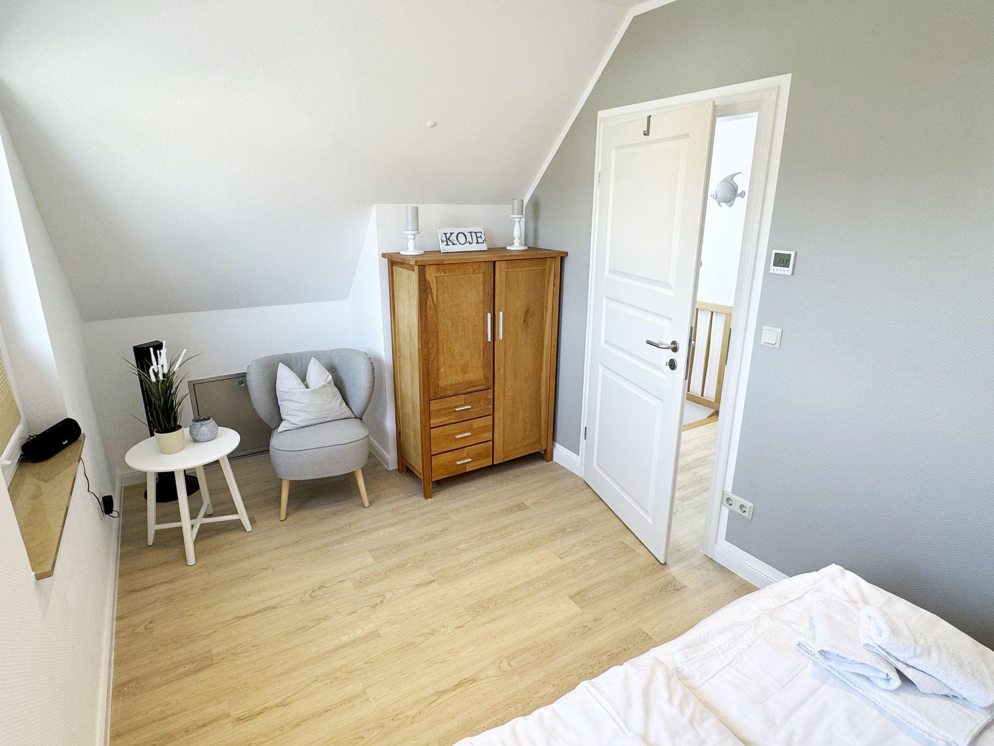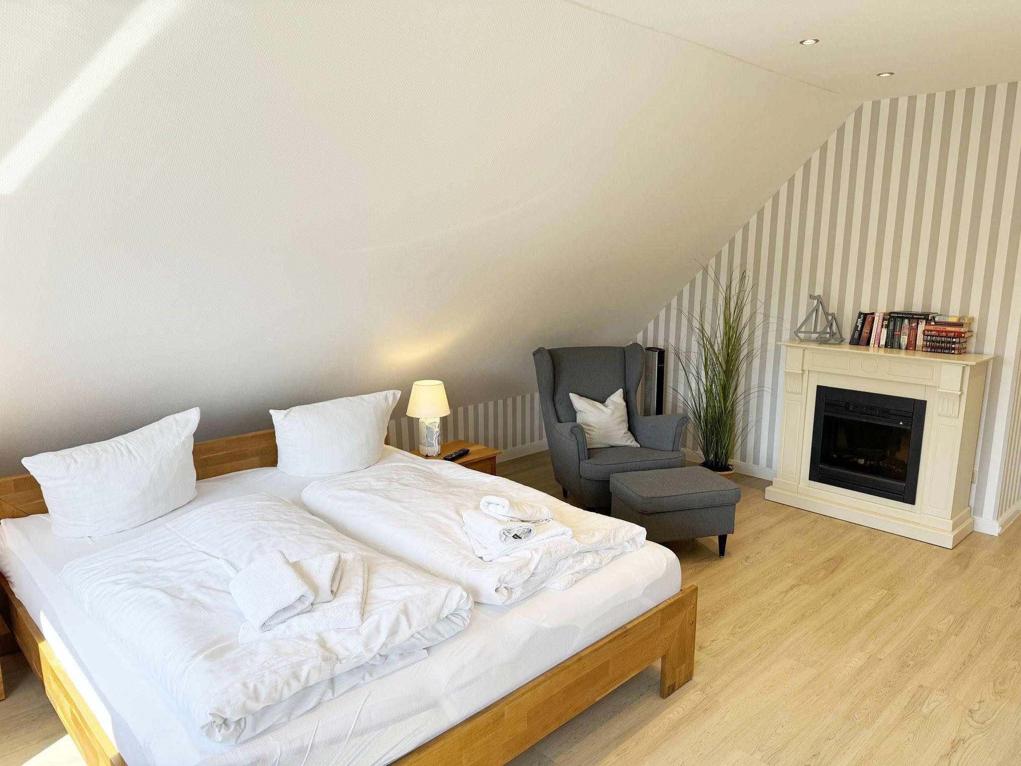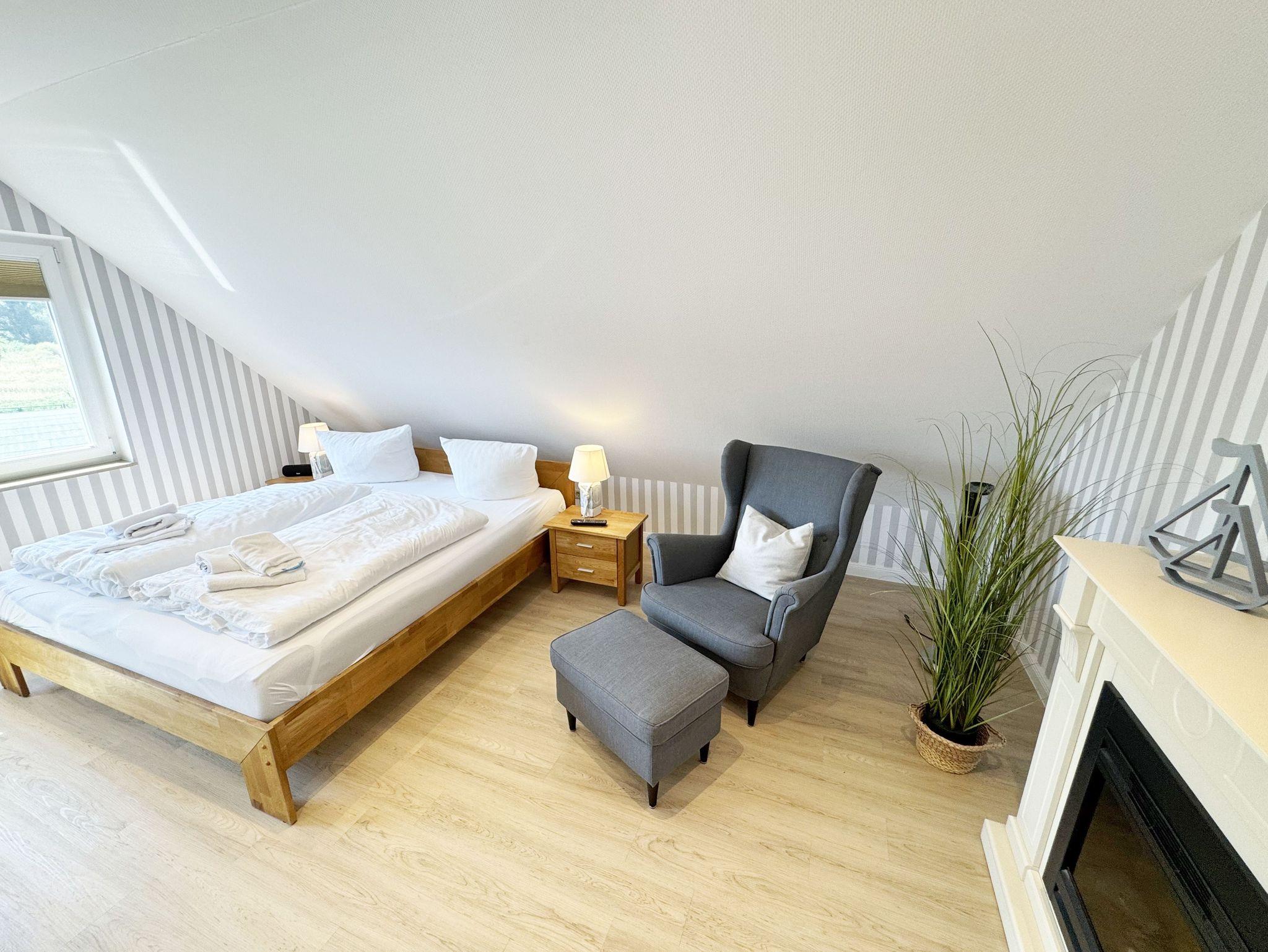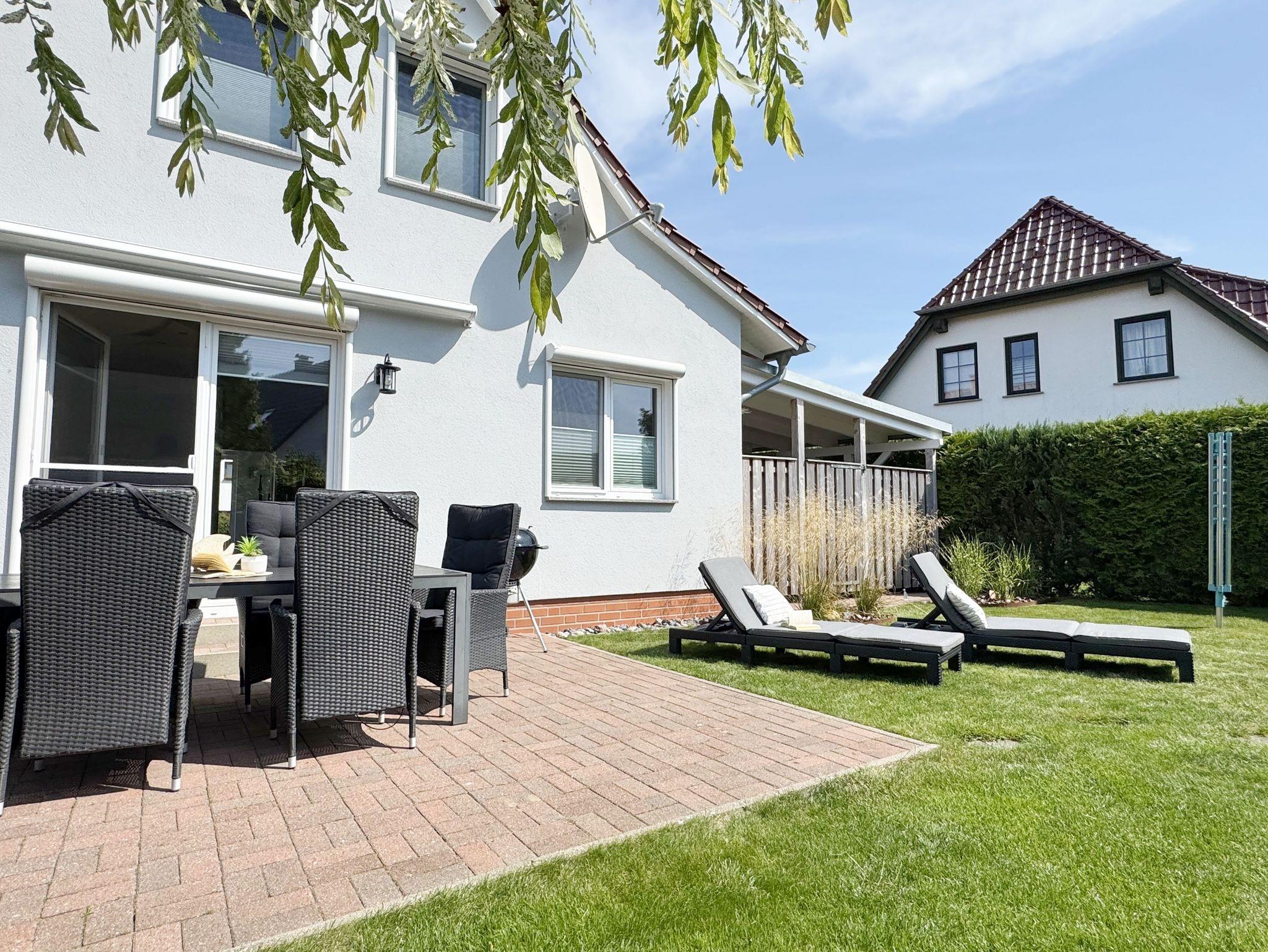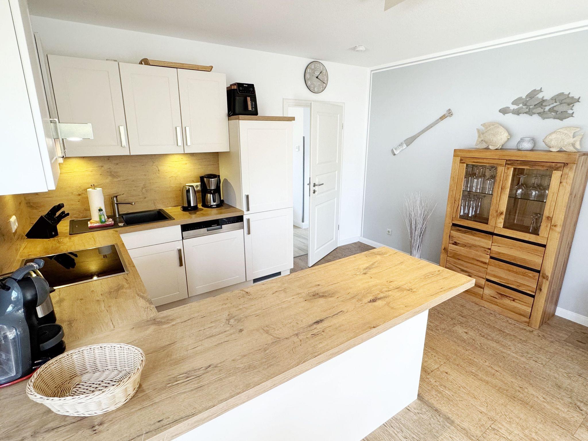 Willkommen im Ferienhaus „Uns lütt Hus“, im schönen und erholsamen Ostseebad Baabe. Das Nichtraucherferienhaus mit seinen ca. 95 m² erstreckt sich auf über 2 Etagen und bietet Ihnen Platz für max. 4 Erwachsene. Mit viel Liebe zum Detail wurde das Haus eingerichtet und bietet Ihnen auch in der kalten Jahreszeit einen angenehmen Rückzugsort, um Ihre Seele baumeln zulassen. Eine Sauna im Eingangsbereich ziert das Haus und bietet Ihnen eine kleine aber feine Wellnessoase. Der großzügige Koch-, Ess- und Wohnbereich mit seinen ca. 39 m² lässt keine Wünsche offen. Die offene Küchenzeile ist mit einem modernen Pyrolyse Backofen, Glaskeramikkochfeld, Dunstabzugshaube, Granitspüle, Einbau-Kühl-Gefrierkombination, Kaffeemaschine, Pad-Maschine (Dolce Gusto), Heißluftfriteuse (Ninja), Wasserkocher, Toaster, Eierkocher, Mixer und vielen weiteren kleinen Küchenhelfern ausgestattet. Angrenzend an den Küchenbereich schließt sich der großzügige Wildeichenholzesstisch mit seinen 4 Lederstühlen und Highboard an. Der Wohnbereich mit seiner gemütlichen Eckcouch und dazugehörigem Couchtisch, Leselampe, TV-Bord mit LED Smart-TV mit Sky (Auswahl von Sport, Film, Dokumentation), Blu Ray Player und einem Teufel Heimkinosystem laden für gemütliche und erholsame Stunden ein. Abgerundet wird dieser Bereich durch einen Ohrensessel mit Hocker und Blick auf den Kamin, welcher in der kalten Jahreszeit für eine angenehme Wärme sorgt. Kaminholz ist für Sie inklusive. Eine kleine Auswahl an Gesellschaftsspielen, Urlaubslektüren und DVDs stehen Ihnen außerdem zur Verfügung. Der technische Bereich wird zusätzlich durch einen WLAN Zugang (100 Mbit/S) abgerundet. Das erste der Tageslichtduschbäder befindet sich im Erdgeschoss und ist mit einer ebenerdigen Klarglasdusche der Firma Sprinz und einer XXL Regendusche ausgestattet. Weiterhin finden Sie ein WC, einen Waschtisch, einen Handtuchtrockner und einen Fön im Bad. Vom Wohn-/Essbereich gelangen Sie auf Ihre südausgerichtete Terrasse, die mit bequemen und verstellbaren Terrassenstühlen und einer elektrischen Markise sowie 2 Sonnenliegen ausgestattet ist. Auch ein Holzkohlegrill der Firma Weber lässt den Abend auf der Terrasse bei einem guten Essen und einem Gläschen Wein ausklingen. Vom Flur erreichen Sie durch eine etwas steile Holztreppe Ihre beiden Schlafzimmer sowie ein weiteres Tageslichtbad. Das große Schlafzimmer verfügt über ein Doppelbett (1,80 m x 2,00 m) mit Gel-Kaltschaummatratzen (0,90 m x 2,00 m), verstellbare Lattenroste am Kopf und Fußende, Nachttischablagen, DAB-Radio Wecker von Teufel, LED TV, einen Ohrensessel mit Hocker, einen Safe, einen Elektrokamin sowie einen großzügigen Einbau-Kleiderschrank. Das kleinere der Schlafzimmer wurde mit einem Doppelbett (1,60 m x 2,00 m) und Gel-Kaltschaummatratzen (0,80 m x 2,00 m), verstellbare Lattenroste am Kopf und Fußende, Nachttischablagen, DAB-Radio Wecker von Teufel sowie einer kleinen Sitzecke bestehend aus einem Sessel mit Ablagen, ausgestattet. Für einen ruhigen und erholsamen Schlaf sorgen zusätzlich Verdunklungs-Plissees, elektrische Rollläden sowie Insektenschutzgitter. Das zweite Tageslichtbad im Obergeschoss verfügt wie das Duschbad im Erdgeschoss über eine ebenerdige Klarglasdusche der Firma Sprinz und eine XXL Regendusche. Ein WC, ein Waschtisch, ein Kosmetikspiegel und ein Handtuchtrockner runden das Bad ab. Alle Räumlichkeiten im Ferienhaus sind mit einer Fußbodenheizung und Vinylfußbodenbelag im Holz Look versehen. Nicht nur im Schlafzimmer finden Sie elektrische Rollläden und Insektenschutzgitter! Diese sind im gesamten Haus vorhanden. Im Hauswirtschaftsraum finden Sie eine Waschmaschine mit Trocknerfunktion, einen Staubsauger, Reinigungsutensilien, ein Bügelbrett sowie ein Bügeleisen. Um den sehr kalkhaltigen Wasser auf der Insel Rügen entgegenzuwirken, finden Sie eine Enthärtungsanlage im Haus, die das Wasser enthärtet. Für unsere kleinen Gäste steht ein Hochstuhl sowie ein Kinderreisebett (ohne Bettinlett/mit Zusatzmatratze) und ein Treppenschutz zur Verfügung. Auch ein 4-Beiner ist mit seinem eigenen Schlafplatz gegen eine Gebühr ein gern gesehener Gast. 2 PKW-Stellplätze befinden sich direkt vor dem Haus sowie eine Ladestation für Elektrofahrzeuge (Abrechnung über Nebenkostenpauschale). Auch der vorhandene Carport am Haus bietet Schutz für einen PKW. Ihre geliehenen oder auch mitgebrachten Fahrräder können Sie im großzügigen Schuppen unterstellen. Hier gibt es auch die Möglichkeit, Ihre E-Bikes aufzuladen. Zur Erkundung der Umgebung stehen Ihnen zusätzlich 2 Trekking Räder der Firma Victoria mit Gangschaltung zur Verfügung sowie ein Damenrad der Firma Hartje mit Gangschaltung (kein Vertragsbestandteil). Auf dem kleinen Grundstück finden Sie auch eine Wäschespinne, um Ihre Handtücher nach dem Baden in der Ostsee aufzuhängen. Die Erstausstattung eines Wäschepaketes (komplette Bettwäsche, 1 Duschhandtuch, 2 kleine Handtücher) können Sie bis 14 Tage vor Anreise gegen einen Aufpreis dazu buchen oder durch eigene ergänzen. Ab 2 gebuchten Paketen erhalten Sie einmalig 1 Geschirrhandtuch und 1 Duschvorleger hinzu.