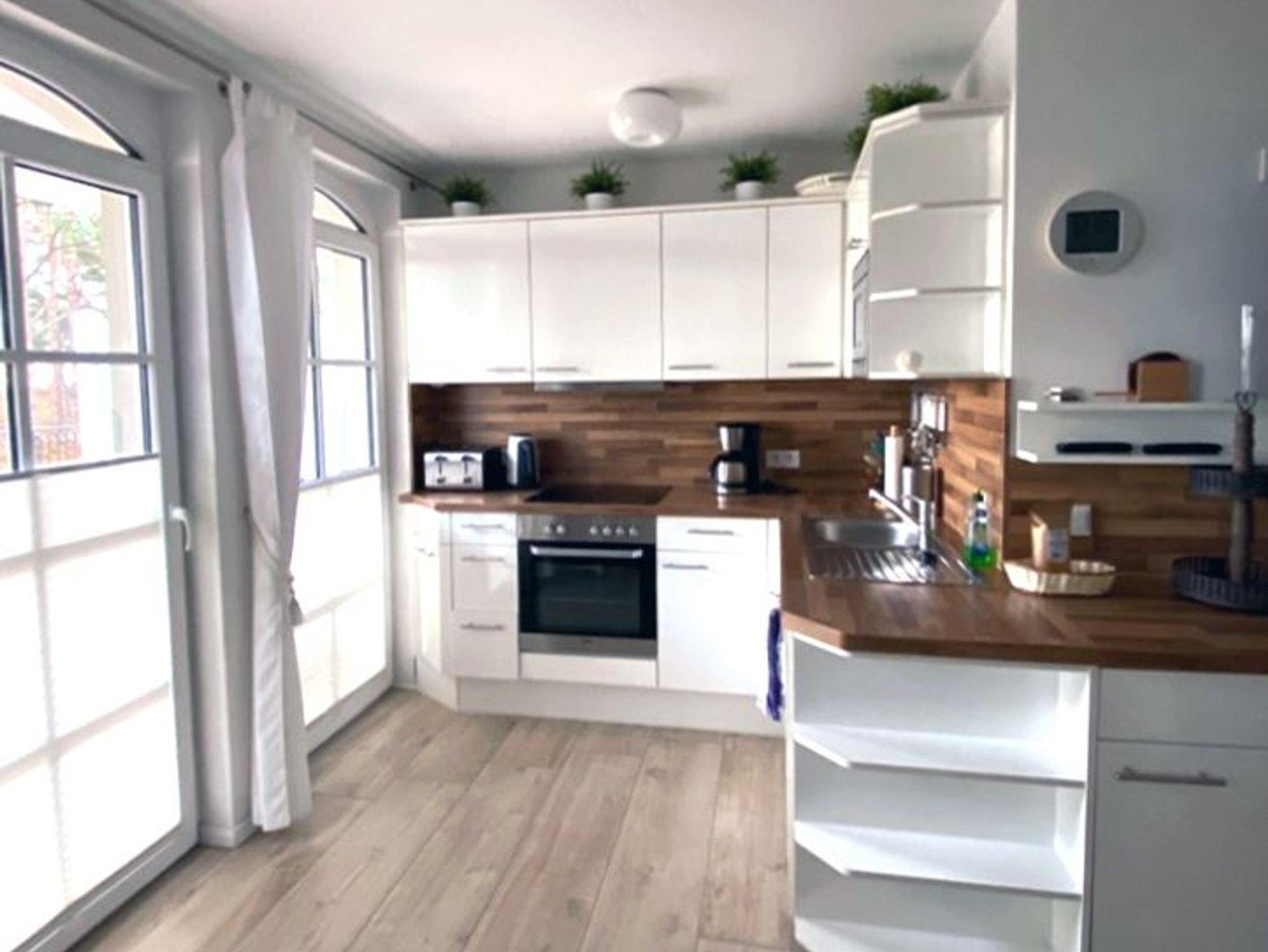 Die Wohnung hat eine offene Küche (Ceranfeld, Backofen, Mikrowelle, Kaffeautomat, 4-fach Toaster, Wasserkocher, Kühl-Gefrierschrank, Staubsauger) und im Wohnbereich gibt es eine ausziehbarer Schlafcouch (140x200) sowie einem 42`` TV mit Radio, CD, DVD und Blueray-Player.