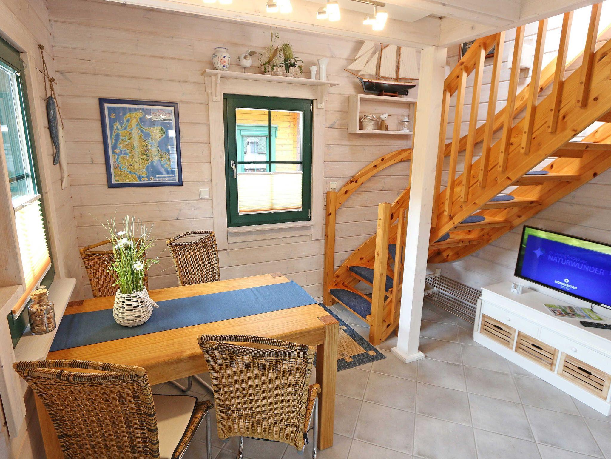 Das Strandhaus „Traumblick“ bietet Ihnen Platz für max. 4 Erwachsene und 1 Kleinkind bis 3 Jahre im Kinderreisebett. Das ca. 65 qm große Nichtraucherhaus betreten Sie über die überdachte Terrasse. Im Erdgeschoss befindet sich der Wohnbereich mit Einbauküche und Essplatz. Die Küchenzeile ist ausgestattet mit einem Geschirrspüler, Kühlschrank mit Gefrierfach, Cerankochfeld, Backofen, Senseo Padmaschine, Mikrowelle, Kaffeemaschine, Wasserkocher, Toaster und ambitionierte Hobbyköche finden eine große Auswahl an Küchenutensilien. Angrenzend befindet sich der gemütliche Essplatz mit Smart?TV, welcher auch beim Kochen zu Ihrer Unterhaltung dient. Das erste Schlafzimmer befindet sich im Erdgeschoss, welches mit 2 Einzelbetten (je 0,90 m x 2,00 m), Nachttischablage und Kleiderschrank ausgestattet ist. Für einen erholsamen Schlaf sorgen die Fensterläden sowie das Plissee. Das Tageslicht-Bad mit Dusche, Waschplatz, Kosmetikspiegel, WC und Fön ist ebenfalls im Erdgeschoss untergebracht. Über eine Kiefernholztreppe erreichen Sie das Obergeschoss mit großer, lichtdurchfluteter Galerie. Hier können Sie vom bequemen Relax-Sessel oder der großen Couchecke mit Couchtisch und Leselampe die traumhafte Aussicht durch das ca. 4 qm große Panoramafenster bis hin zum Meer genießen. Ein weiterer Smart-TV, ein Blu-Ray-Player sowie eine Mini-Stereo-Anlage mit DAB-Radio sorgen auch hier für Ihre Unterhaltung. Auch im Urlaub brauchen Sie auf einen Internetzugang (WLAN) nicht zu verzichten. Dieser ist für Sie inklusive. Das zweite Schlafzimmer im Obergeschoss mit Dachschräge ist mit einem Doppelbett (1,80 m x 2,00 m), Wäschekommoden und dunkle Plissee´s ausgestattet. Die überdachte und bestuhlte Terrasse (Ost - Südost) ermöglicht es Ihnen bei jedem Wetter im Freien unter Kiefern zu sitzen und dem Rauschen des Meeres zu lauschen. Für einen gemütlichen Ausklang Ihres Urlaubstages können Sie auch einen Gemeinschaftsgrill nutzen. Für unsere kleinen Gäste halten wir 1x Hochstuhl, 1x Kinderreisebett (ohne Matratze/ Bett-Inlett) und ein Treppenschutzgitter bereit. In den Schlafräumen und im Bad sind die Fenster mit Insektenschutzgitter versehen. Ein kostenfreier Parkplatz (Nr. 108a) ist direkt vor dem Haus. Ihre geliehenen oder mitgebrachten Fahrräder können Sie im Abstellraum am Haus abstellen. 1 Haustier ist mit seinem eigenen Schlafplatz gegen eine Gebühr ein gern gesehener Gast. Die Erstausstattung eines Wäschepaketes (komplette Bettwäsche, 1 Duschhandtuch, 2 kleine Handtücher) können Sie bis 14 Tage vor Anreise gegen einen Aufpreis dazu buchen oder durch eigene ergänzen. Ab 2 gebuchten Paketen erhalten Sie einmalig 1 Geschirrhandtuch und 1 Duschvorleger dazu.