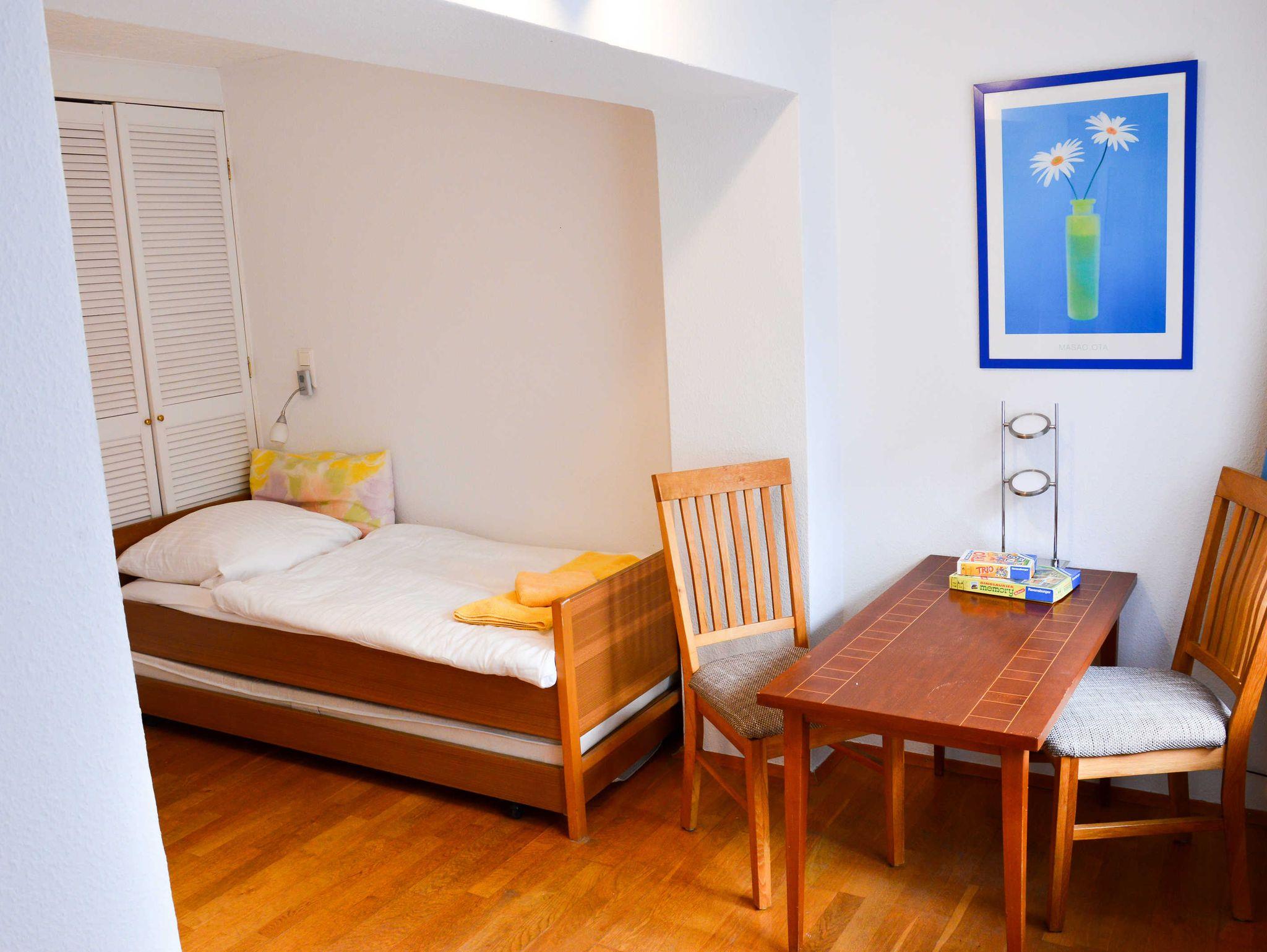 Die große 3-Raumwohnung bietet Ihnen 2 Schlafzimmer mit einem Doppelbett oder 2-3 Einzelbetten, ein Wohnzimmer mit Couch und Flachbild-TV, eine Küche und Badezimmer mit Waschmaschine sowie ein kleines WC.