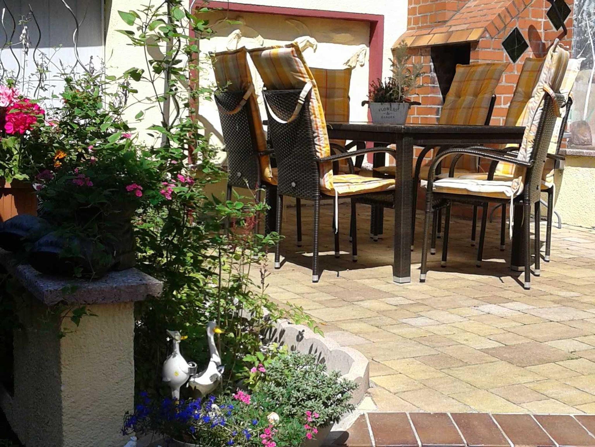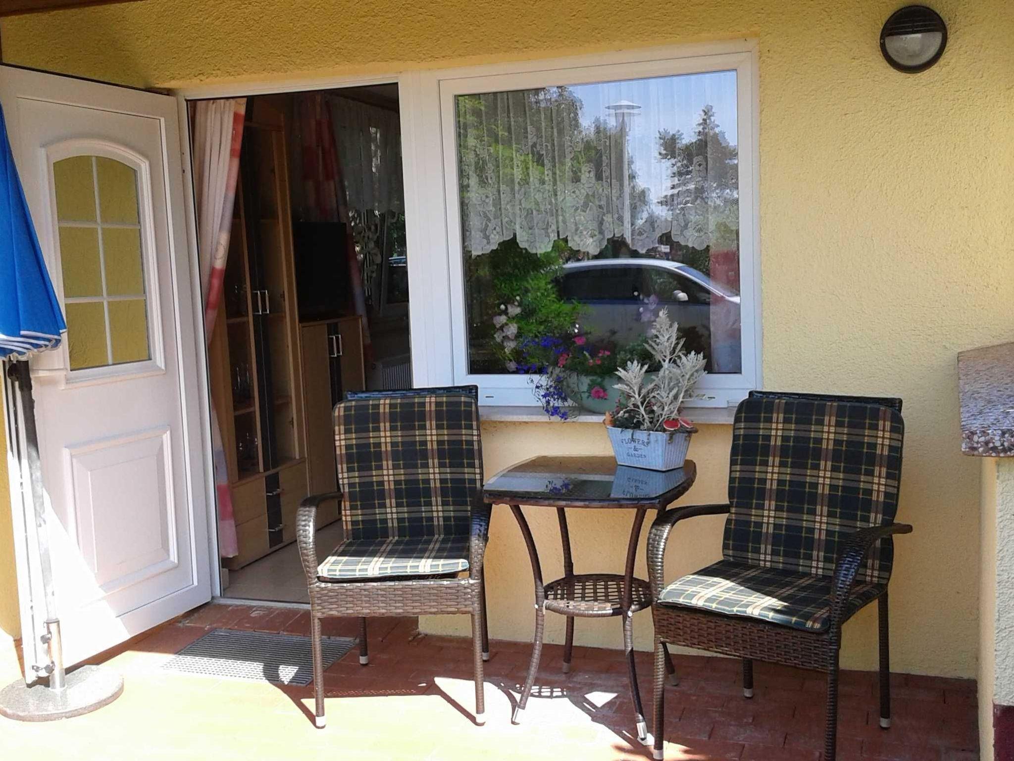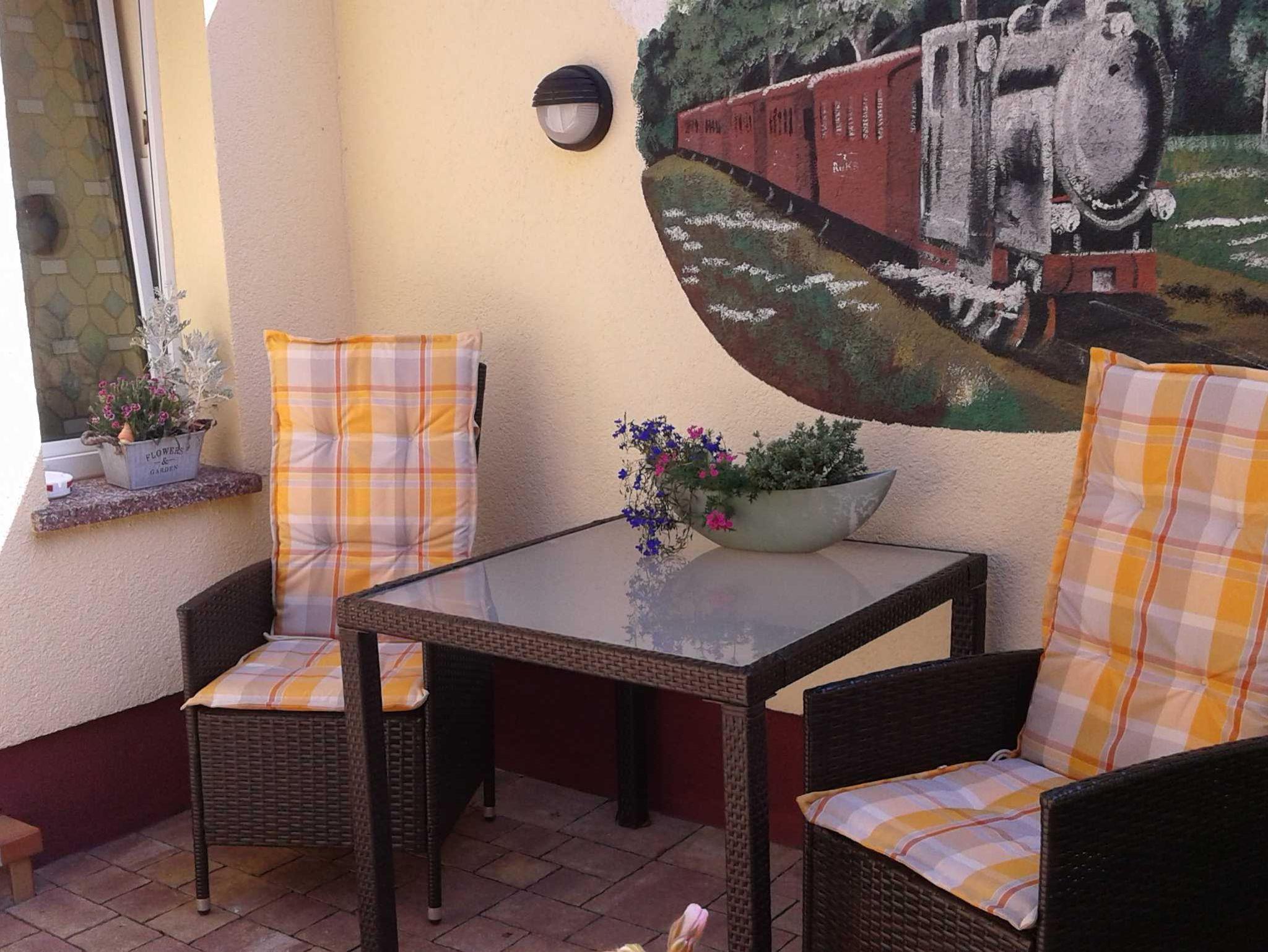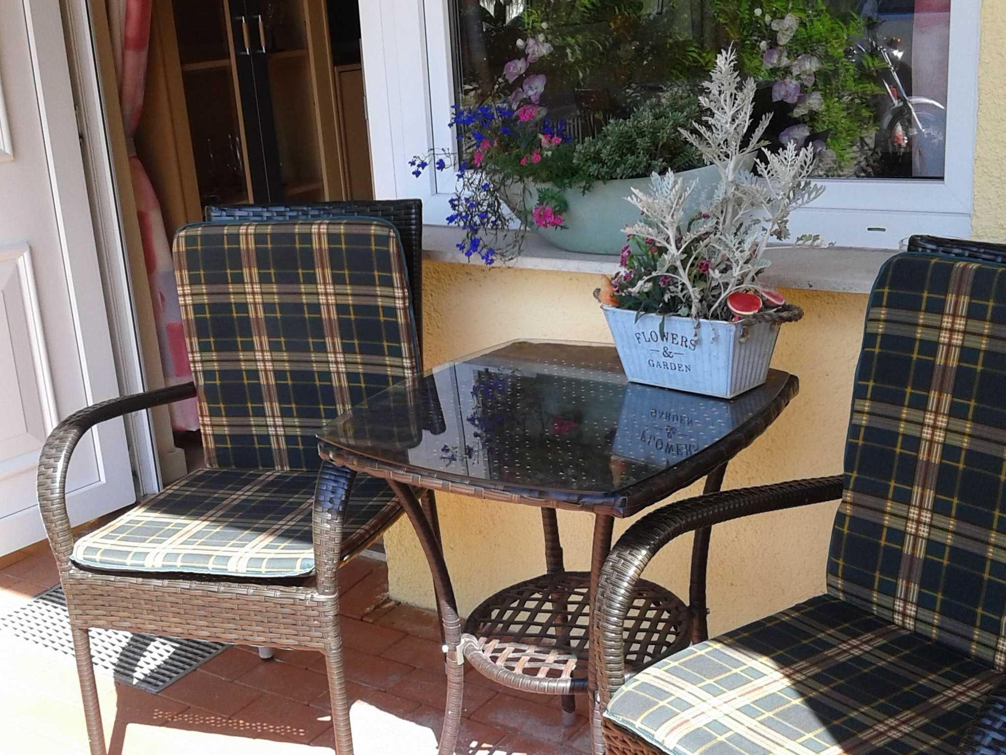kleine Terrasse mit Sitzecke direkt vor der Fewo.