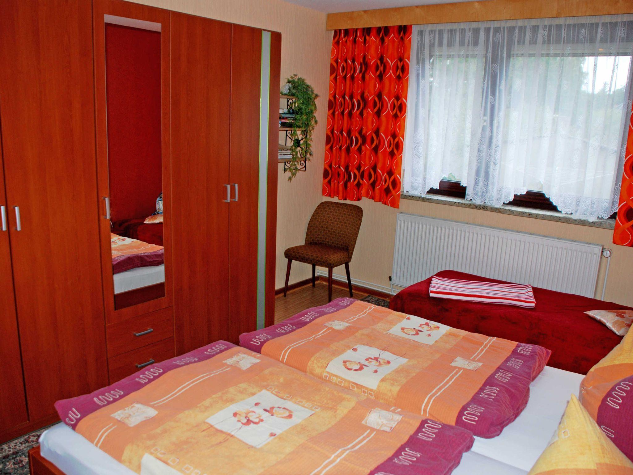 Diese Ferienwohnung ist ca. 40 qm groß, hat Platz für maximal 3 Erwachsene und wurde liebevoll eingerichtet. Über einen separaten Eingang gelangt man in die Wohnung mit einem kleinen Vorflur mit Garderobe. Im Wohnzimmer befinden sich eine bequeme Sitzcouch mit Tisch und Sesseln, ein Esstisch mit Stühlen, ein modernes Flachbild-TV-Gerät.