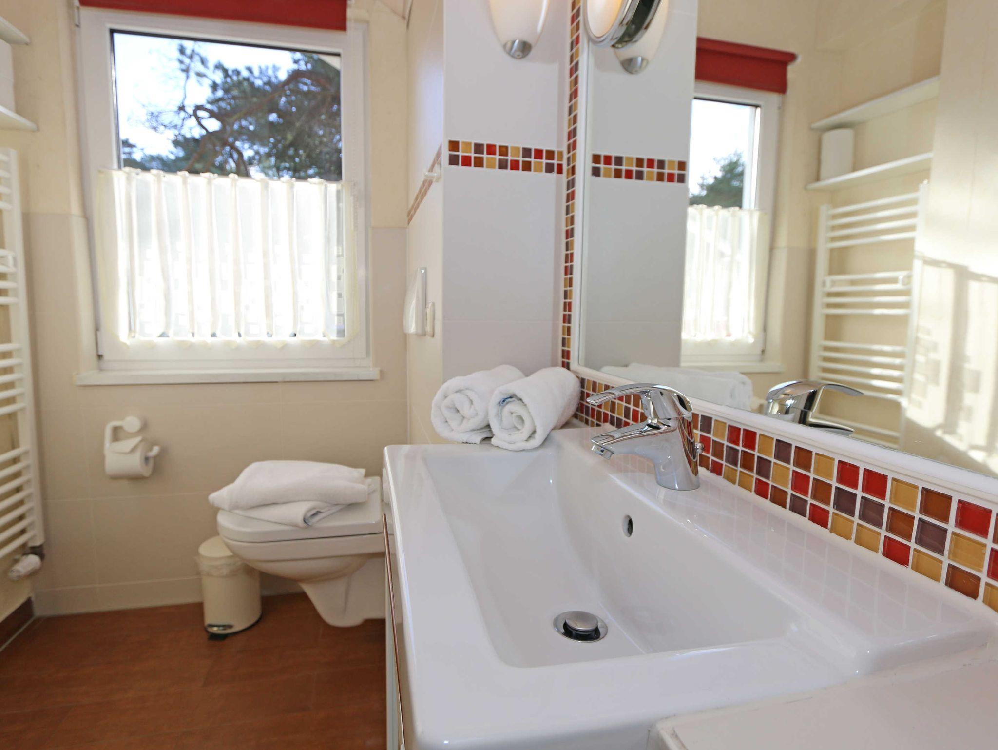 Herzlich Willkommen in unserem Strandhaus im schönen Ostseebad Baabe auf Rügen! Unser 75 m² großes alleinstehendes Standhaus im Schwedenstil (Nichtraucher, 2 bis 6 Erwachsene + 1 Kleinkind bis 3 Jahre im Kinderreisebett) liegt nah am Strand, direkt im Dünenwald von Baabe. Das Holzhaus ist gemütlich mit viel hellem Naturholz eingerichtet und gleichzeitig modern, komfortabel und voll ausgestattet. Dazu zählen wir sowohl die moderne Komfortküche mit Ceran-Herd, Backofen, Mikrowelle, Geschirrspüler, Kühlschrank mit Eisfach, Getränkekühlschrank, Kaffeemaschine, Wasserkocher, Toaster, Reinigungsutensilien und mehr als auch den Wohnkomfort einer Fußbodenheizung, der LCD-Fernseher in HD-Qualität, Satelliten-Anschluss für hohe Programmvielfalt und ein DVD-Player mit Radio. Ein gemütlicher großer Wohnbereich und Kamin (Kaminholz inklusive) mit Sichtfenster rundet unsere Einrichtung ab. Und damit Sie Ihren Urlaub bei uns ganz entspannt genießen können, sind alle Kosten für Strom, Wasser und Heizung sowie das WLAN bereits im Preis inklusive! Die hauseigene Sauna mit Ruhebereich finden Sie im Untergeschoss des Hauses. Das Haus verfügt über insgesamt vier Schlafzimmer. Zwei Schlafzimmer sind mit Doppelbett (2 x Boxspringbetten je 0,80 m x 2,00 m zusammengestellt) und Kleiderschrank ausgestattet und bieten ausreichend Platz für 1 zusätzliches Kinderreisebett (inklusive Matratze). Das dritte Schlafzimmer verfügt über zwei Boxspringbetten (je 0,80 m x 2,00 m) ? die man auch zusammenstellen kann und Kleiderschrank. Das vierte Schlafzimmer, im EG, verfügt über ein Einzelbett (Boxspringbett) und einer Kommode. Im Obergeschoss befindet sich ein Tageslicht-Bad mit großem Spiegel, WC, Dusche und Haartrockner. Im Untergeschoss befindet sich ein Bad mit einer Sauna, WC, Spiegel und Dusche. Am Wohn-/ Essbereich schließt sich die überdachte Terrasse (Süd/West) mit Tisch, Stühlen und Gartengrill an. Eine kleine Waschküche, im UG mit Waschmaschine steht Ihnen inklusive zur Verfügung. Ein eigener PKW-Stellplatz Nr. 17a gehört zum Strandhaus. Haben Sie ein Haustier, das Sie mitbringen möchten? Gerne ist dies gegen eine Gebühr möglich. Sind Sie vor Ort, so haben wir für Sie weitere zusätzliche Angebote (gegen Gebühr) direkt im Dünenpark. In unserem Backshop selbst erhalten Sie In der Saison täglich frisch: Brötchen, Lebensmittel, Tageszeitungen, Frühstück, Kaffee & Kuchen und mehr (Schließzeiten immer vom 07.01. - 1 Woche vor Ostern). Die Erstausstattung eines Wäschepaketes (komplette Bettwäsche, 1 Duschhandtuch, 2 kleine Handtücher) können Sie bis 14 Tage vor Anreise gegen einen Aufpreis dazu buchen oder durch eigene ergänzen. Ab 2 gebuchten Paketen erhalten Sie einmalig 1 Geschirrhandtuch und 1 Duschvorleger hinzu. Wir freuen uns auf Ihren Besuch!