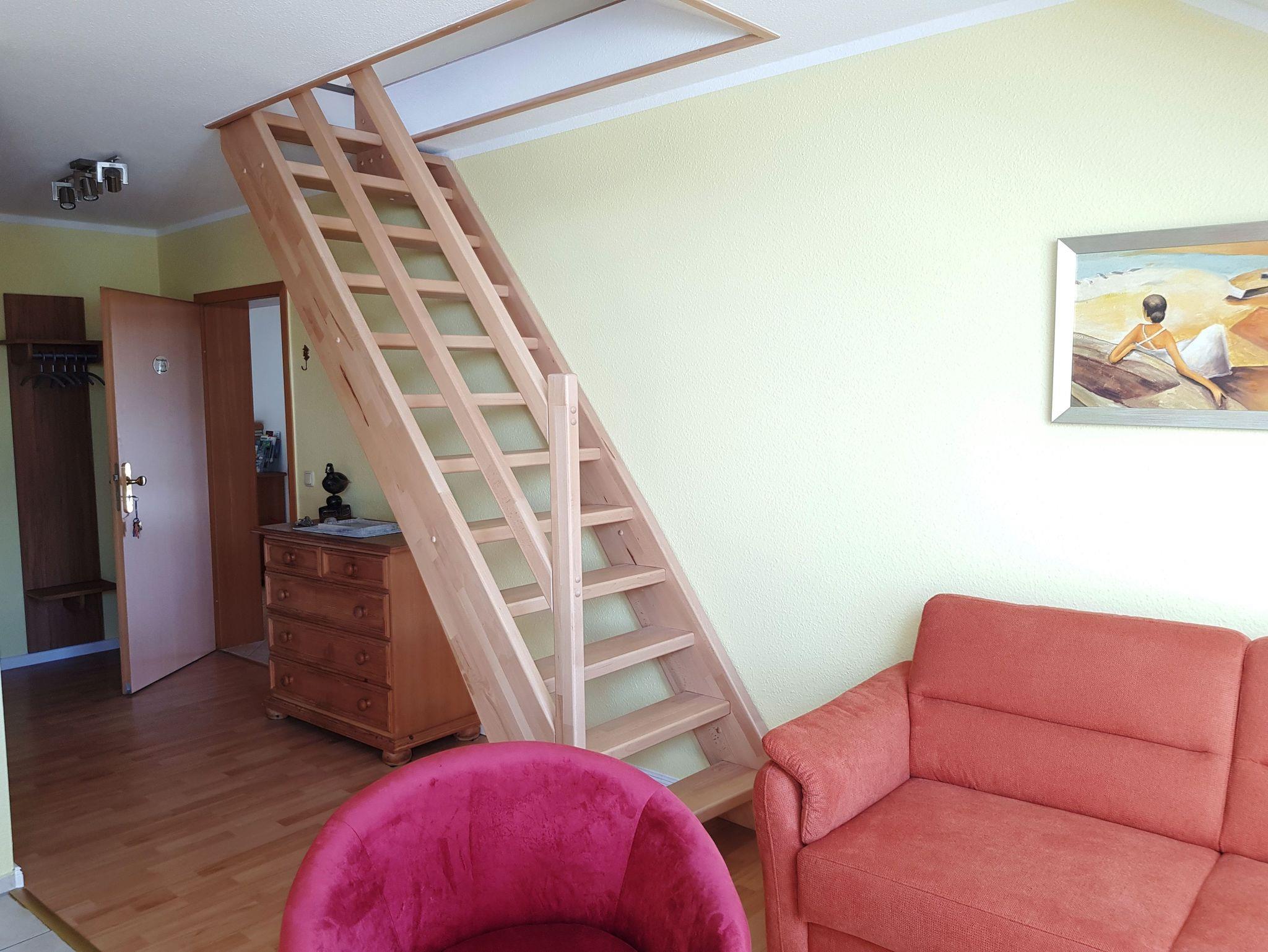 Die 3-Raum Maisonettenwohnung Strandburg(Nichtraucher)ca. 50 qm ausreichend Platz für 3 Personen. Kombinierter Wohn- und Essbereich mit komplett ausgestatteter Küchenzeile