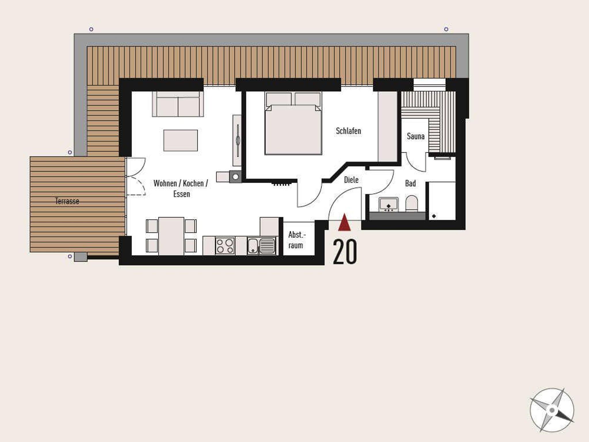 Auf der umlaufenden 20 qm Süd-West Terrasse können Sie den ganzen Tag Sonne, wahlweise mit Blick auf die Ostsee oder den Kiefernwald, genießen.